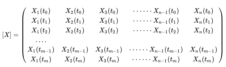 X(t) = {X1(t),X2(t),X3(t),……,Xn (t)} t = t0,t1,t2,t3,……,tm