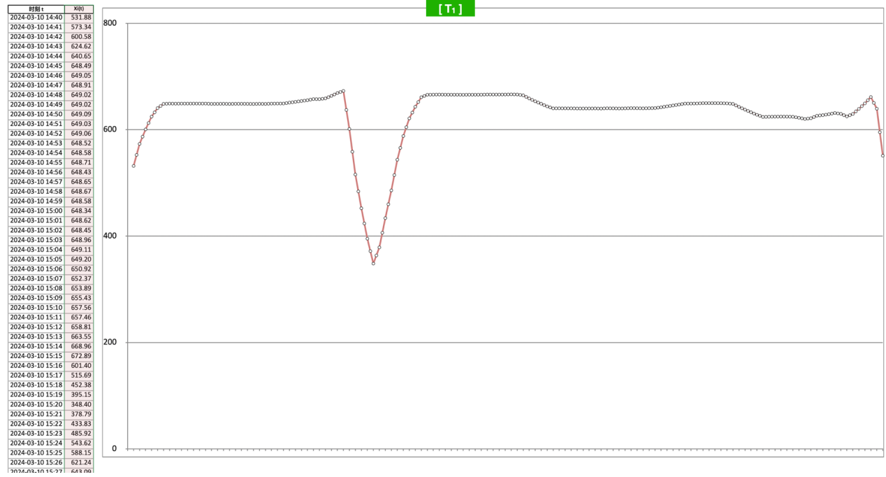 如果我们把 MixIOT 对象在这个时间段的所有时序数据放到一起,如果把他们当做一个矩阵 [X], 那么这个矩阵 [X] 就是这个样子: