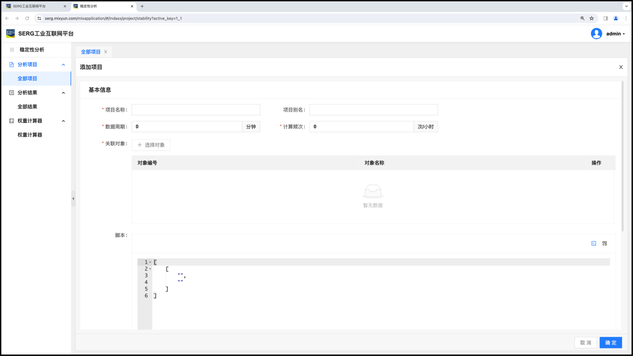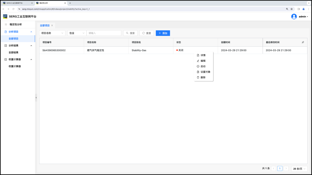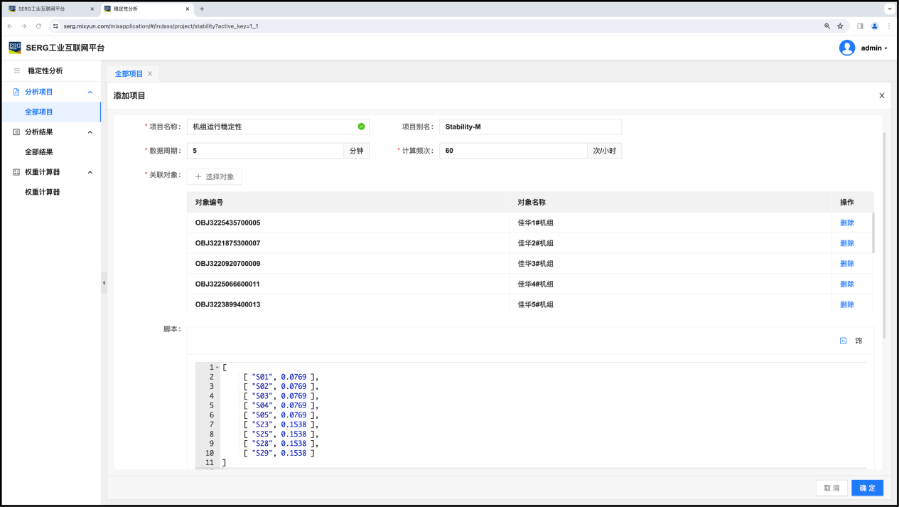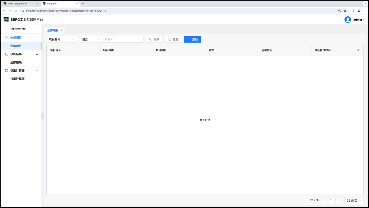 “稳定性分析 ”应用跟其他 MixIOT Indass 应用一样,除了权重计算器,也只有两个菜单板块,一个是分析项目,另一个是分析结果。