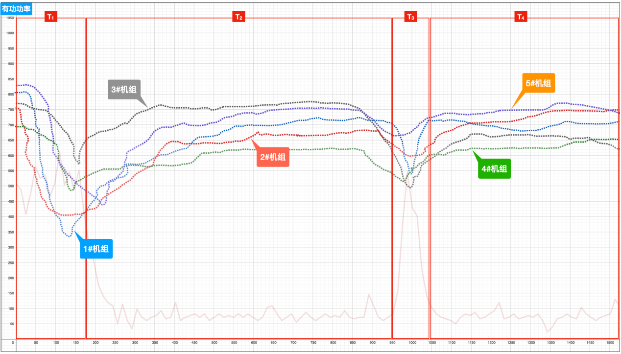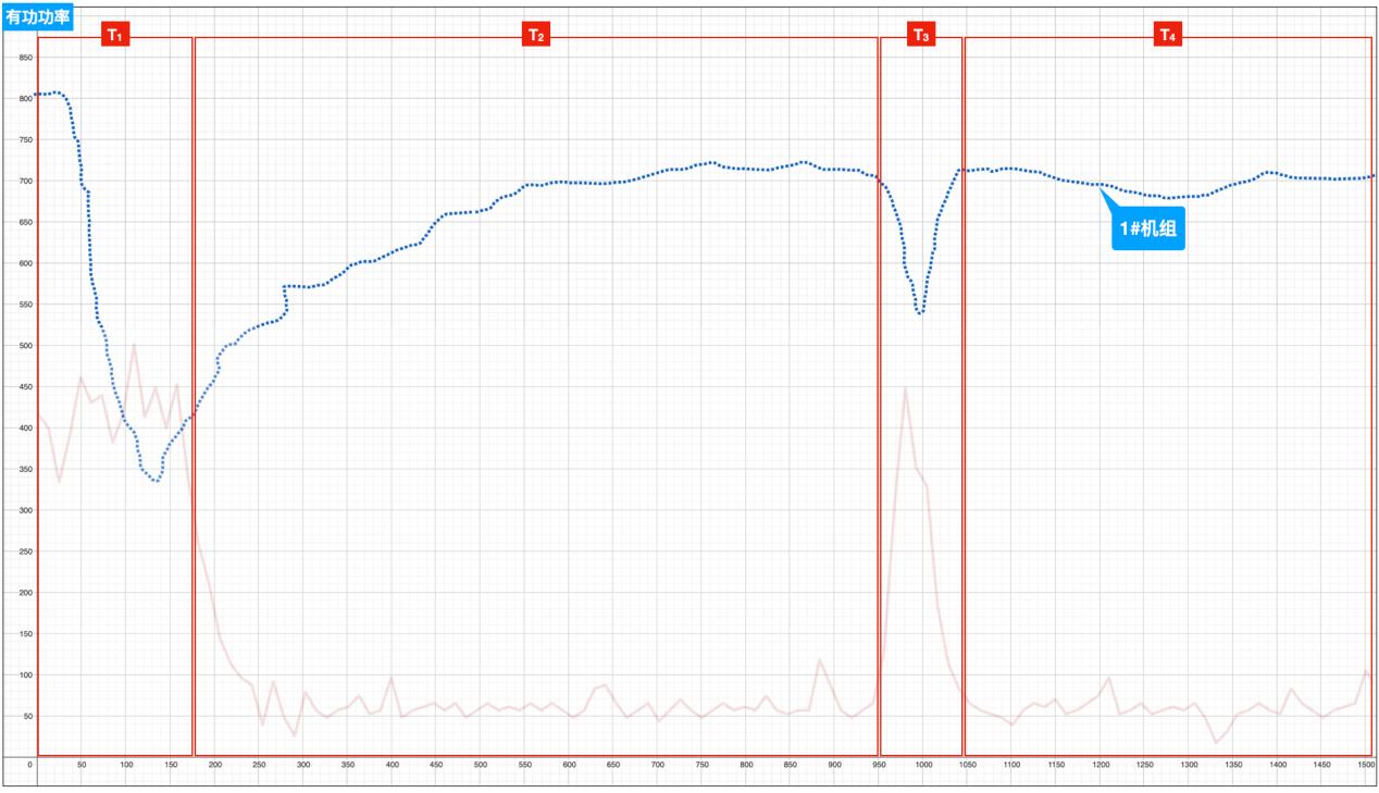 我们现在找到 [T1]、[T2]、[T3] 和 [T4]时段,佳华1#机组的有功功率数据,然后把这些数据放到对应时段: