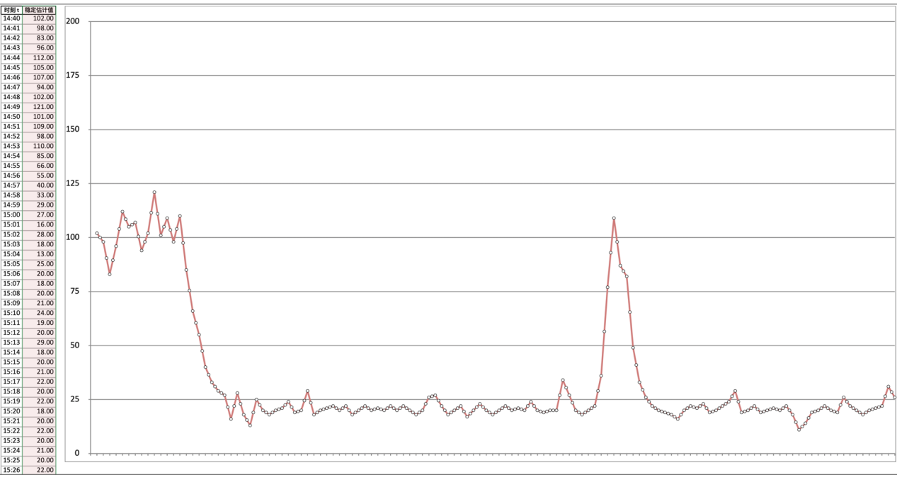 分析项目启动后,就会按项目的设置,每分钟输出一次分析结果(稳定性估计值):