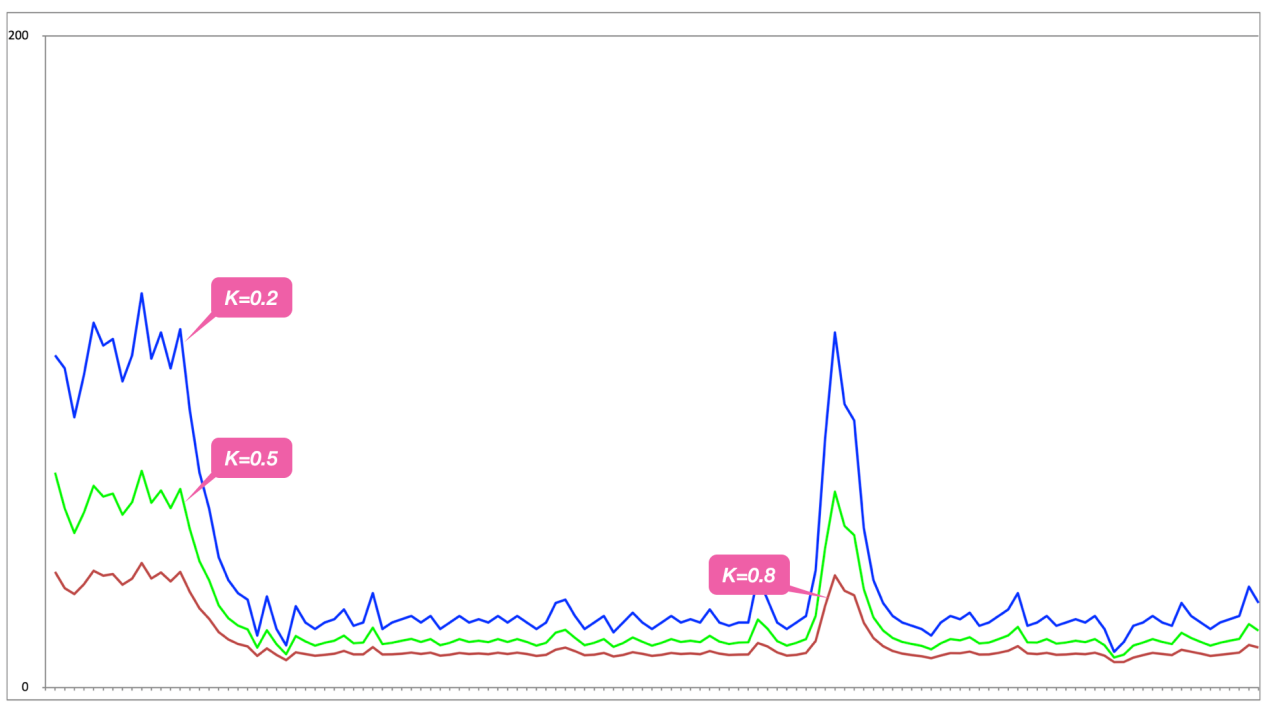 有了这个对比,我们就能直观的理解,缓度K的真正含义是什么。