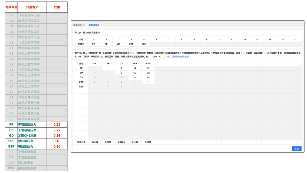 PSP(泵站压力)、ESP(电站压力)两个变量的权重都是0.10。