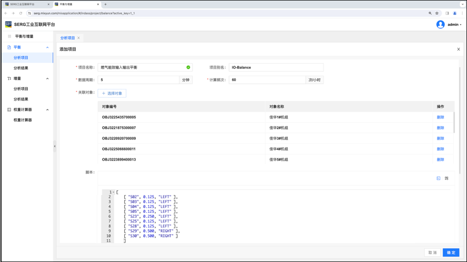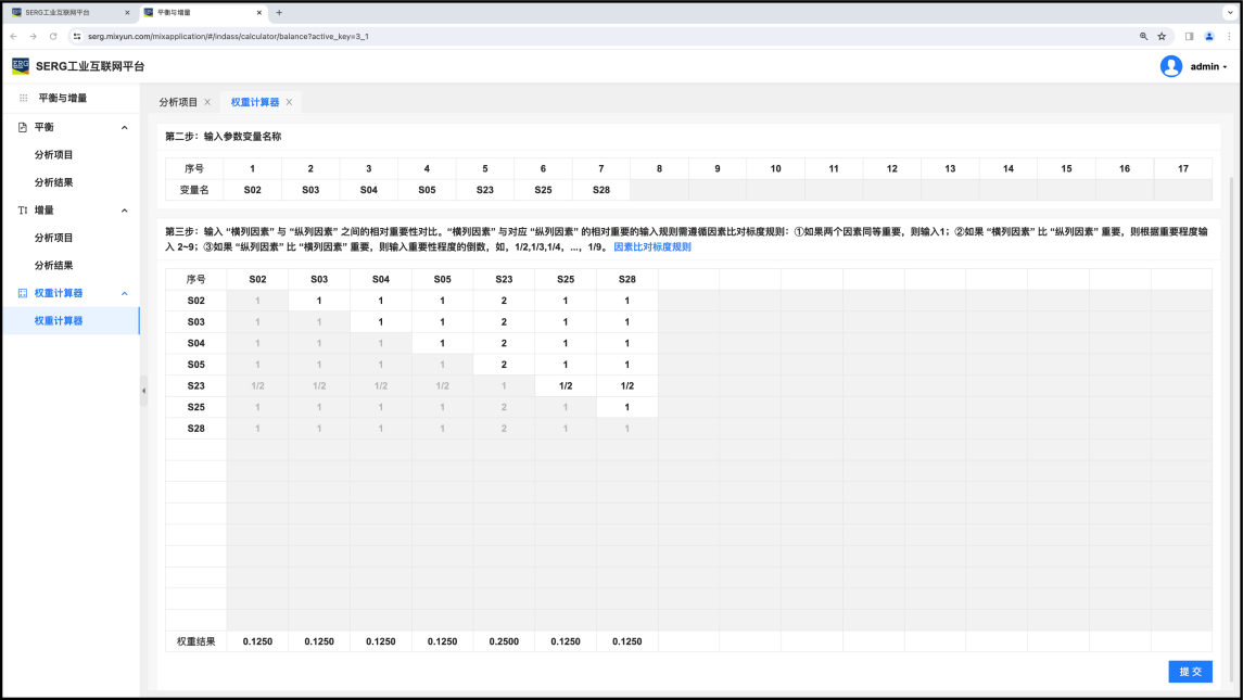 与其他 MixIOT Indass 应用一样,分析项目因素的权重配比也非常重要。在平衡分析项目中,左右两边的权重是分开的,两边权重之和都要等于1。