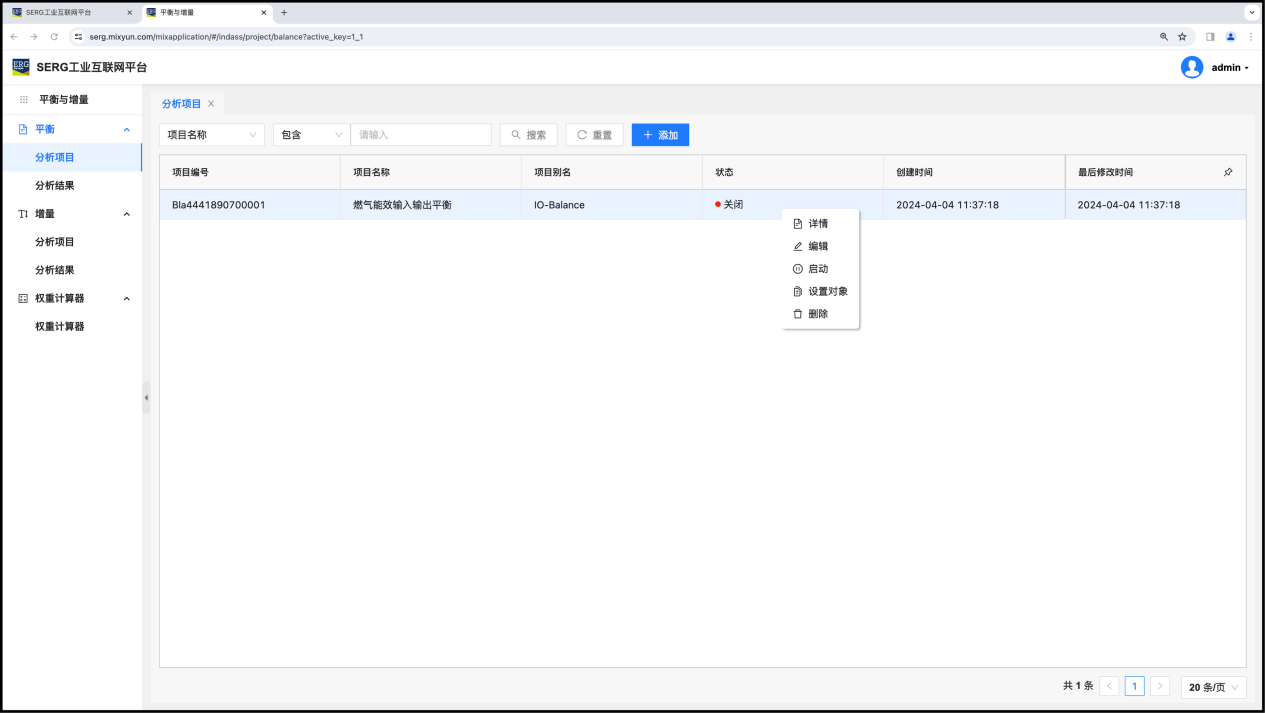 我们还是通过瓦斯机组对象,来建立平衡分析项目 。