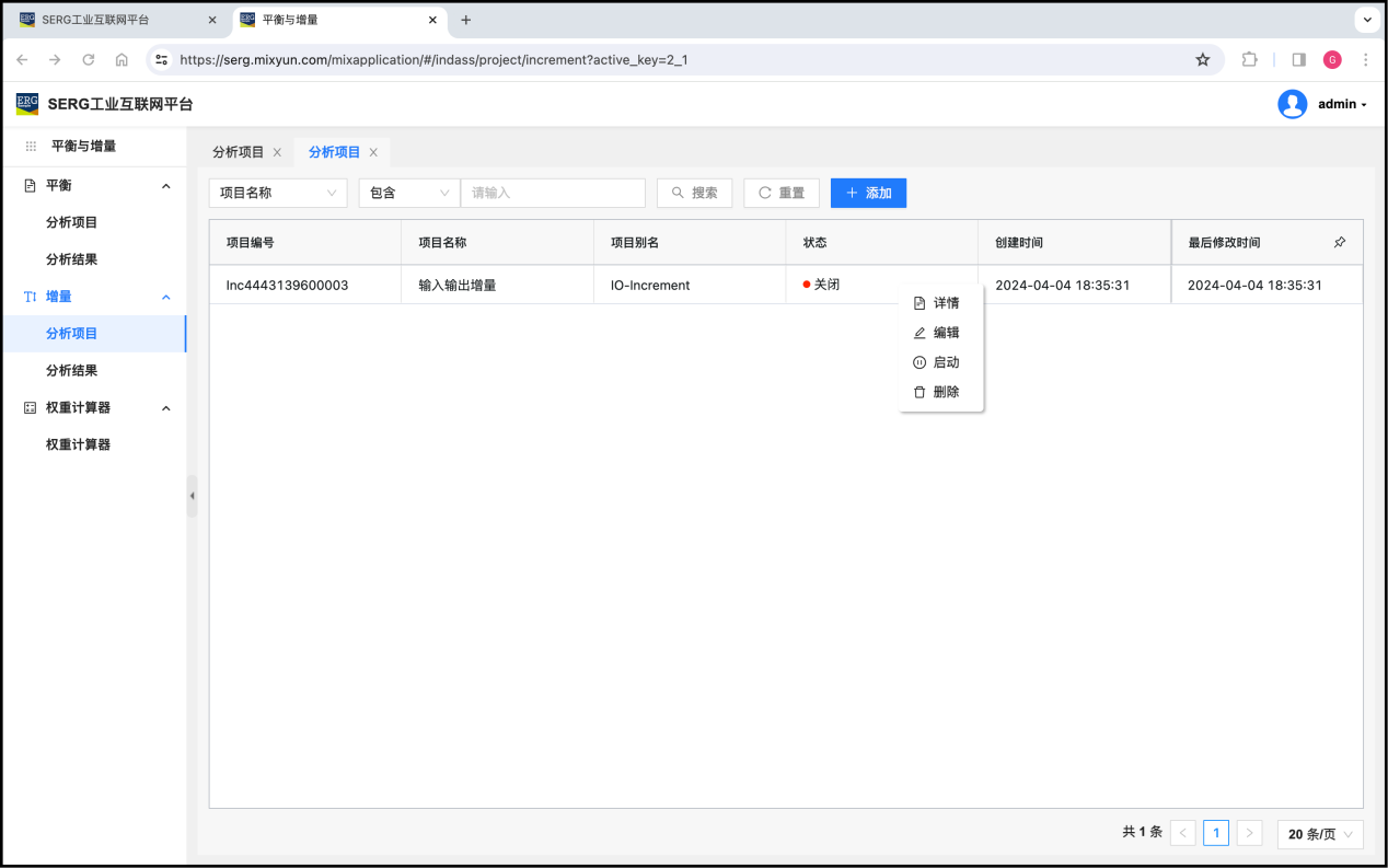保存增量分析项目后,还需要在操作菜单中启动这个项目: