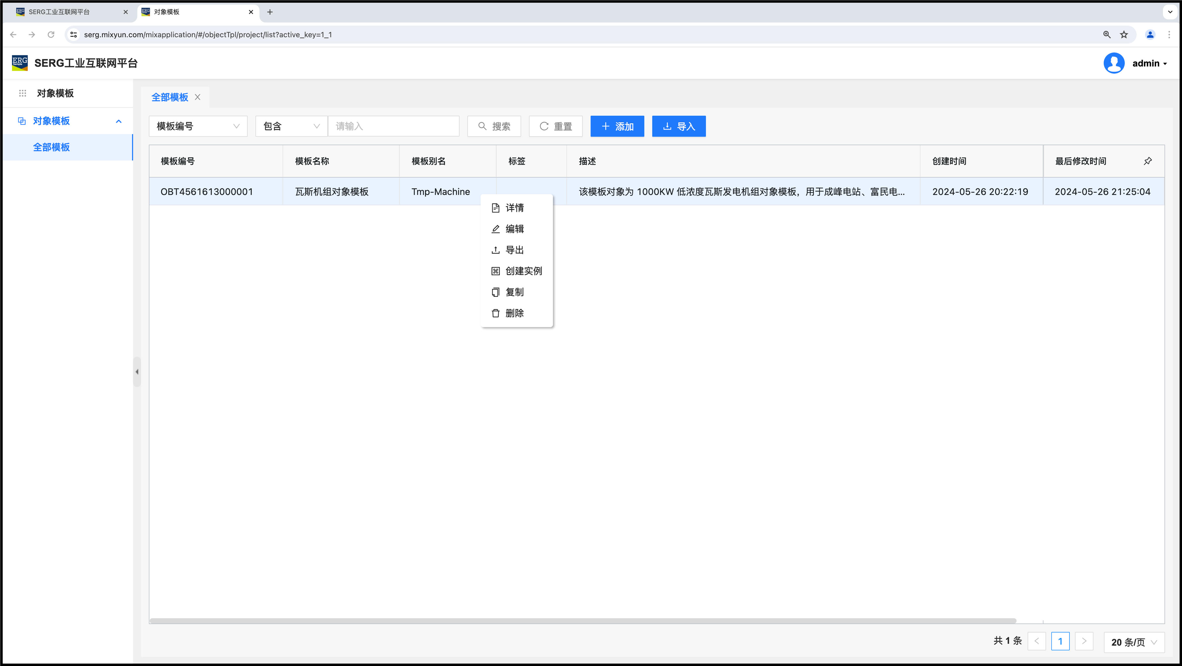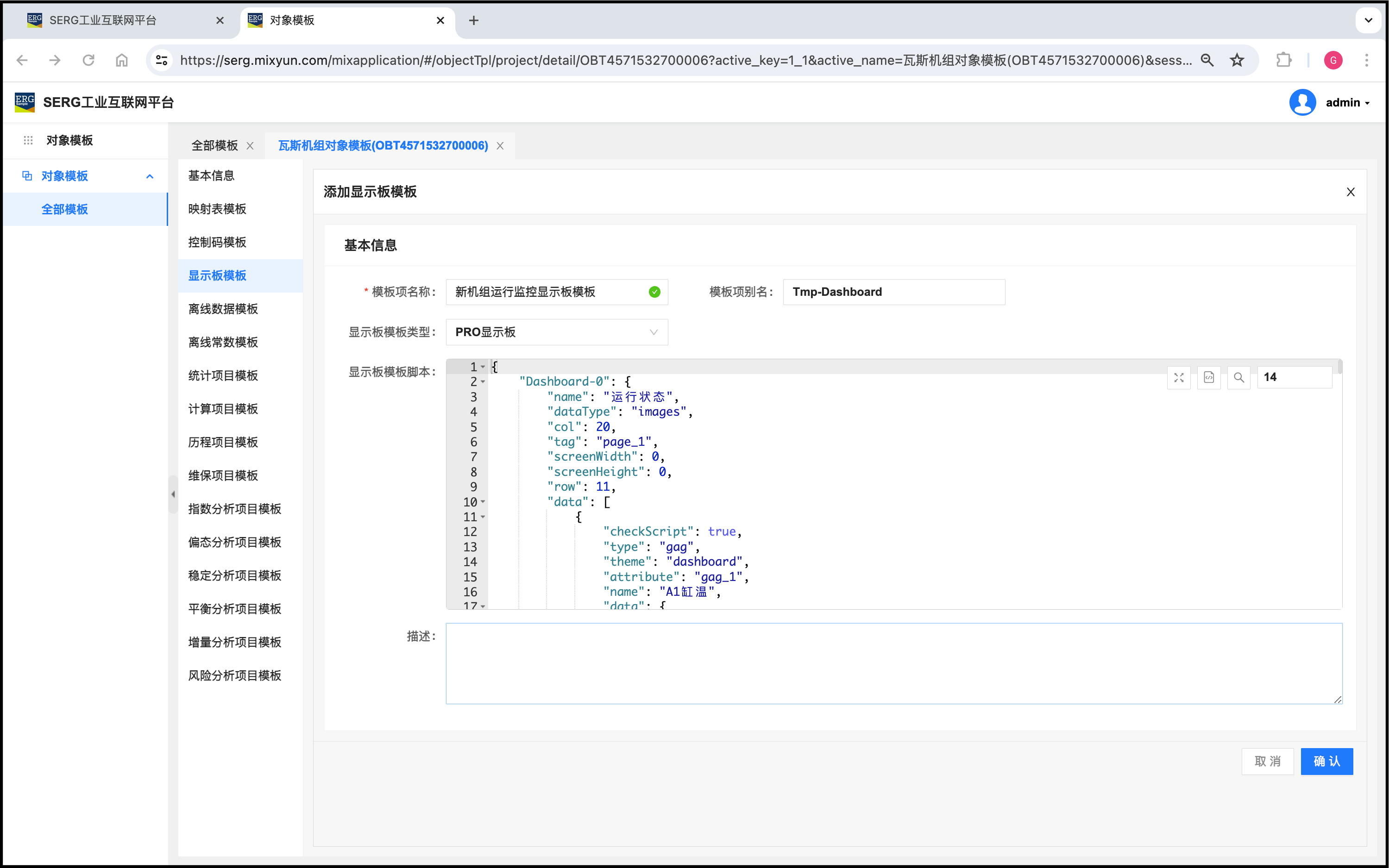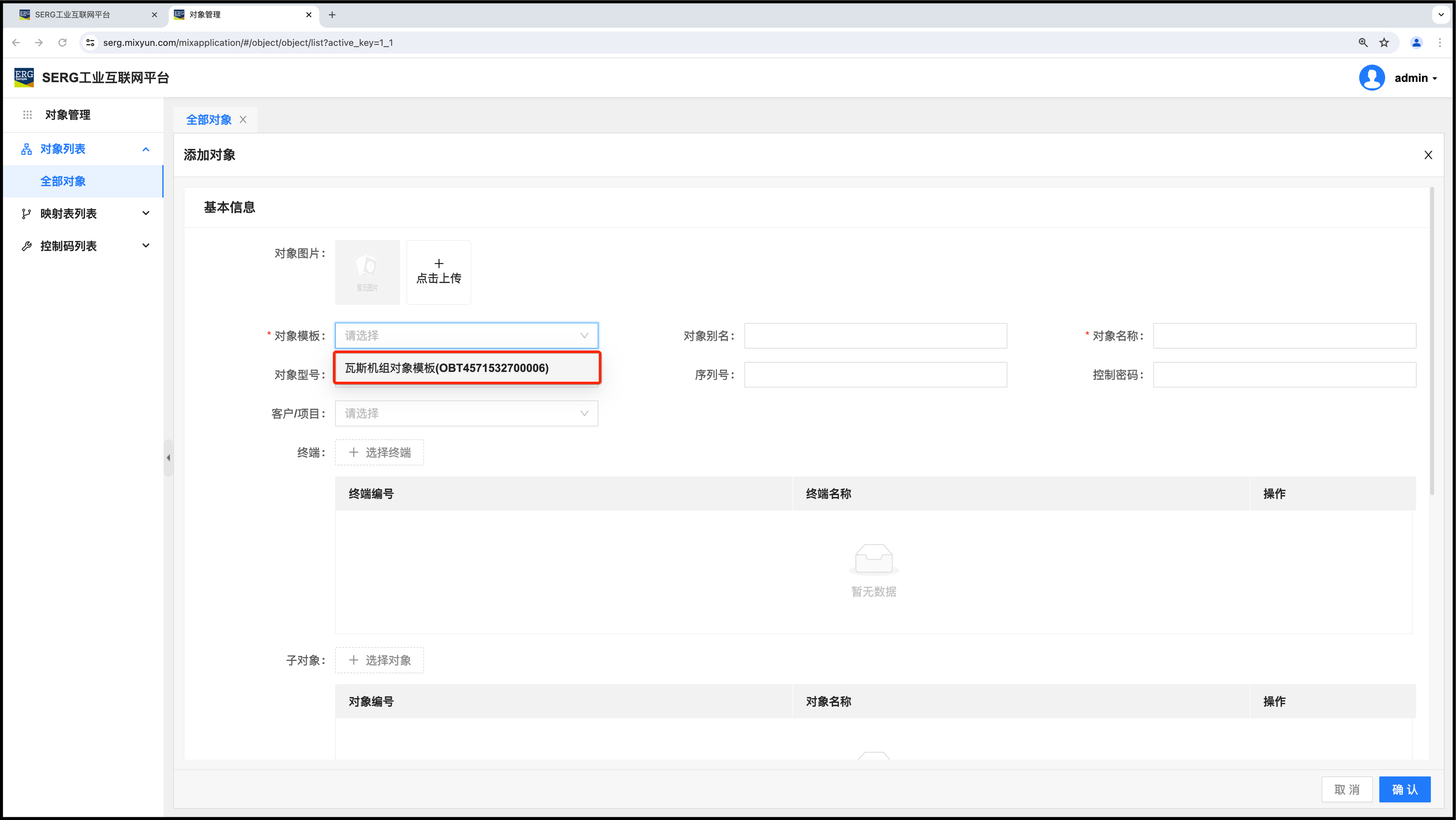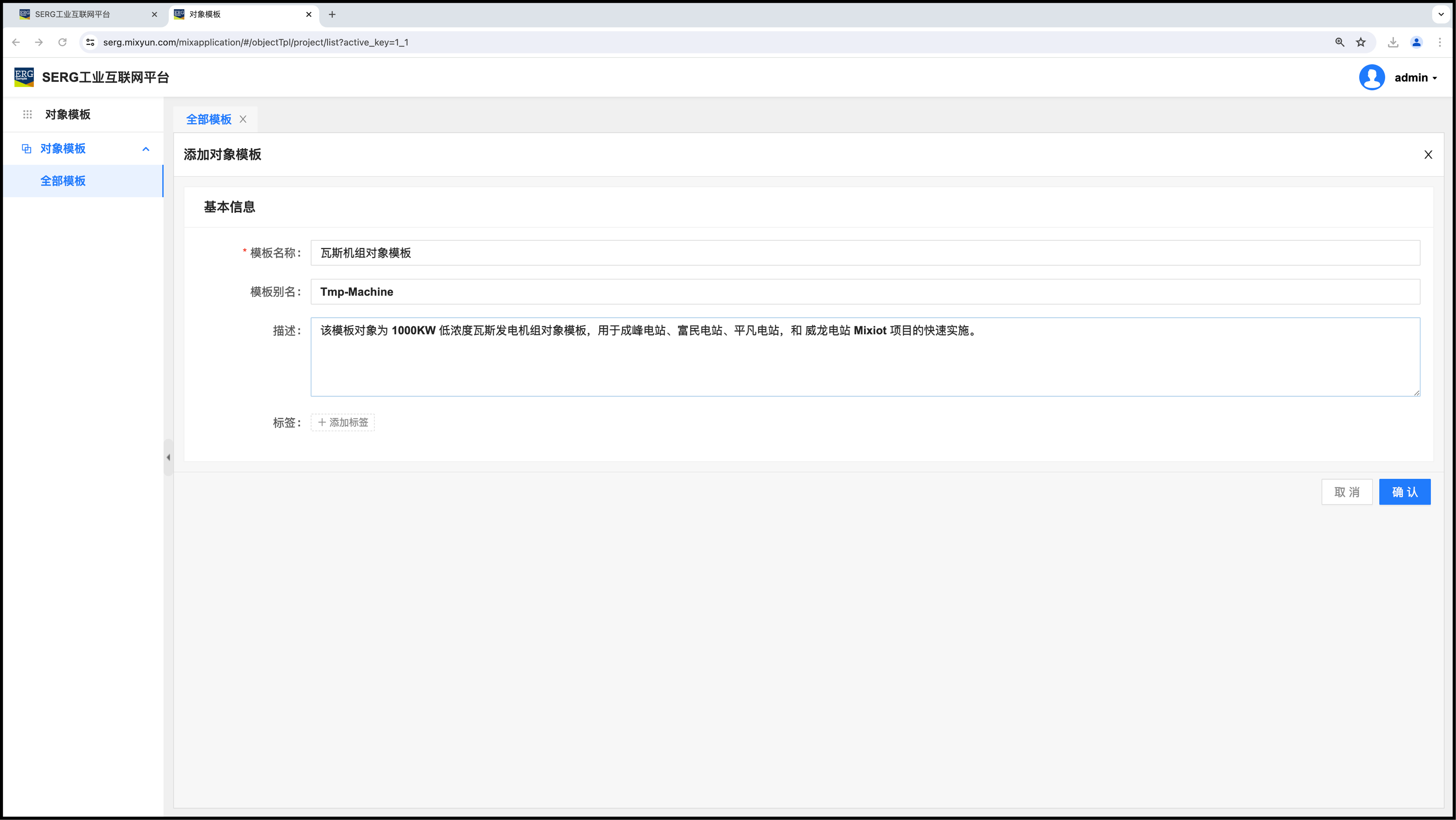 “对象模板” 应用是 MixIOT 系统中最复杂的一个应用。