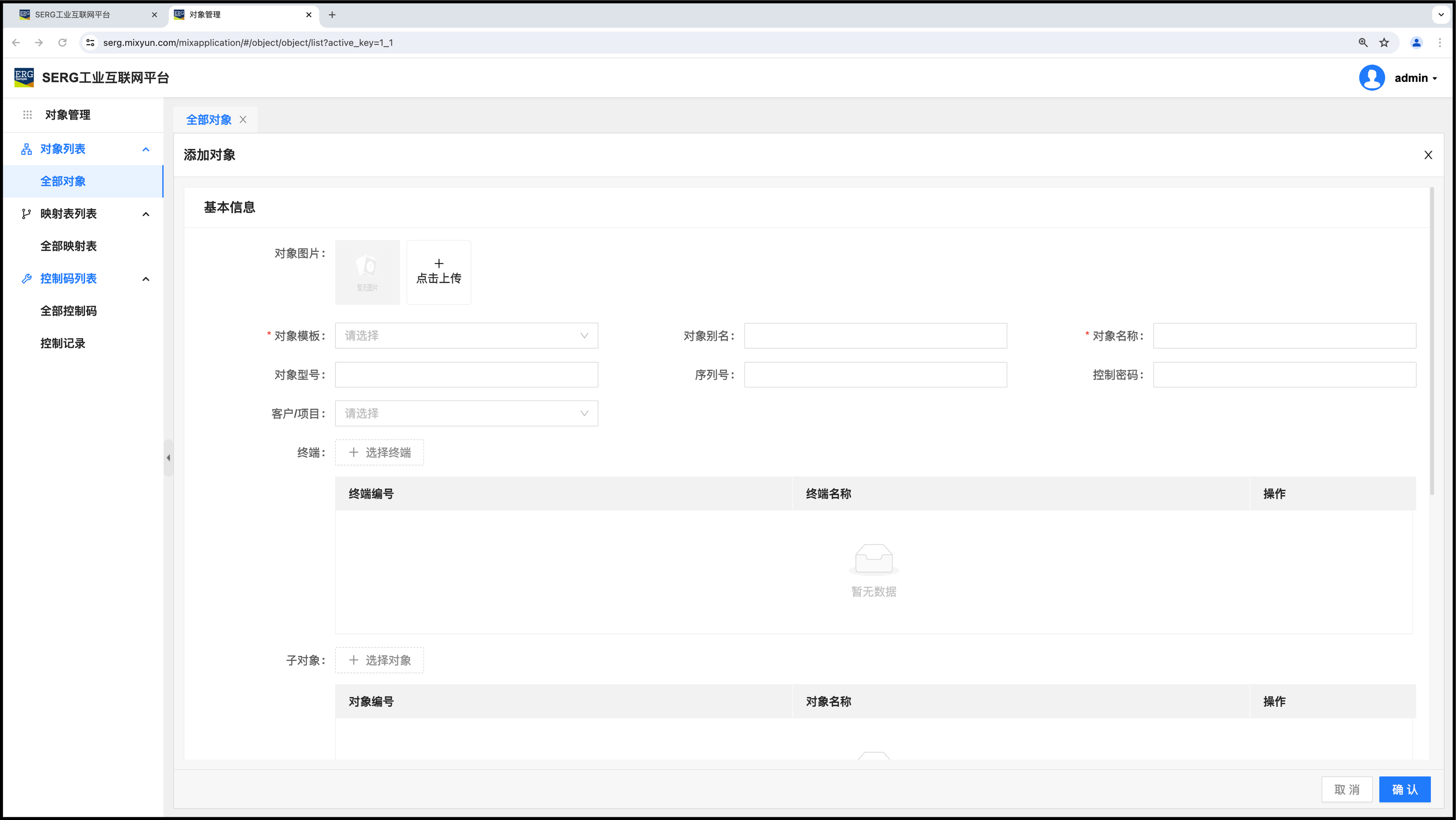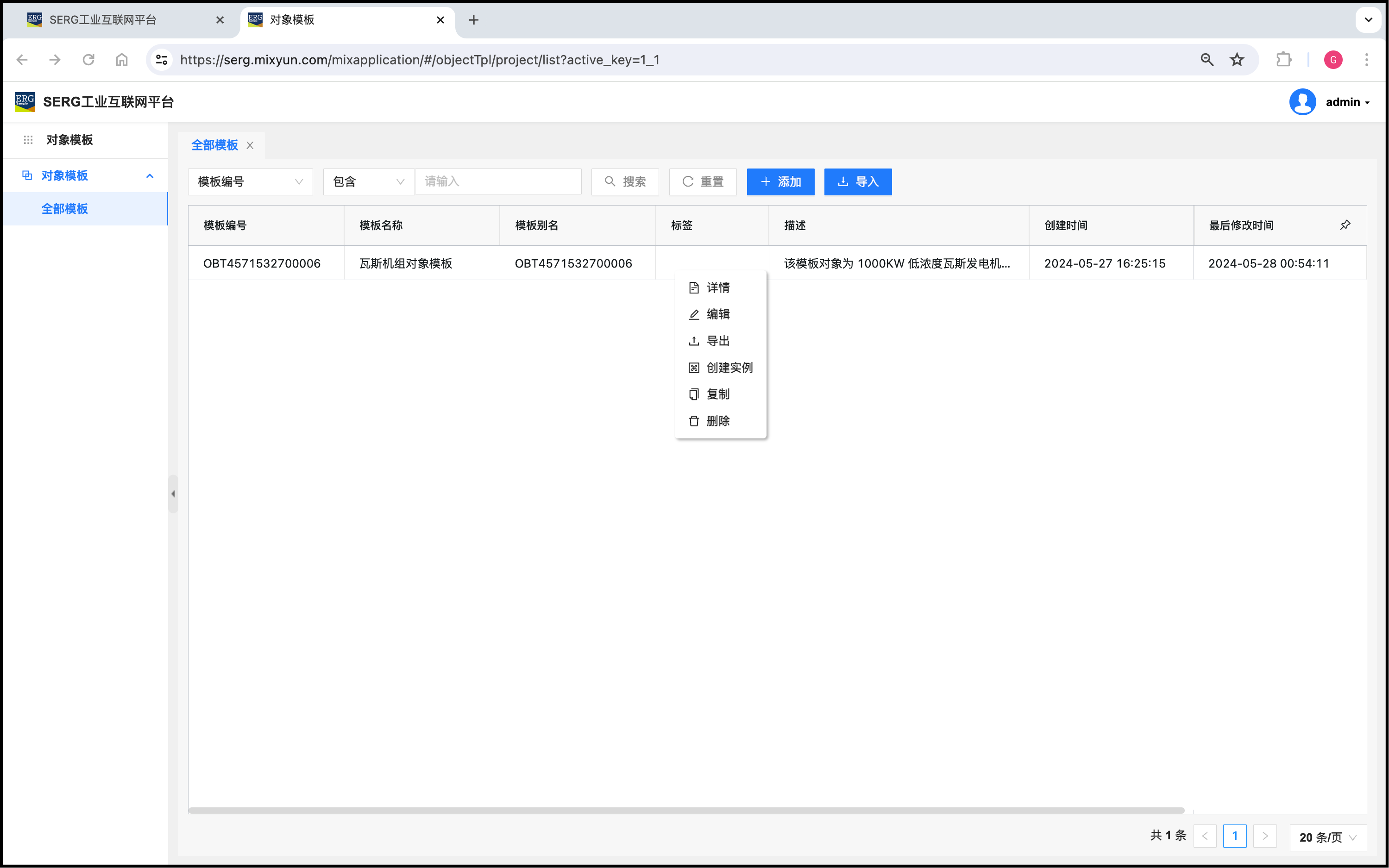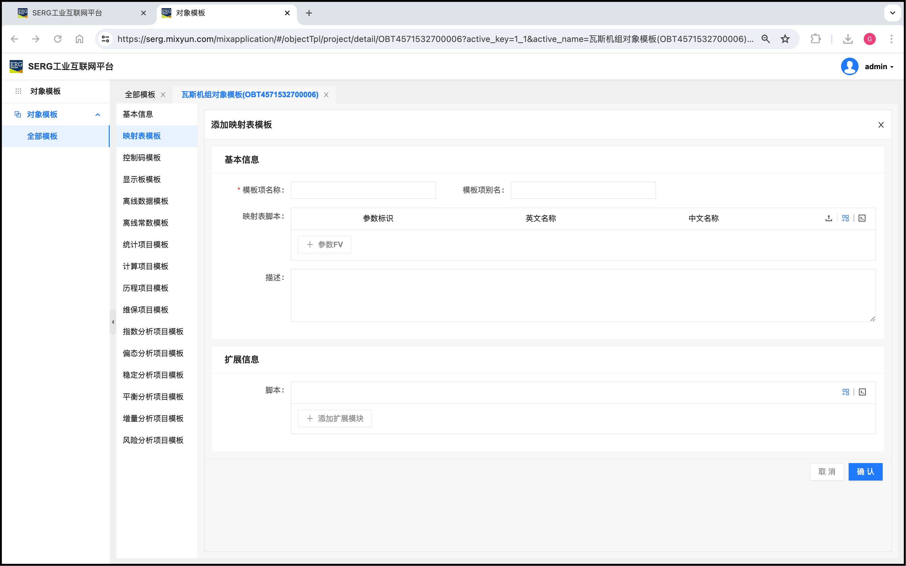“对象模板” 应用是 MixIOT 系统中最复杂的一个应用。