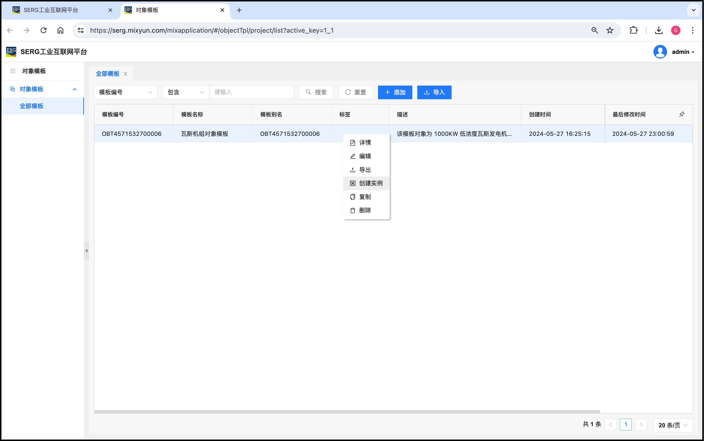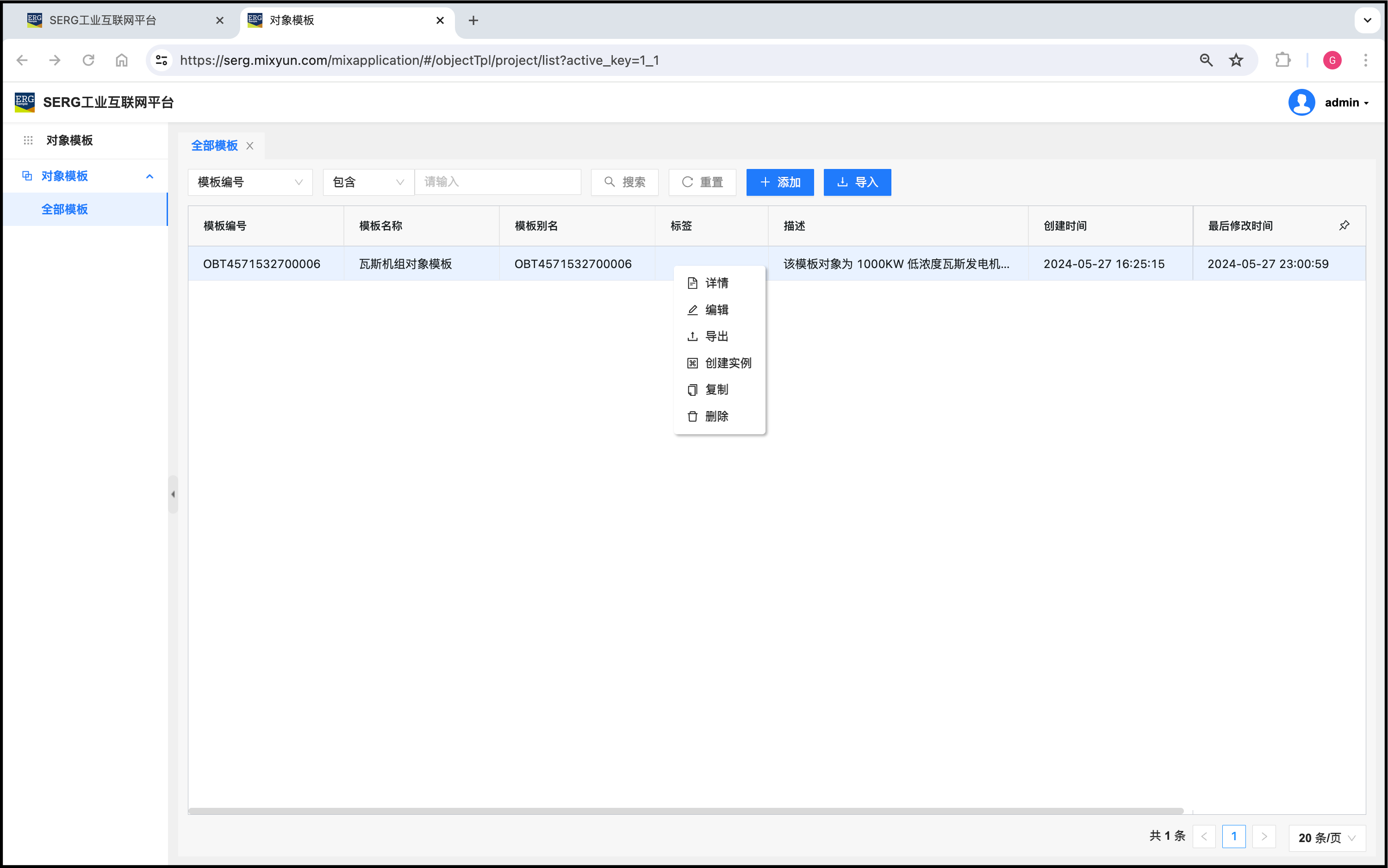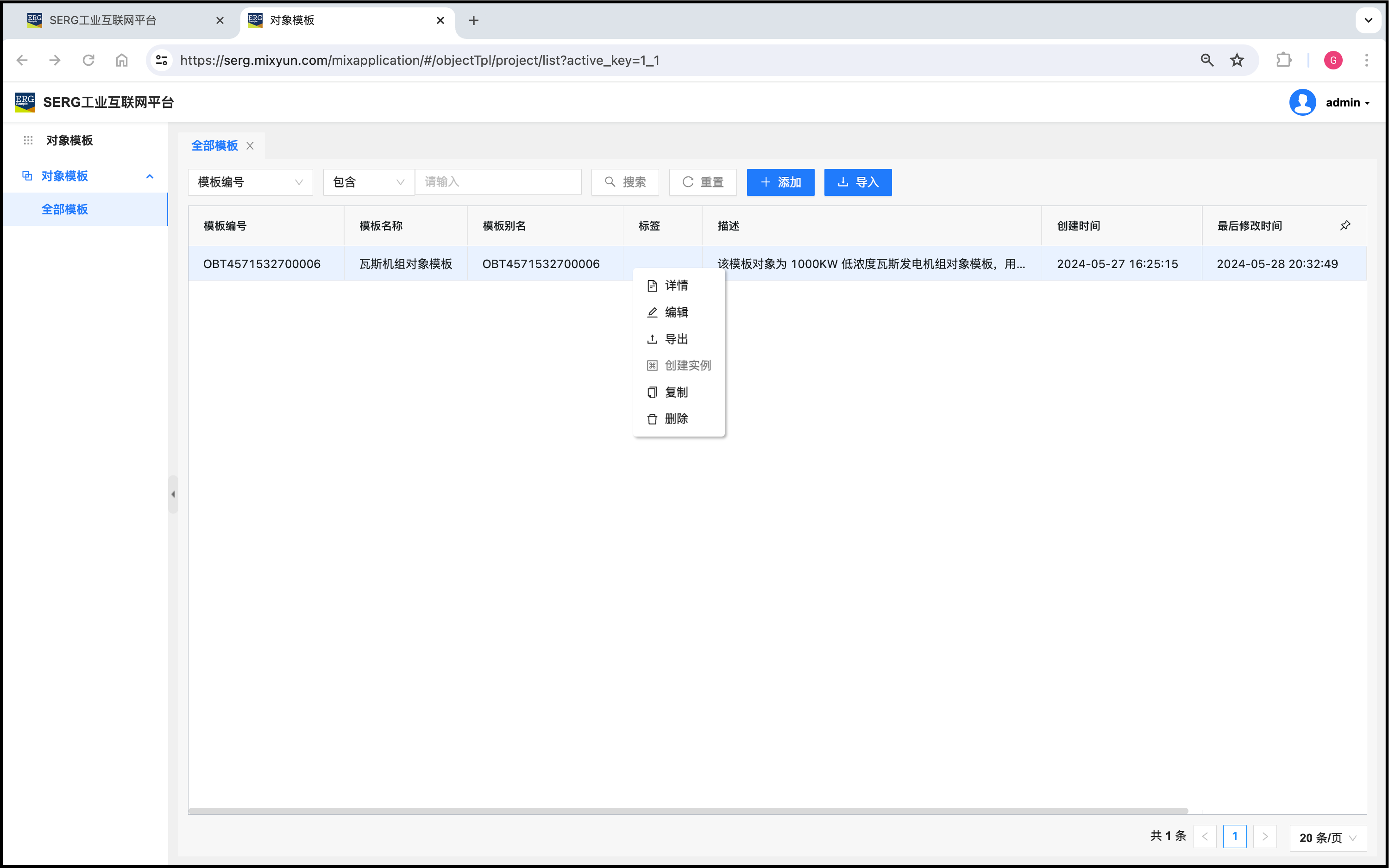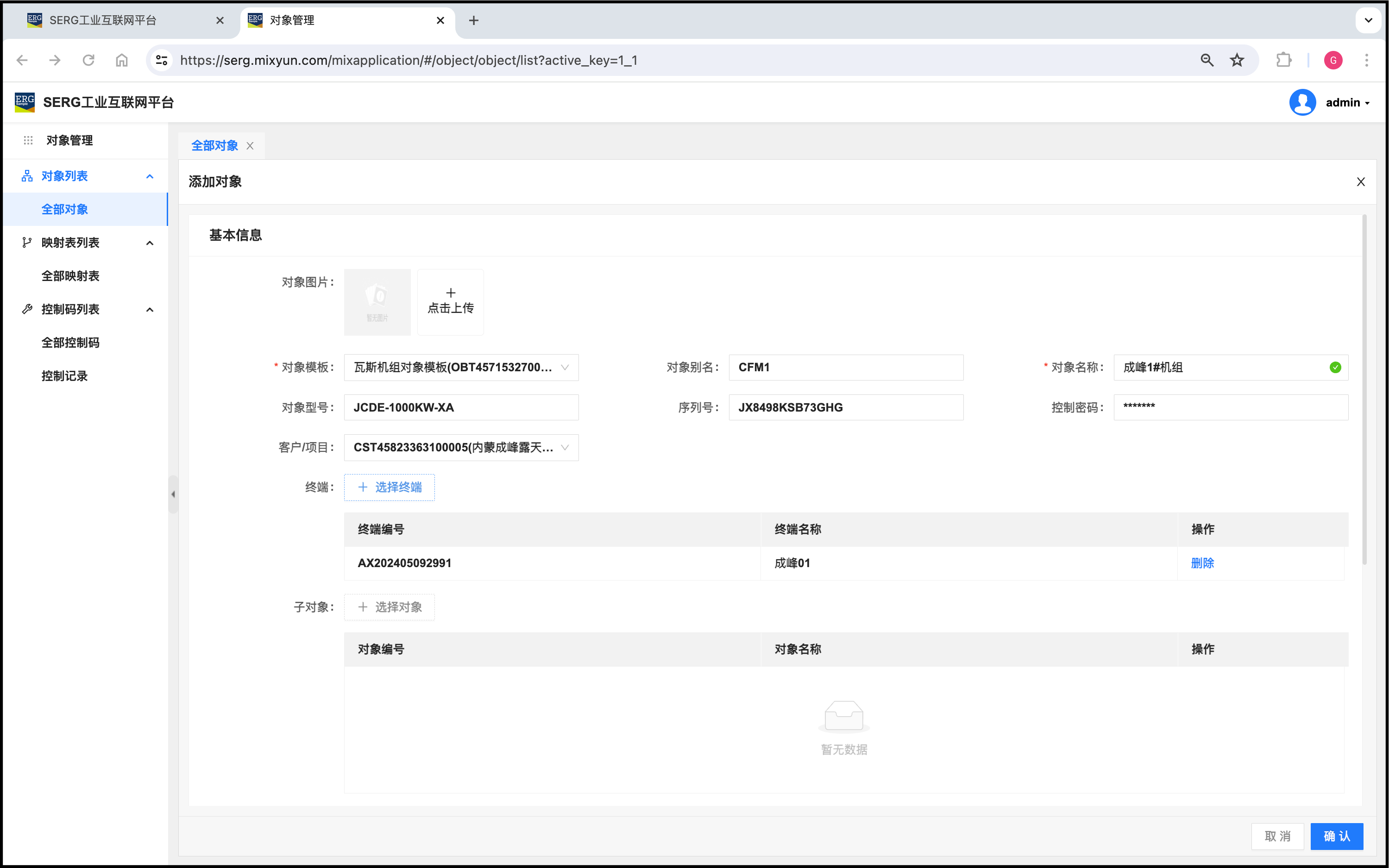 “对象模板” 应用是 MixIOT 系统中最复杂的一个应用。