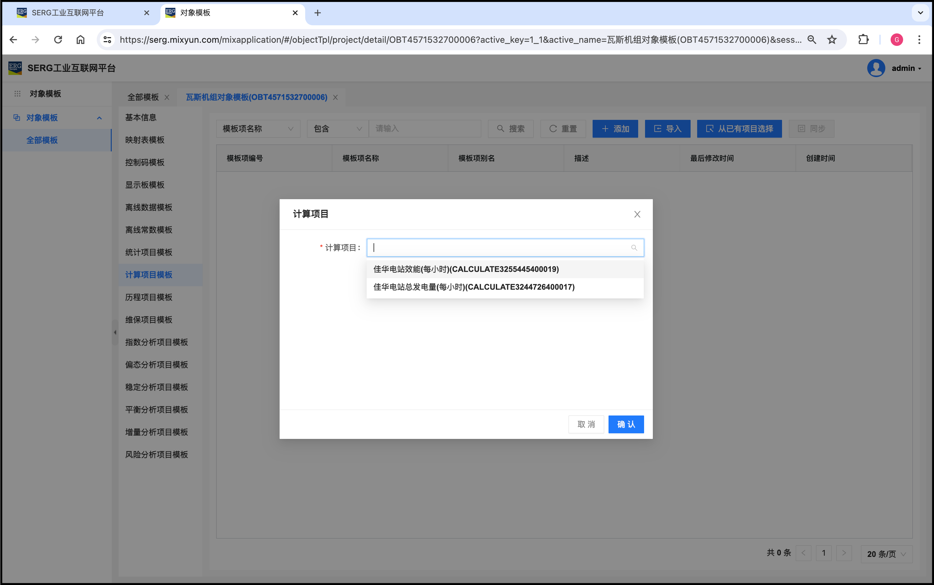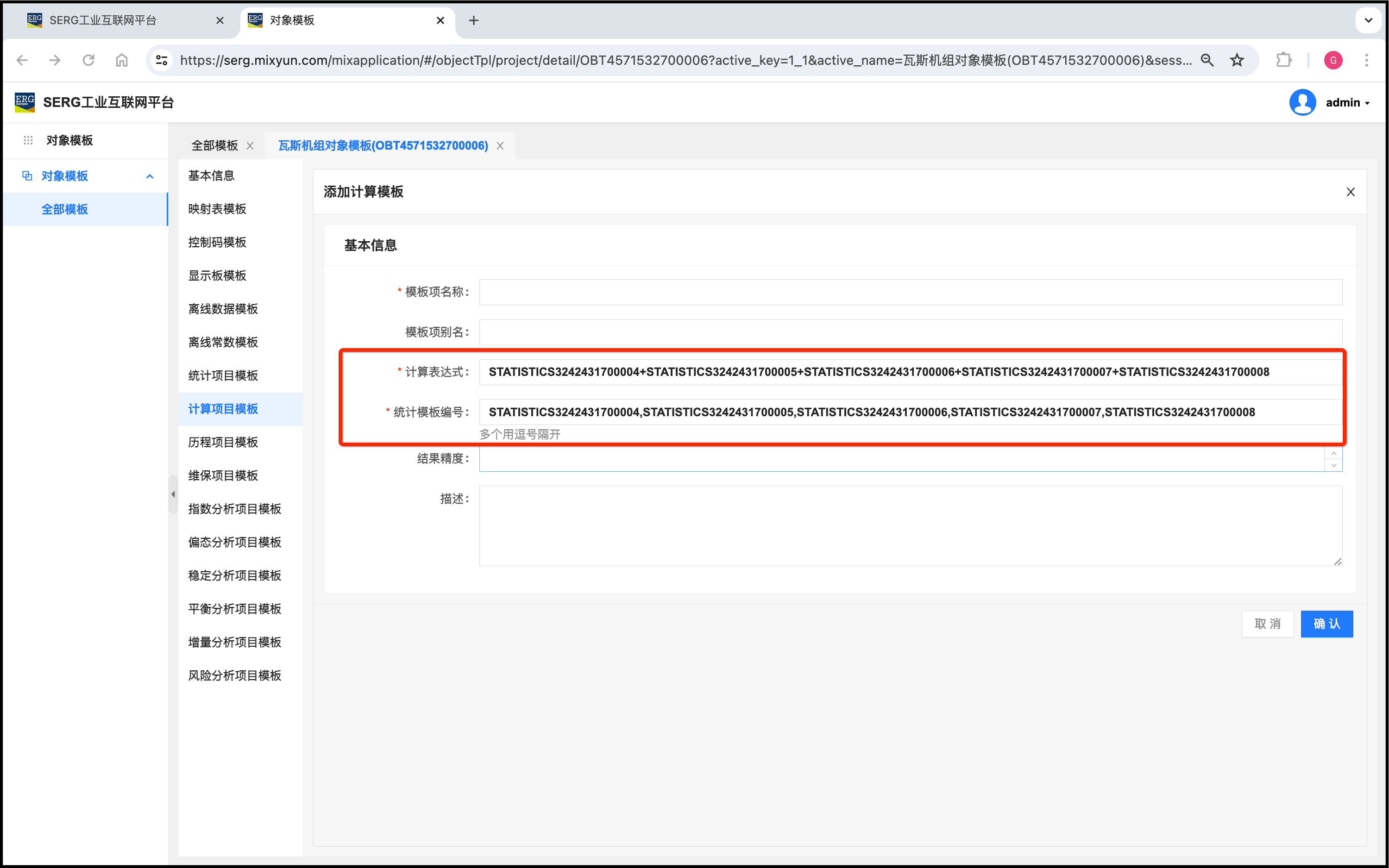 要注意的是,Mixiot V8 的某些部署版本中,对象模板中有可能并不包括 “计算模板项”。这是因为计算的表达式是不可能完全一致,无法完全复制。