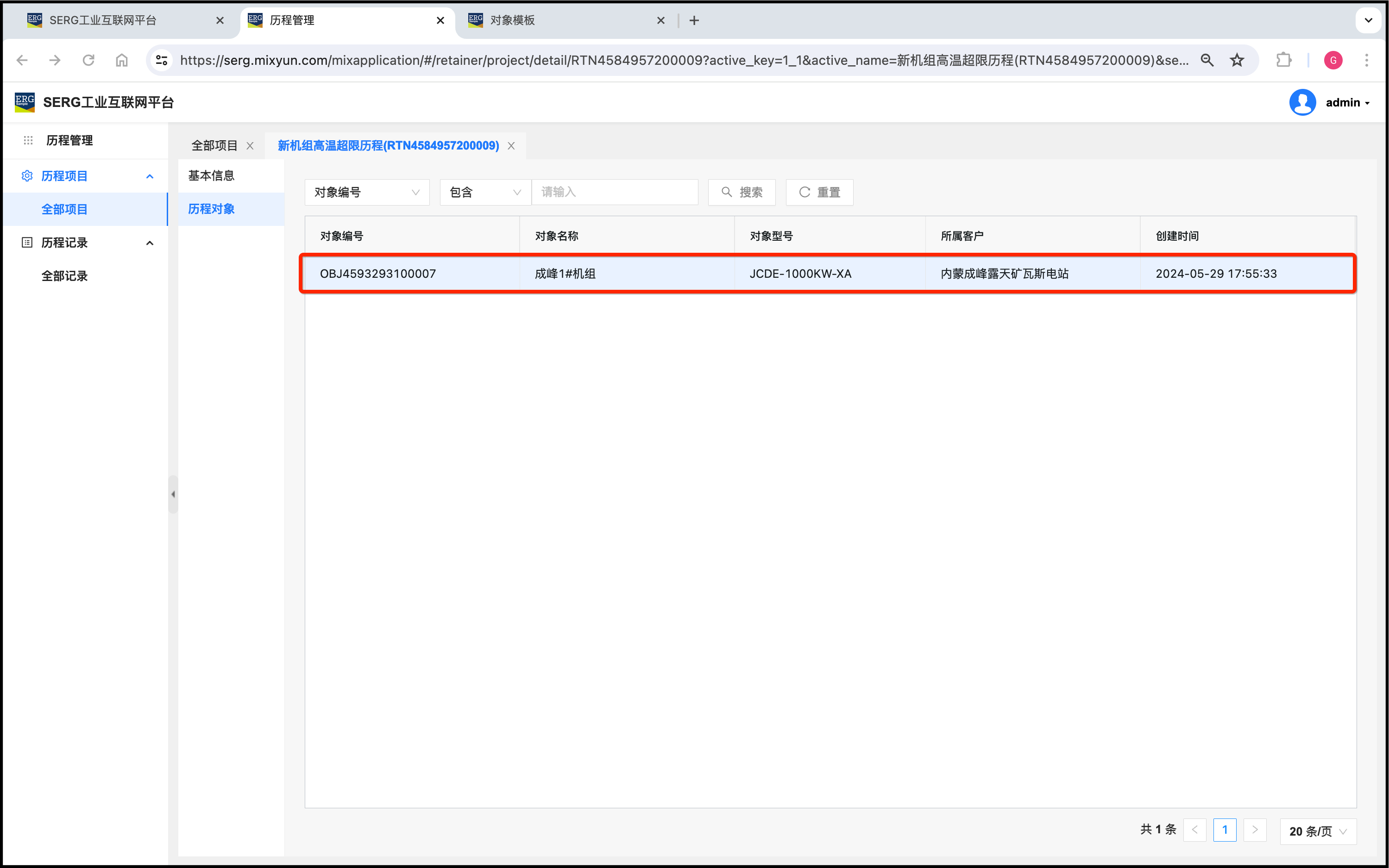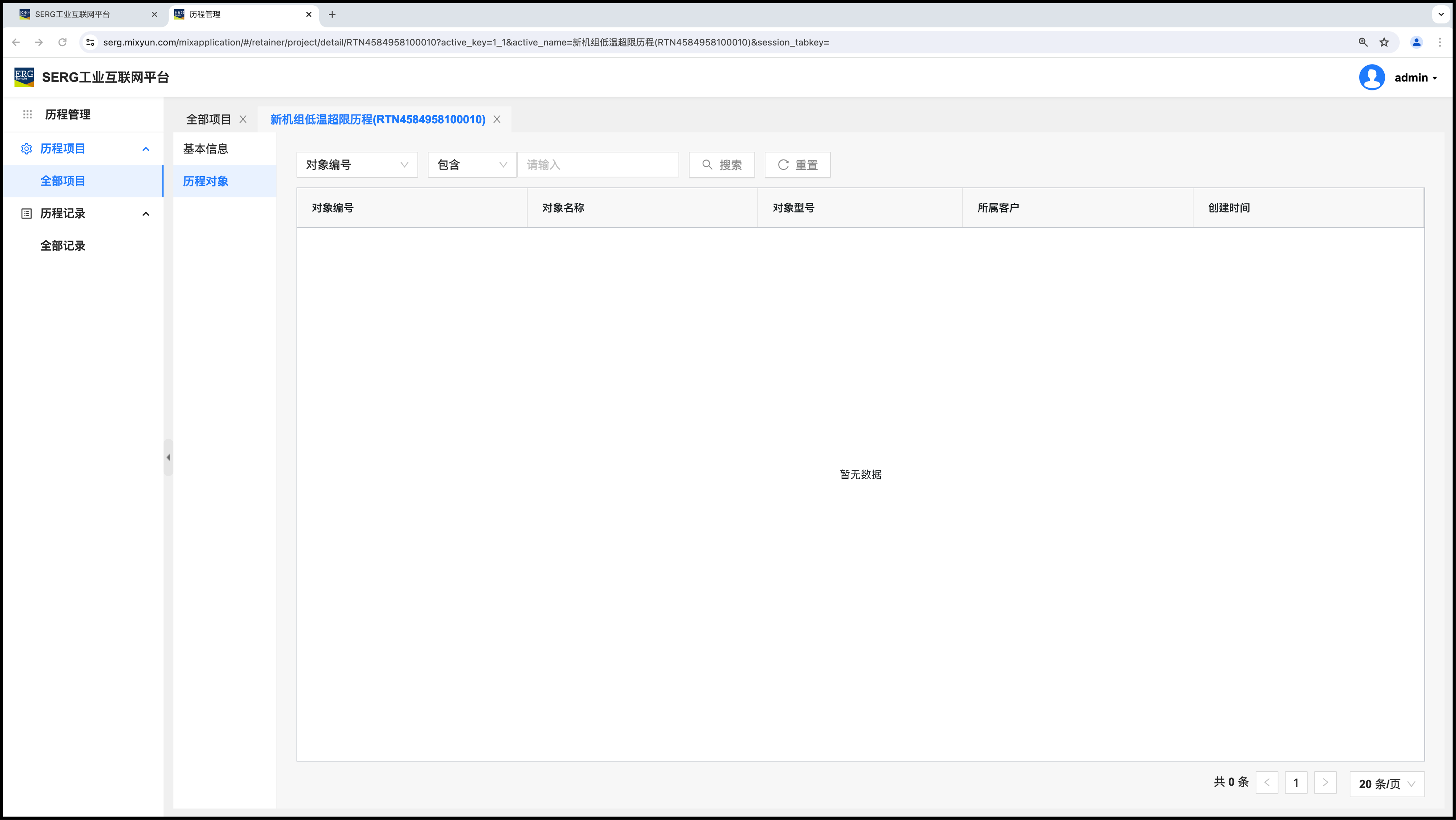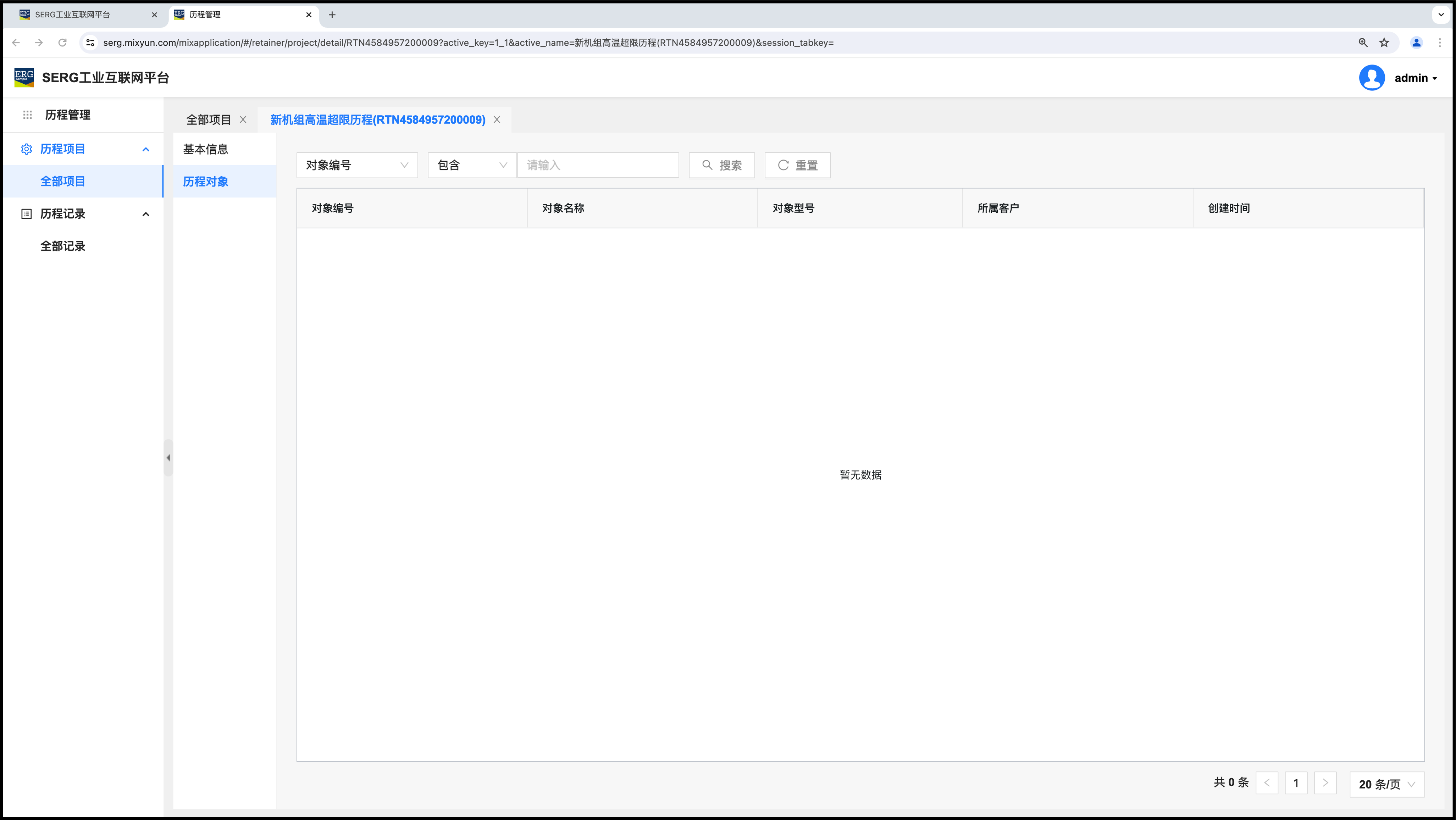 每个历程项目的关联对象,也包含了用模板创建的对象: