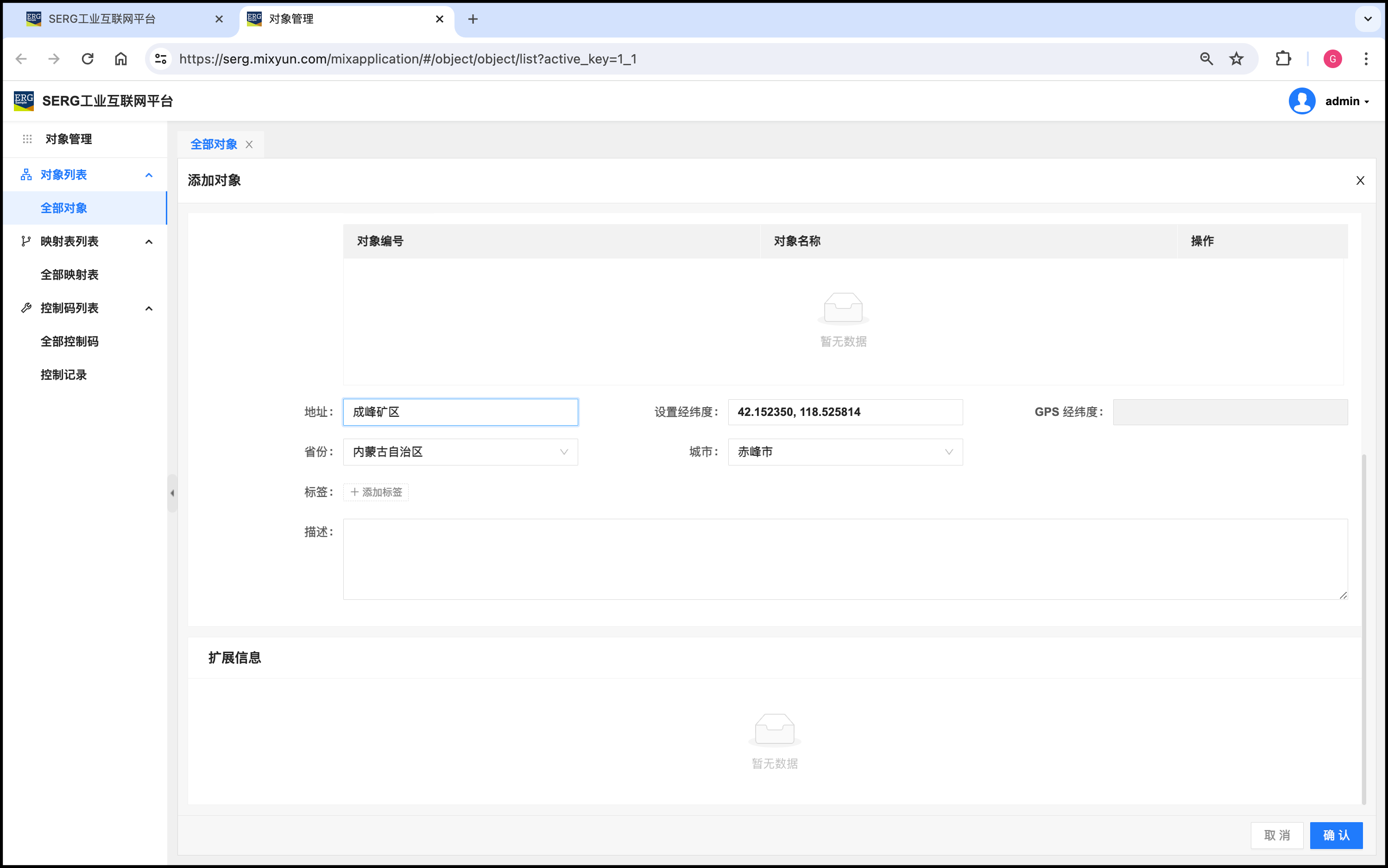 完善这些输入后,确定保存,就完成了这个对象的创建: