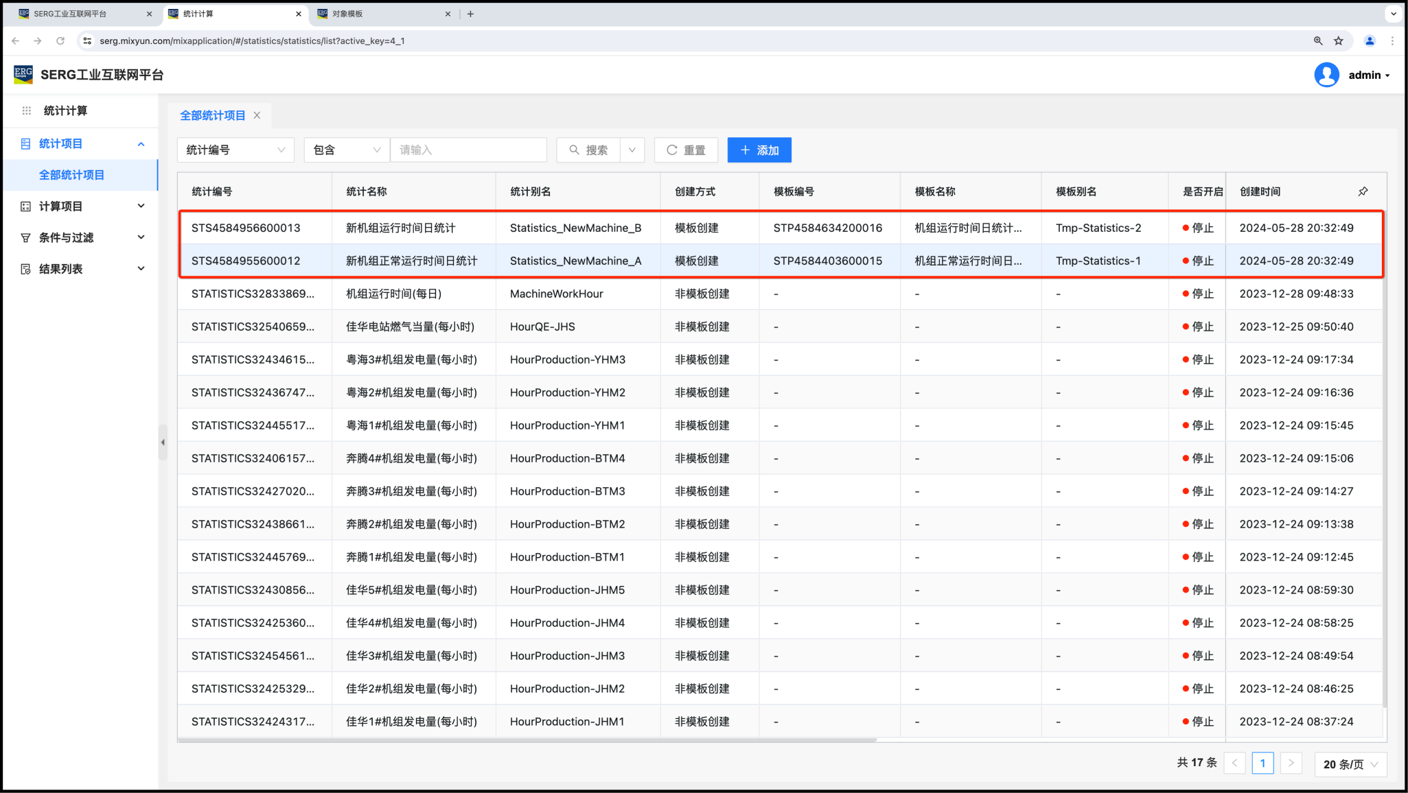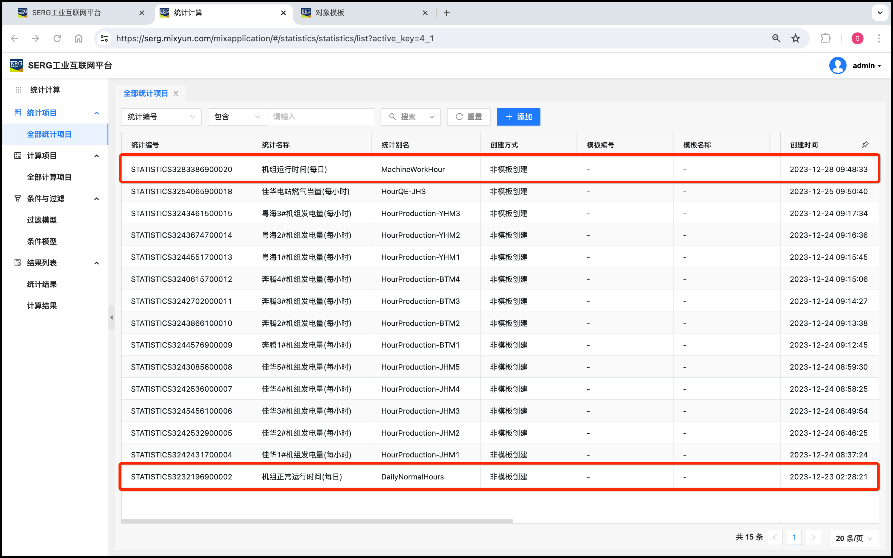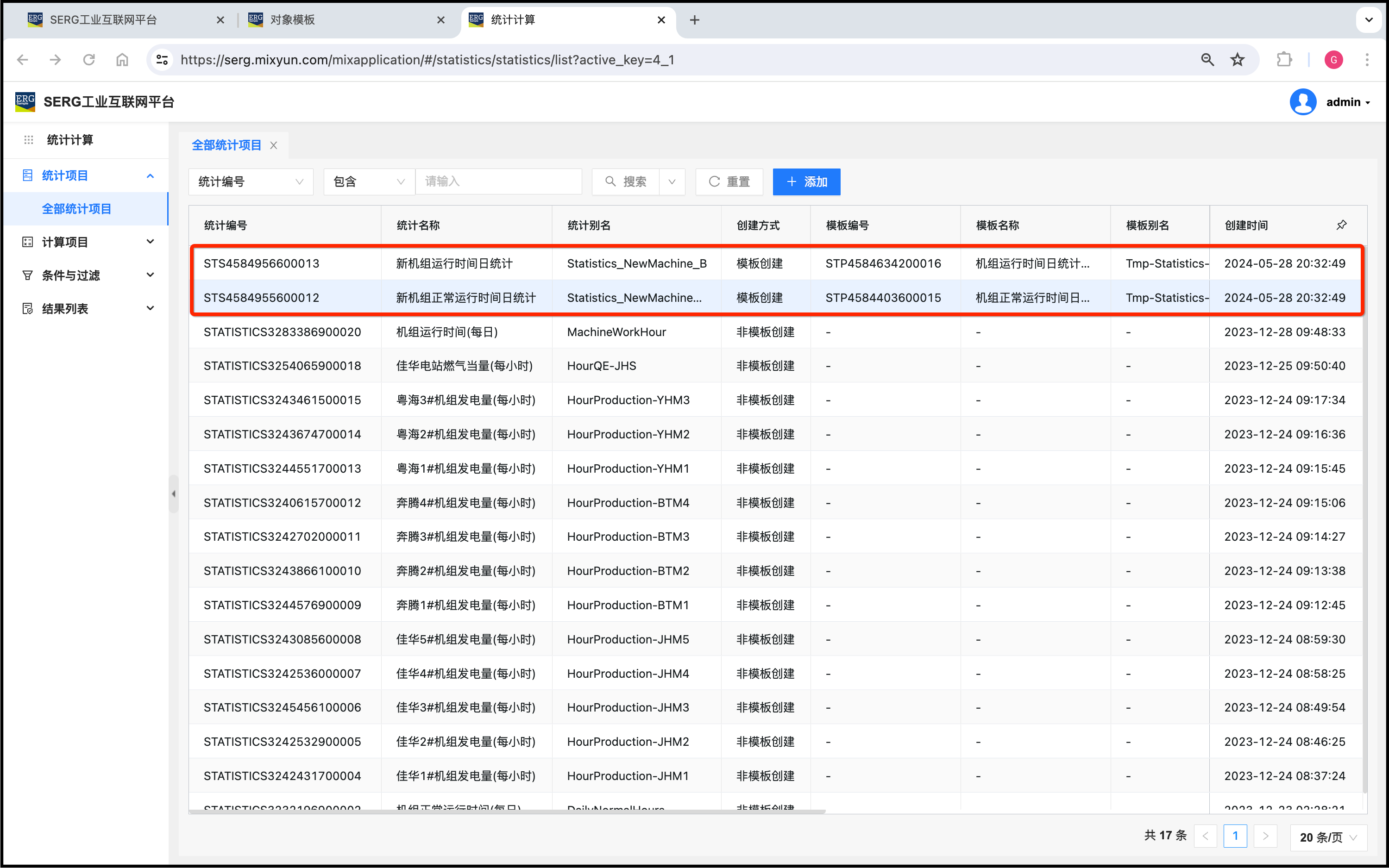 SERG现有的统计项目,在运营中都发挥着重要的作用,我们从中选择了2个机组的日统计项目进入这个对象模板的模板项: