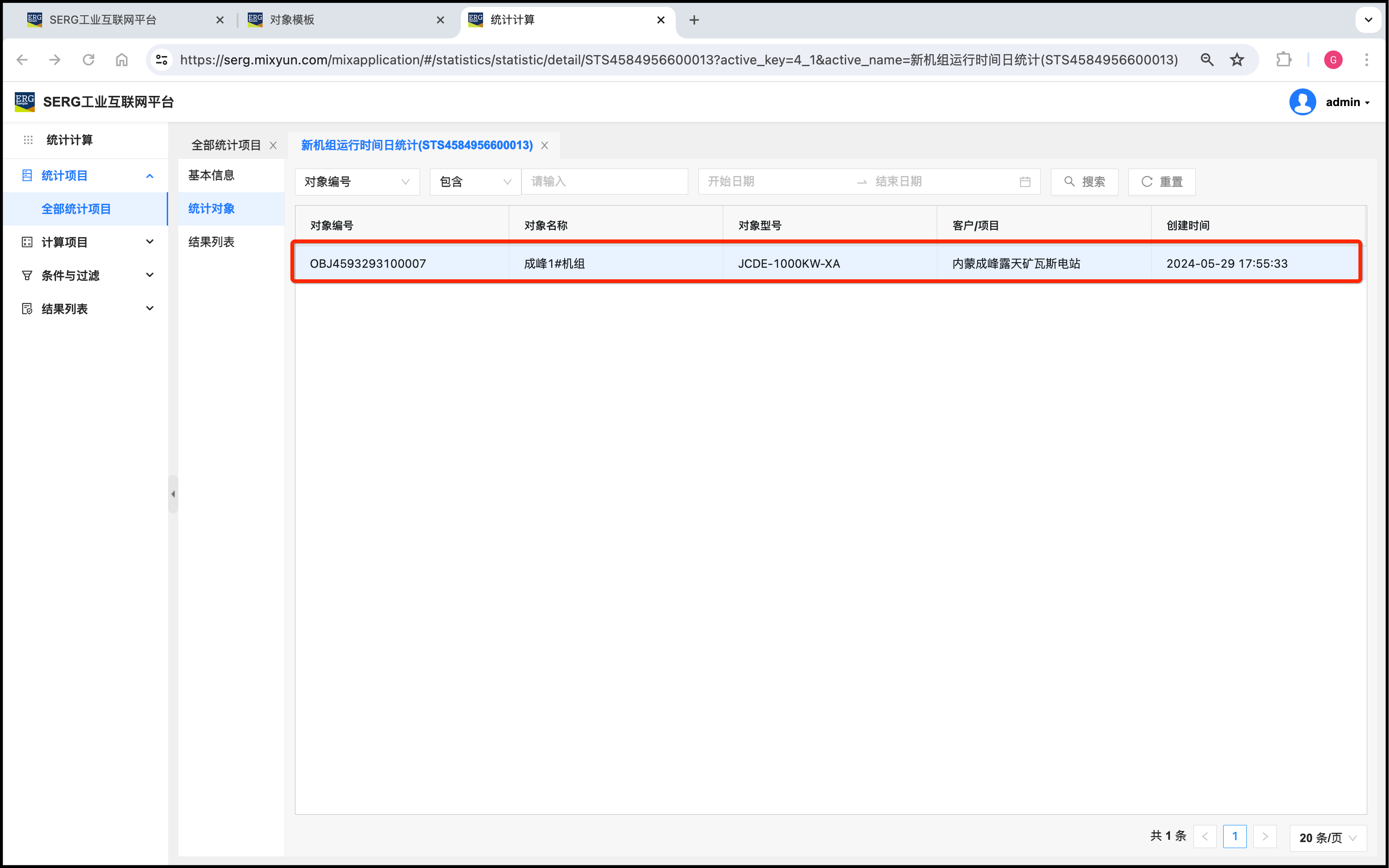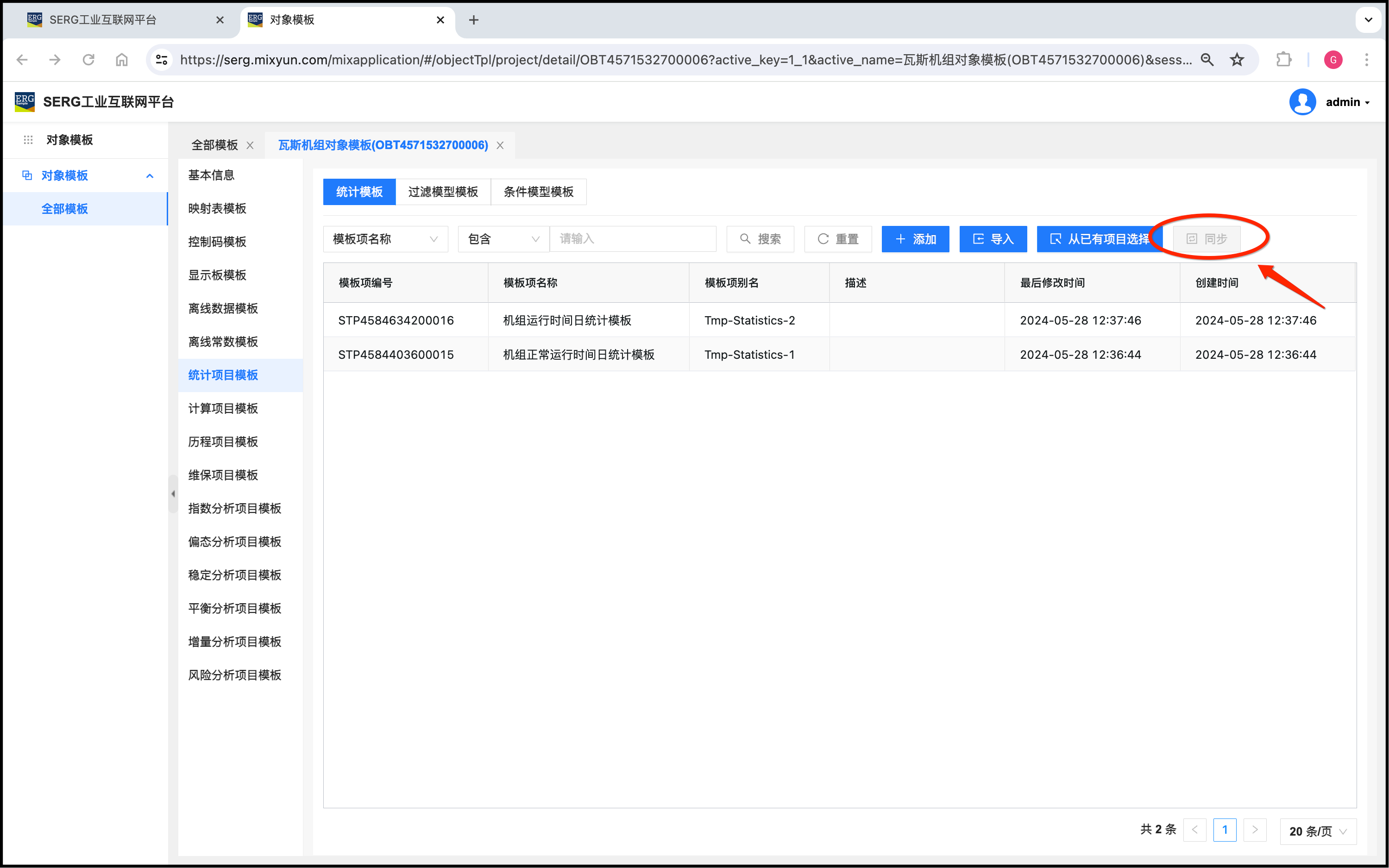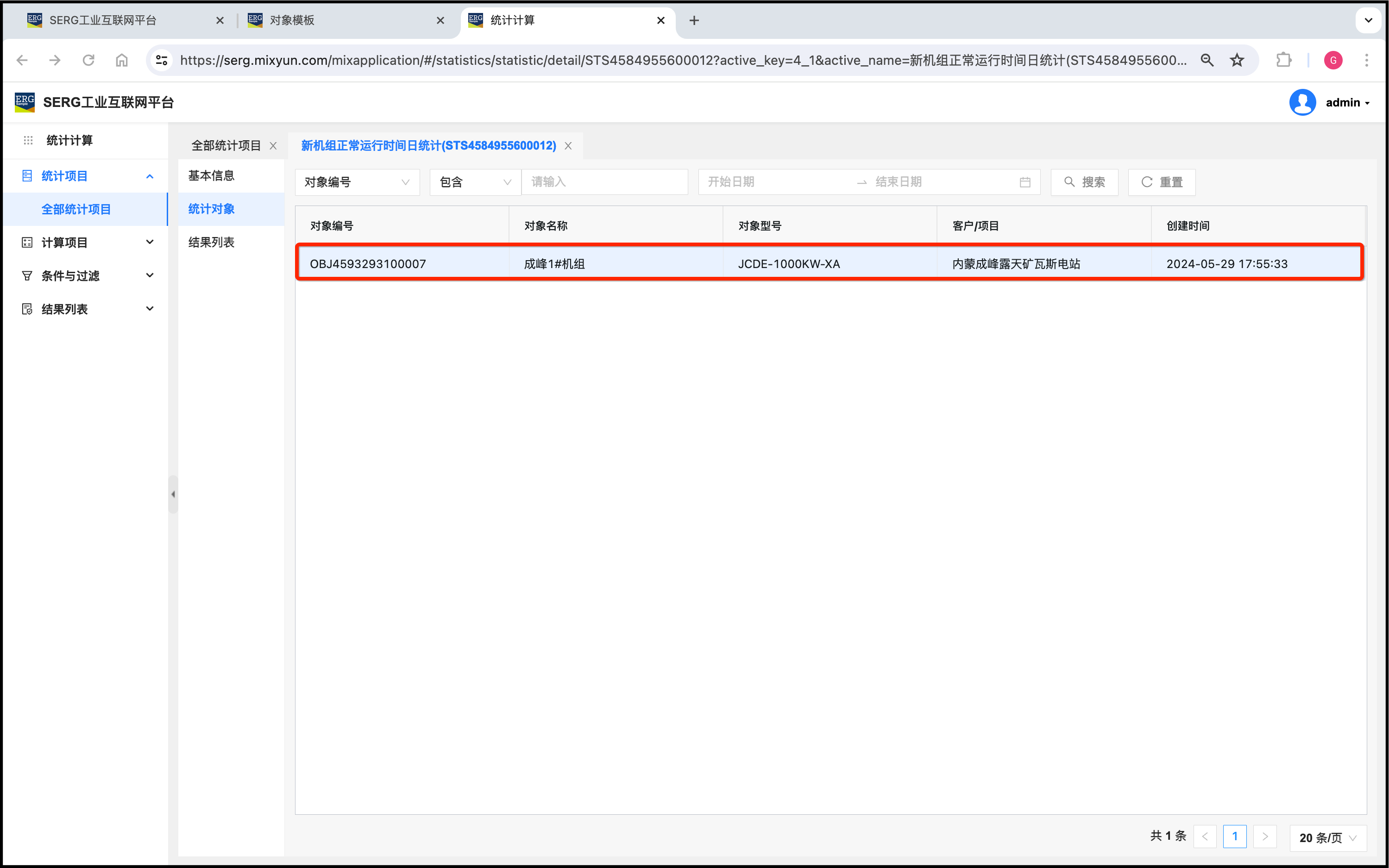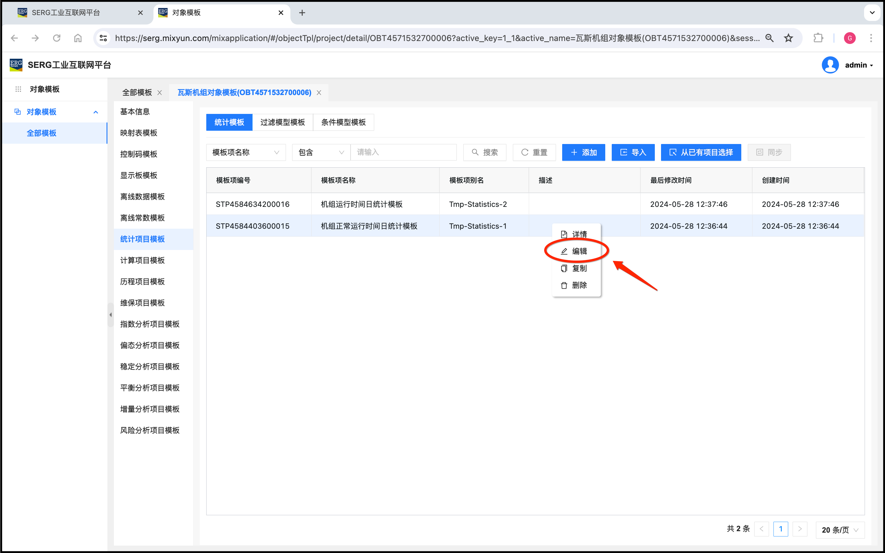 SERG现有的统计项目,在运营中都发挥着重要的作用,我们从中选择了2个机组的日统计项目进入这个对象模板的模板项:
