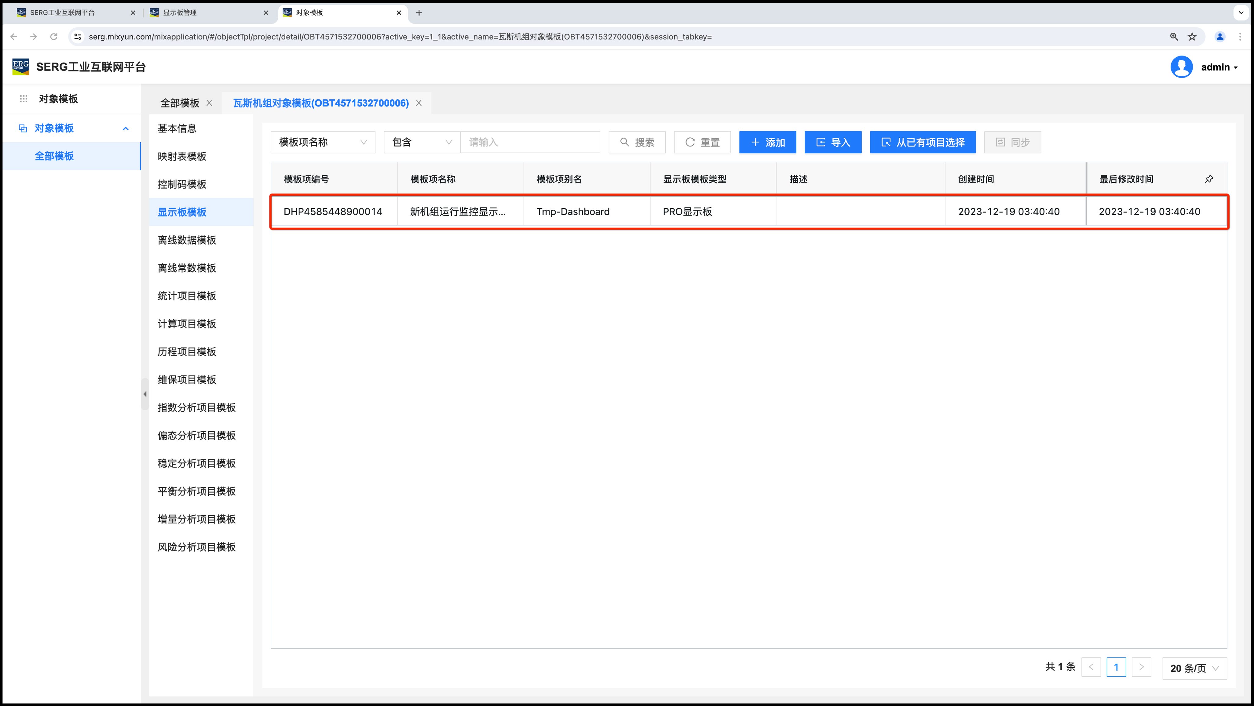 所以,每个对象模板中显示板模板项最多只能有三个显示板,PRO、大屏和App显示板各一个。