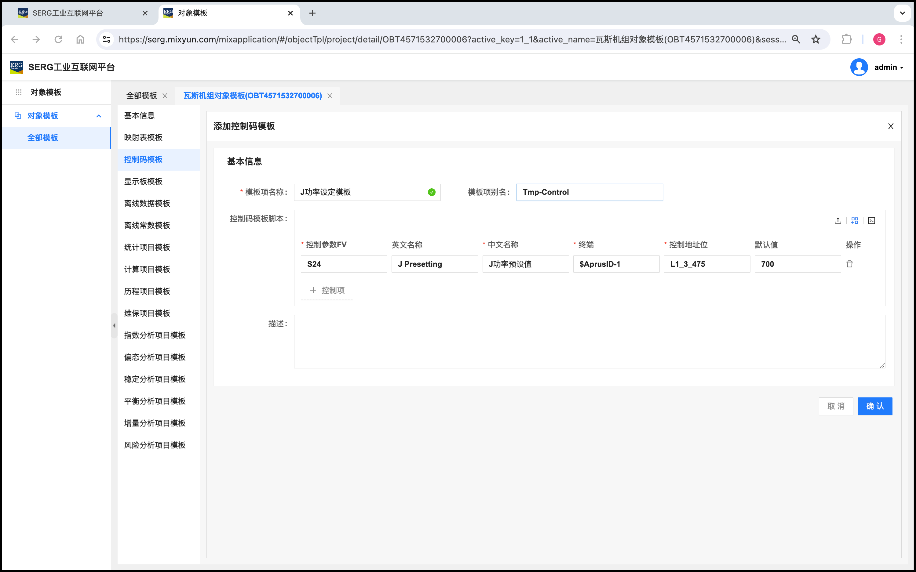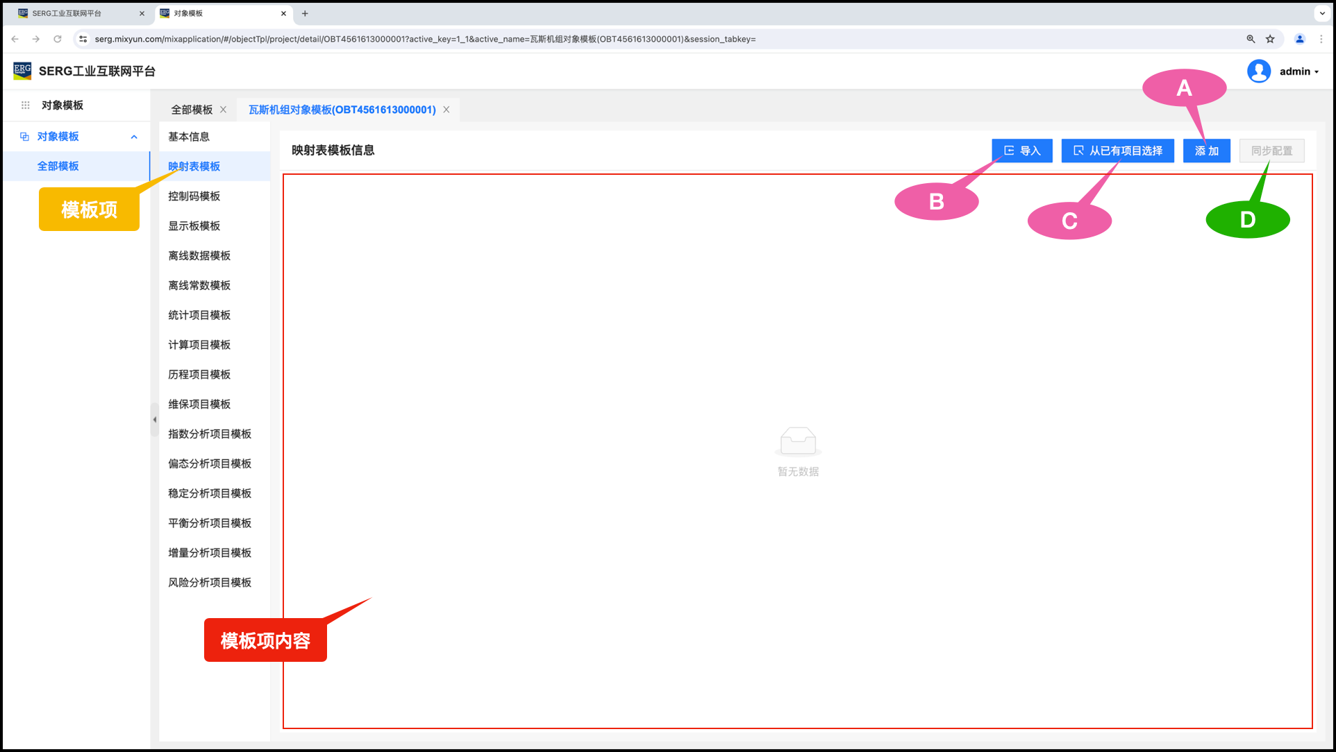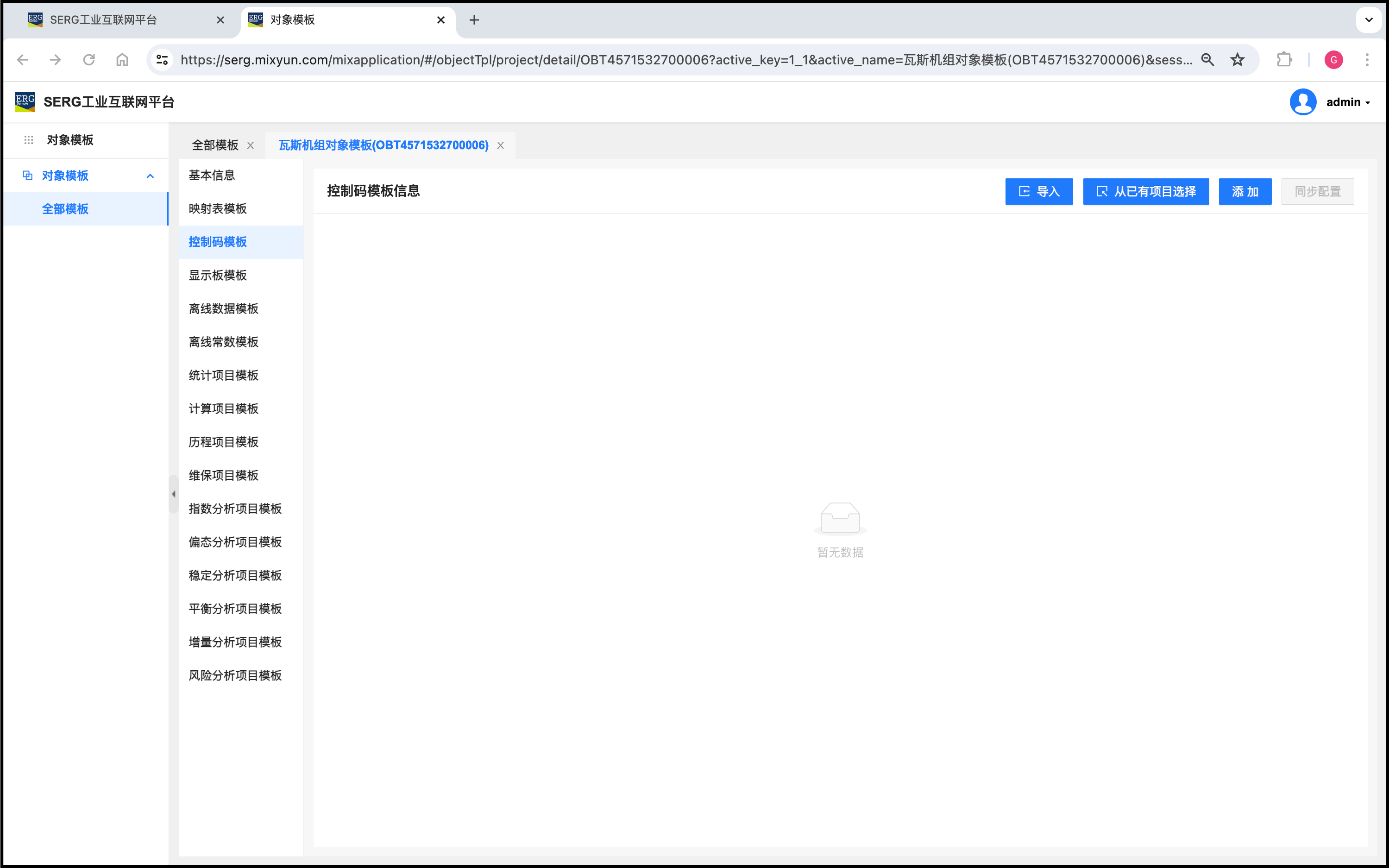 这个对象模板,已经有了 “映射表模板项” 和 “控制码模板项”: