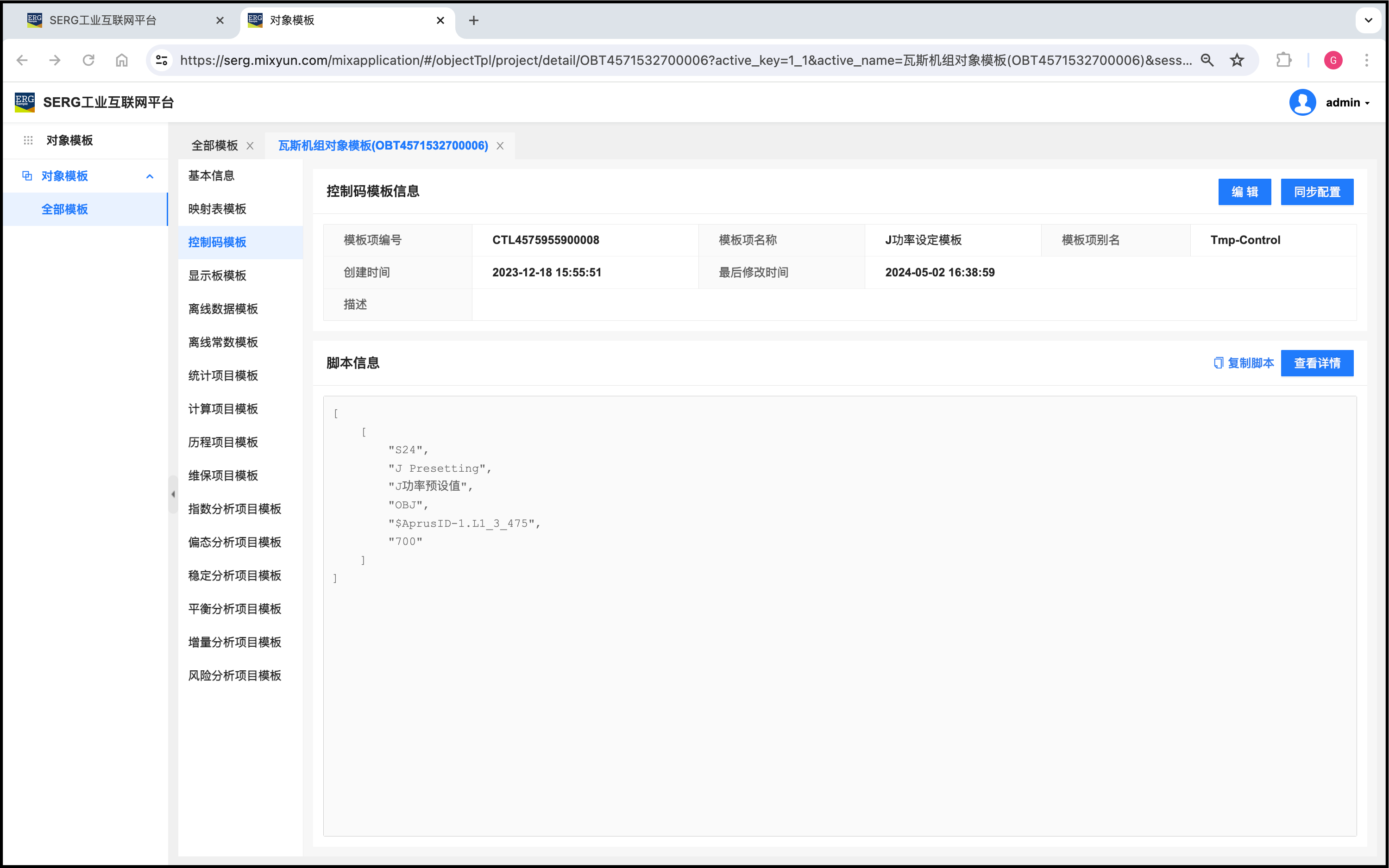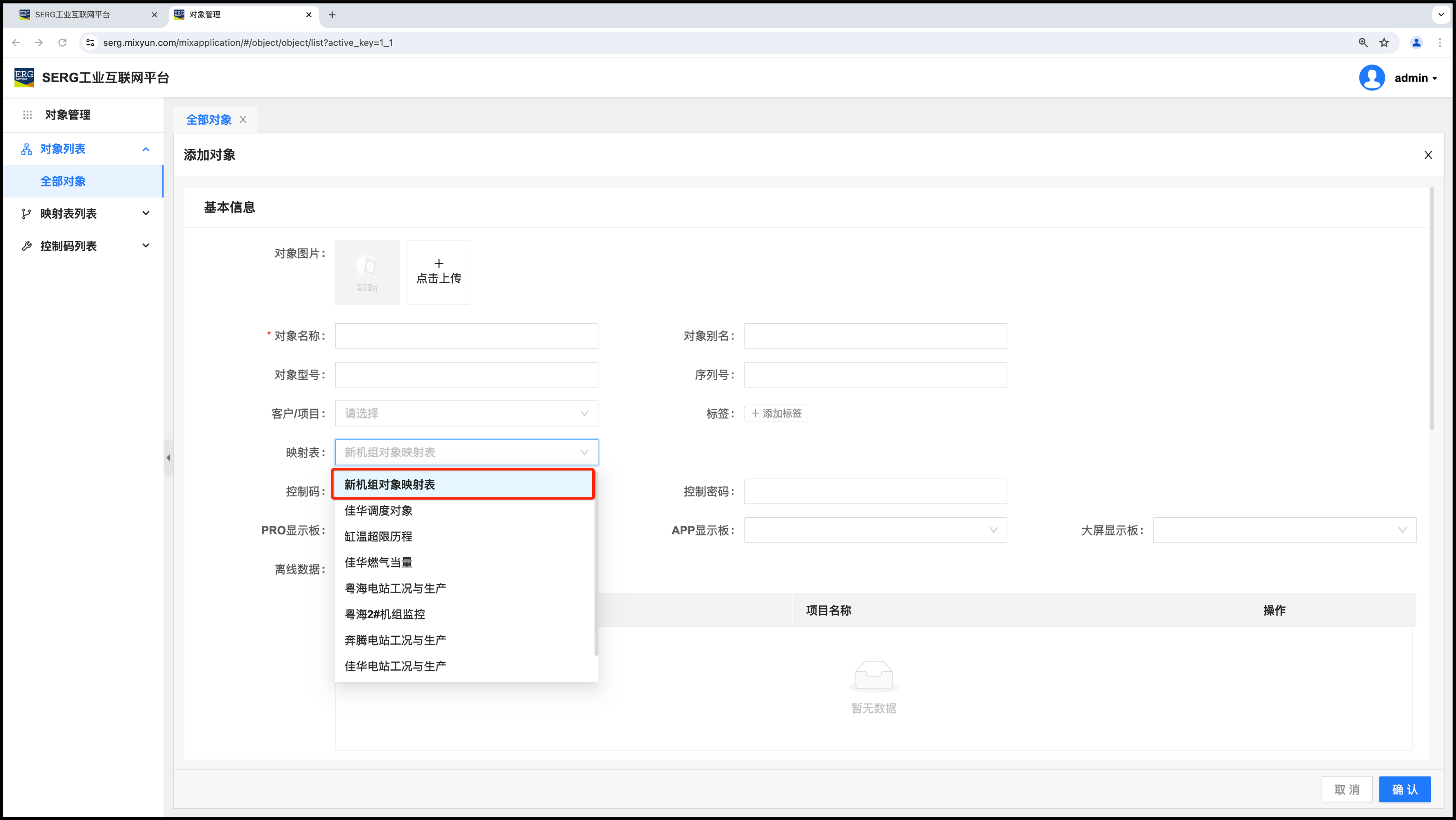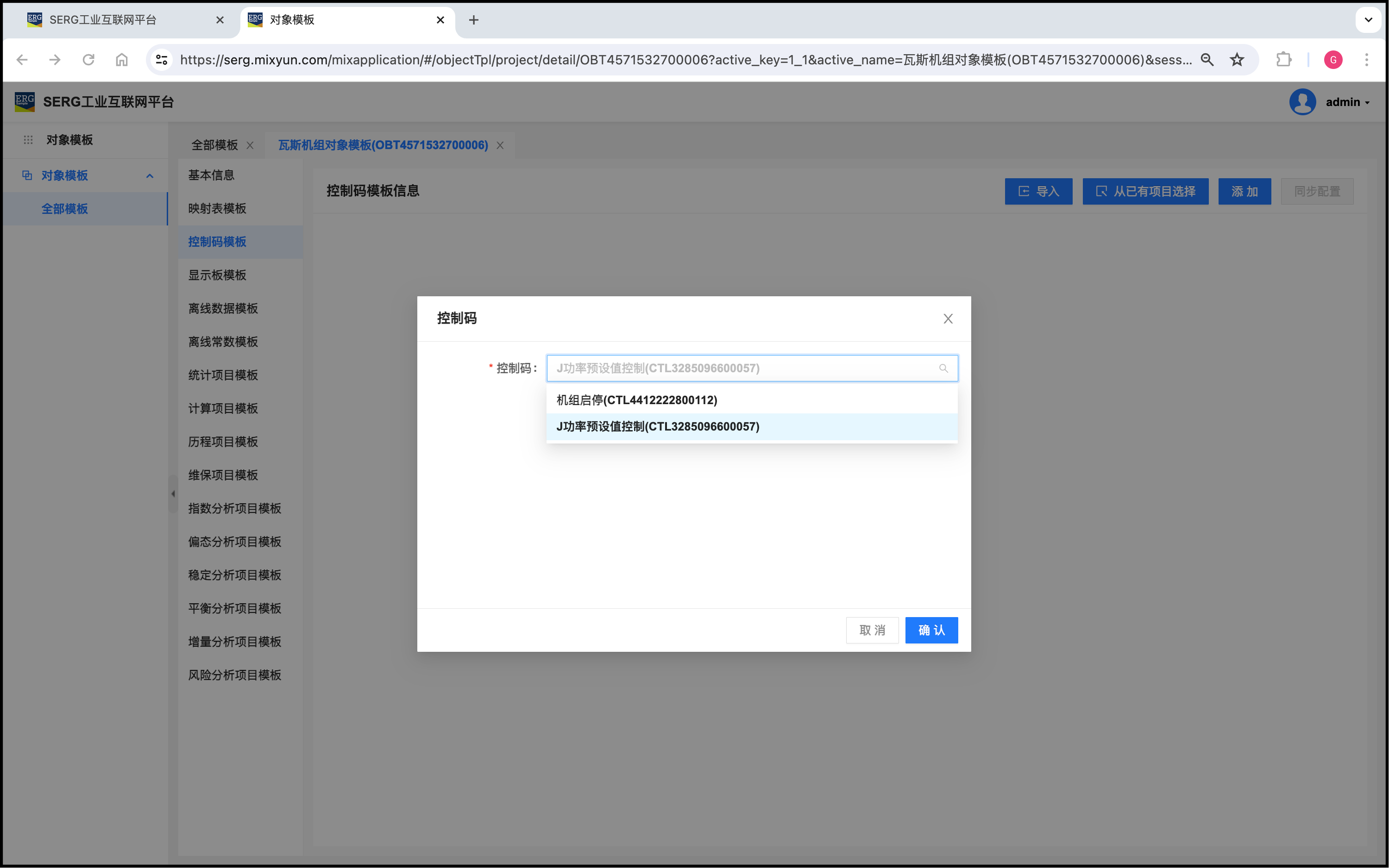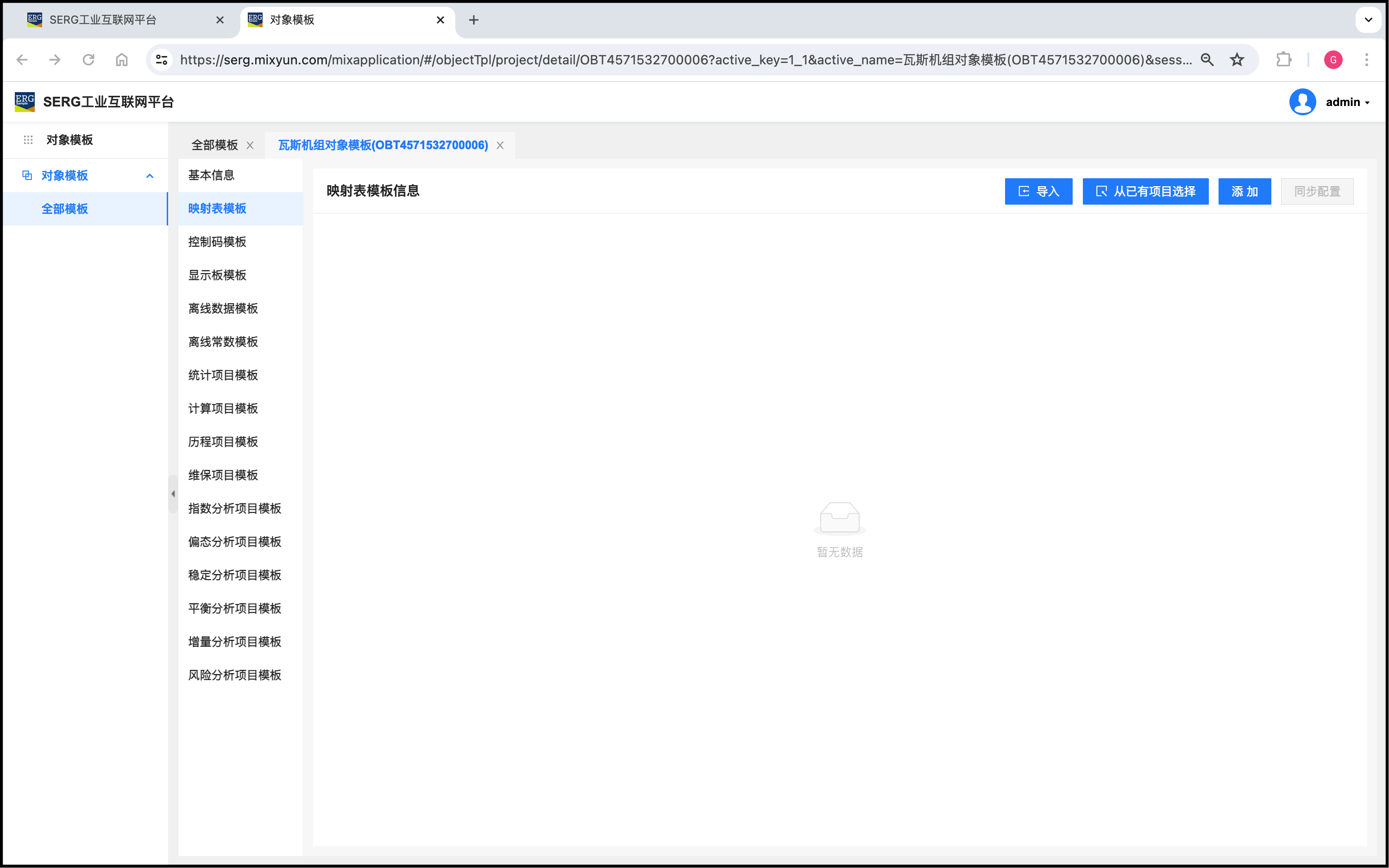 这个对象模板,已经有了 “映射表模板项” 和 “控制码模板项”: