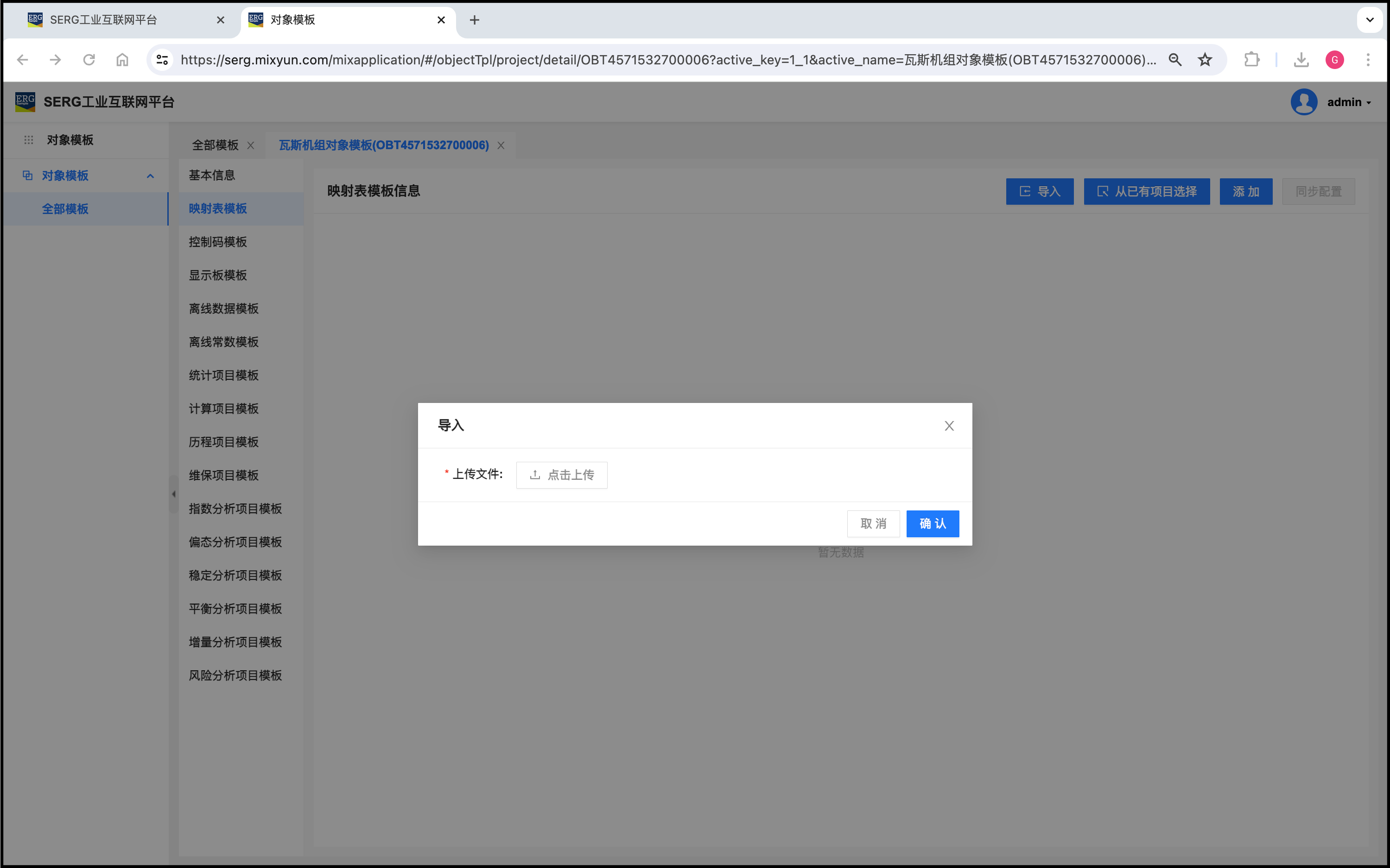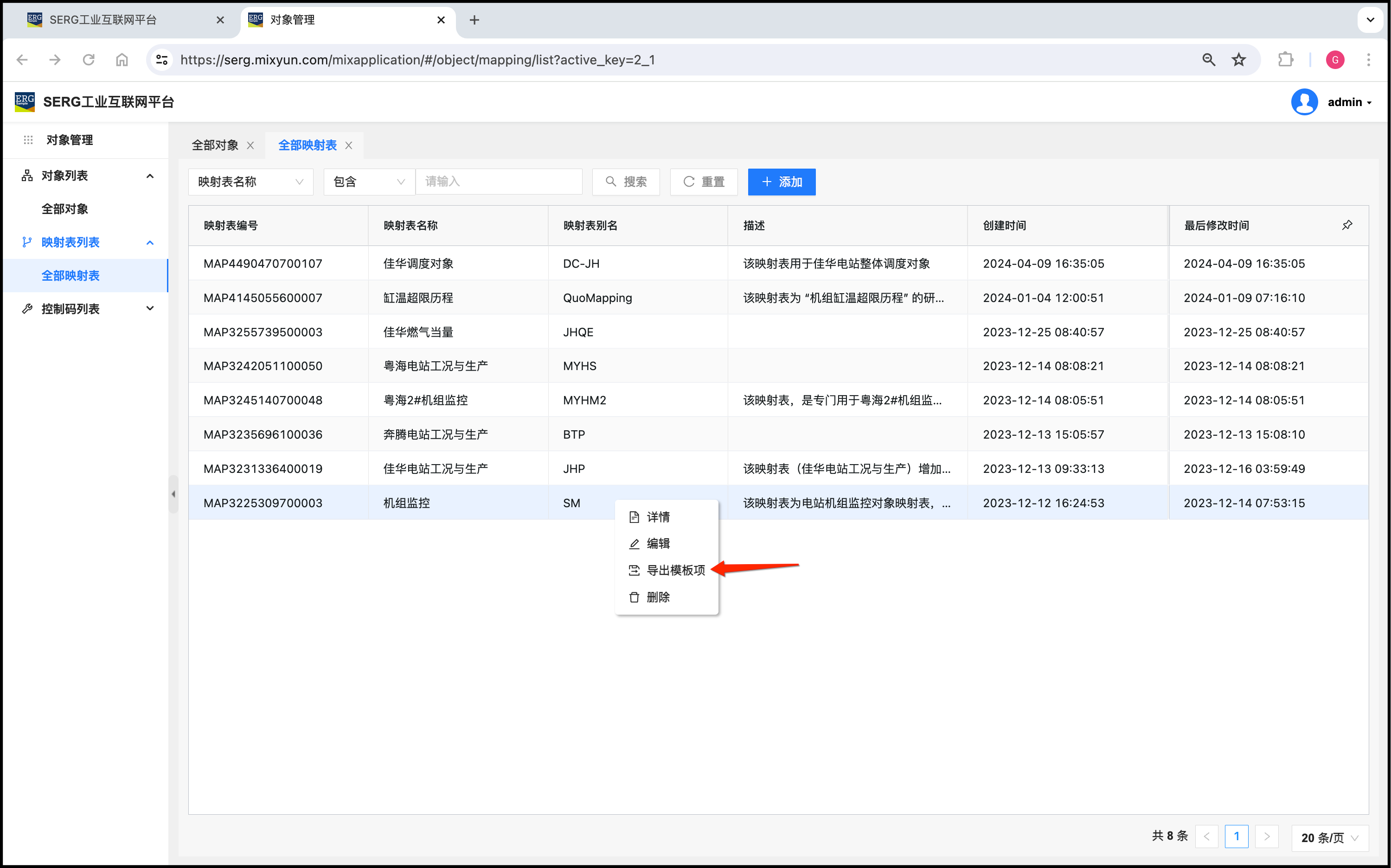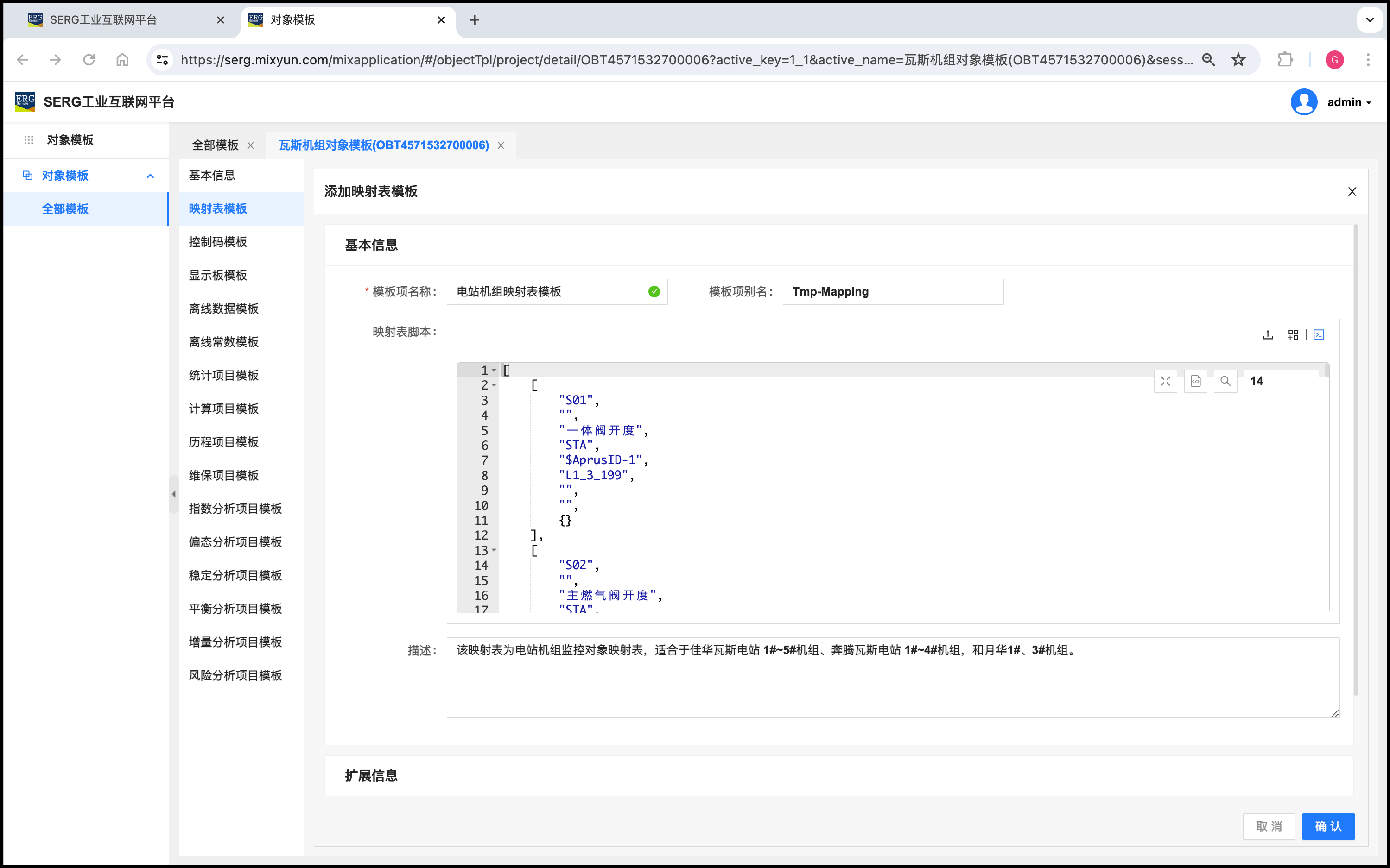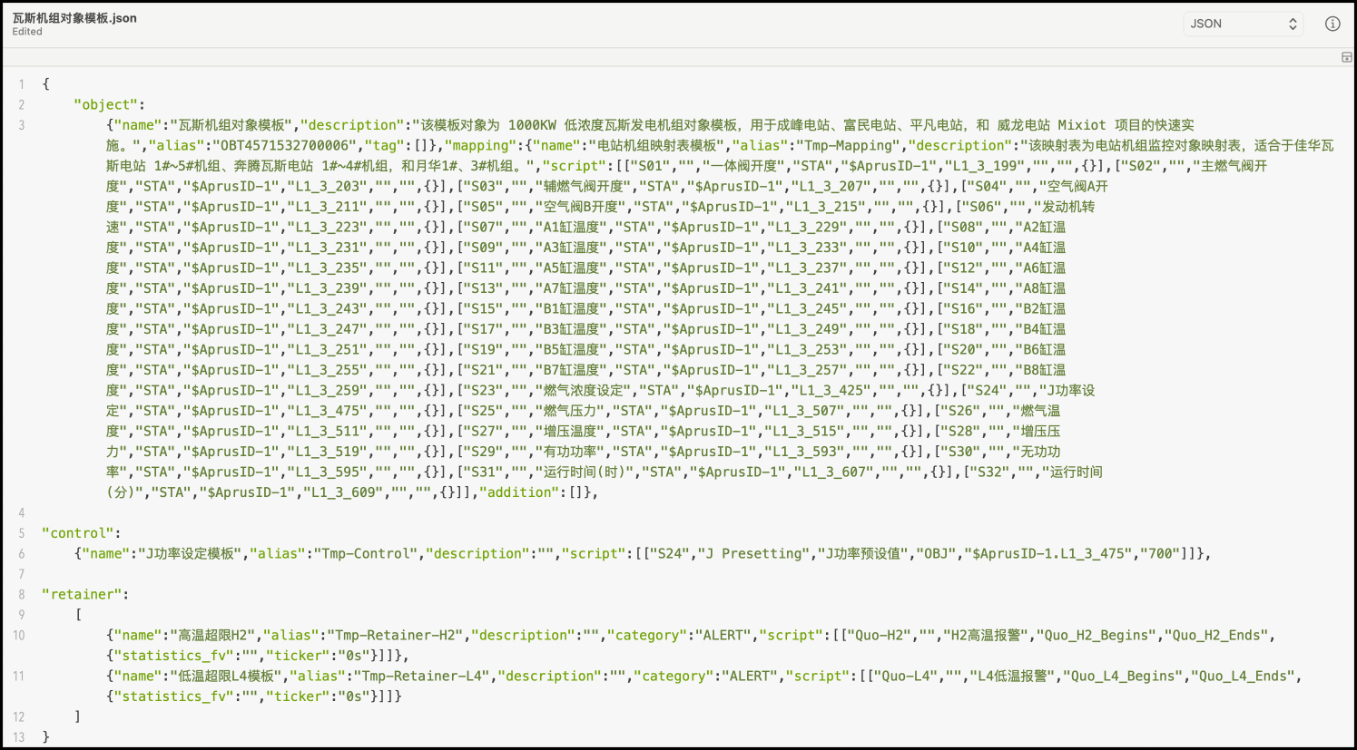 如果这样假设,假设SERG(三普能源集团)的姊妹公司 KERG(凯特能源集团)跟 SERG 一样也运营多个瓦斯电站,它有更好、更优的映射表,也愿意拿出来与SERG分享,这时候就可以导出这个映射表的模板项文件,把这个映射表模板项文件分享给SERG。SERG集团的MixIOT系统管理员拿到这个映射表的模板项文件,直接导入就行。