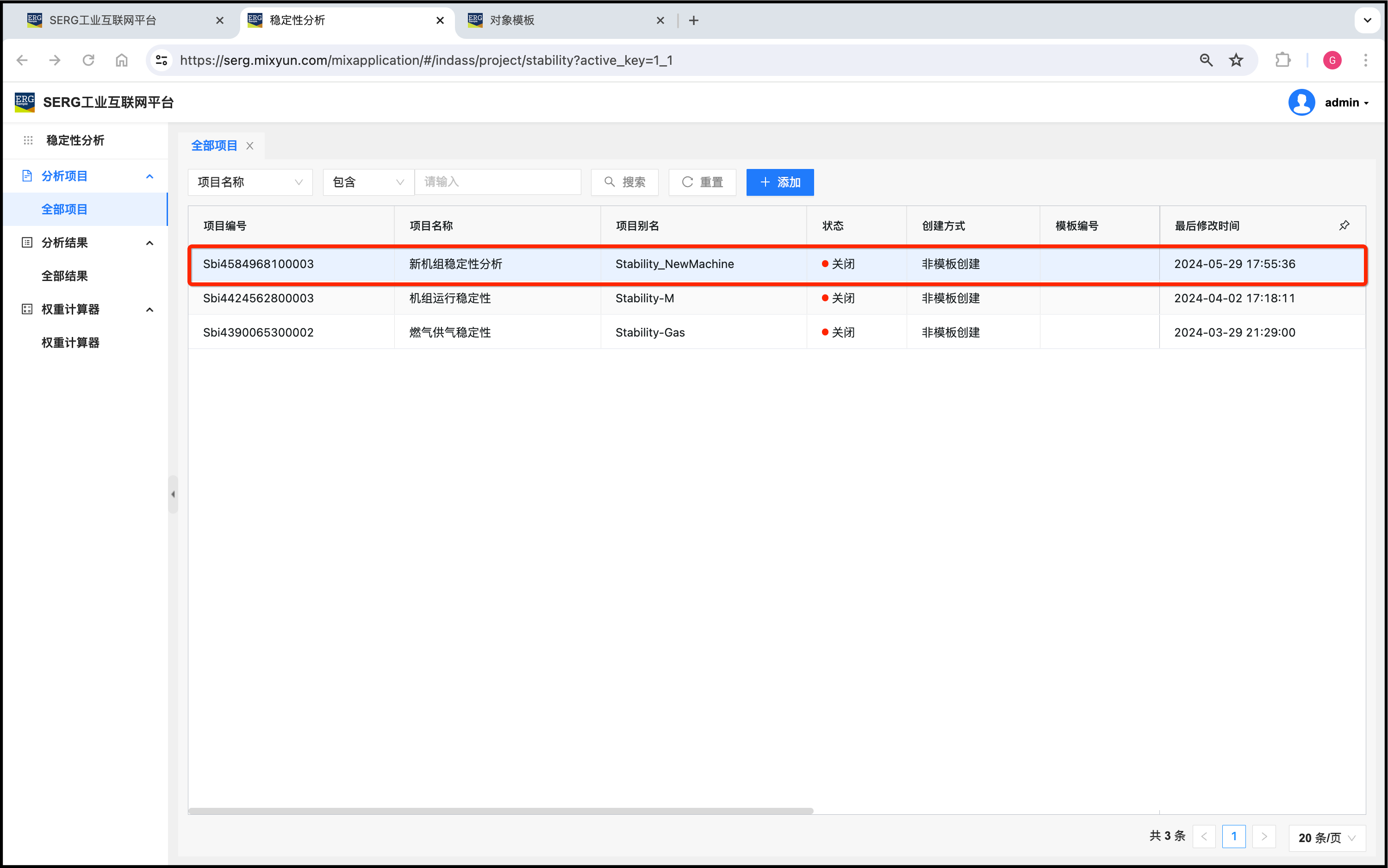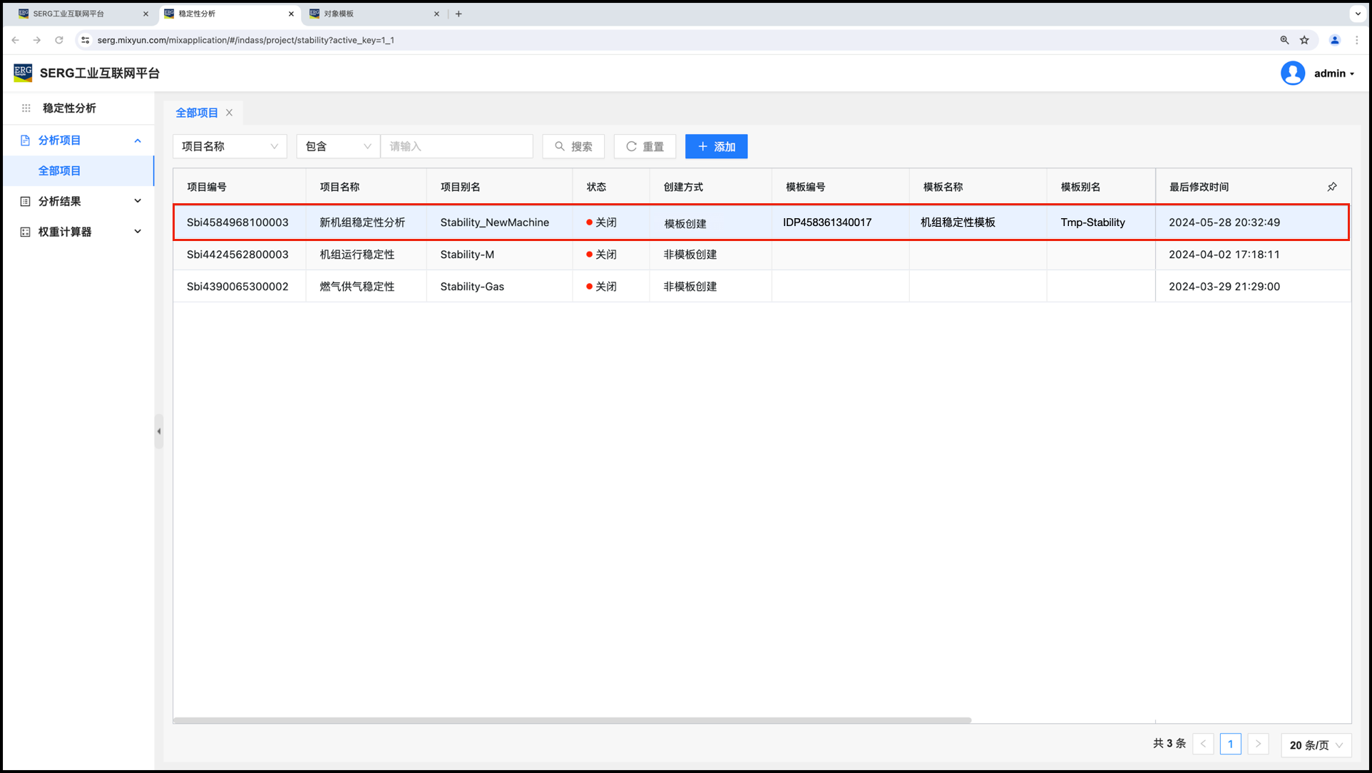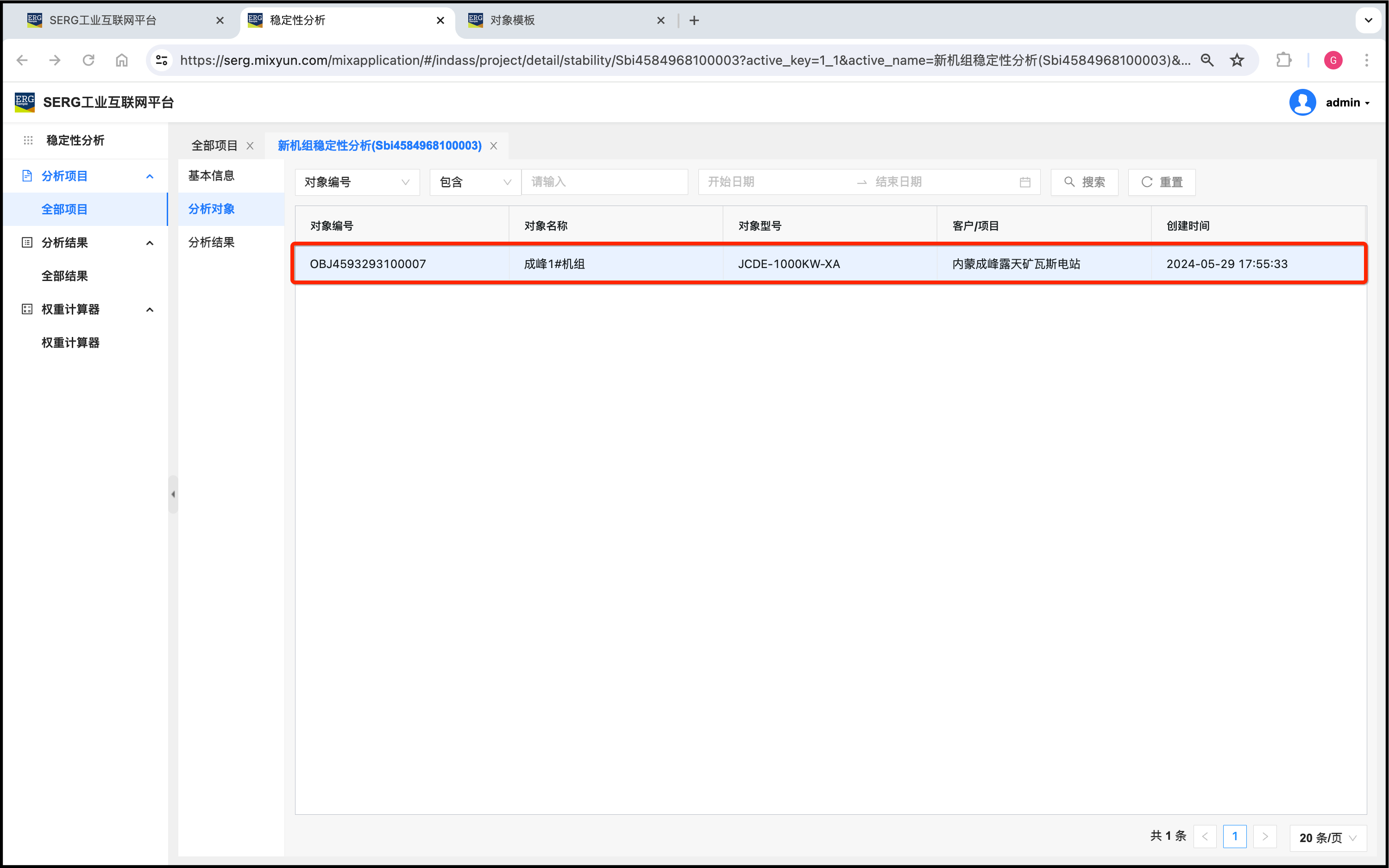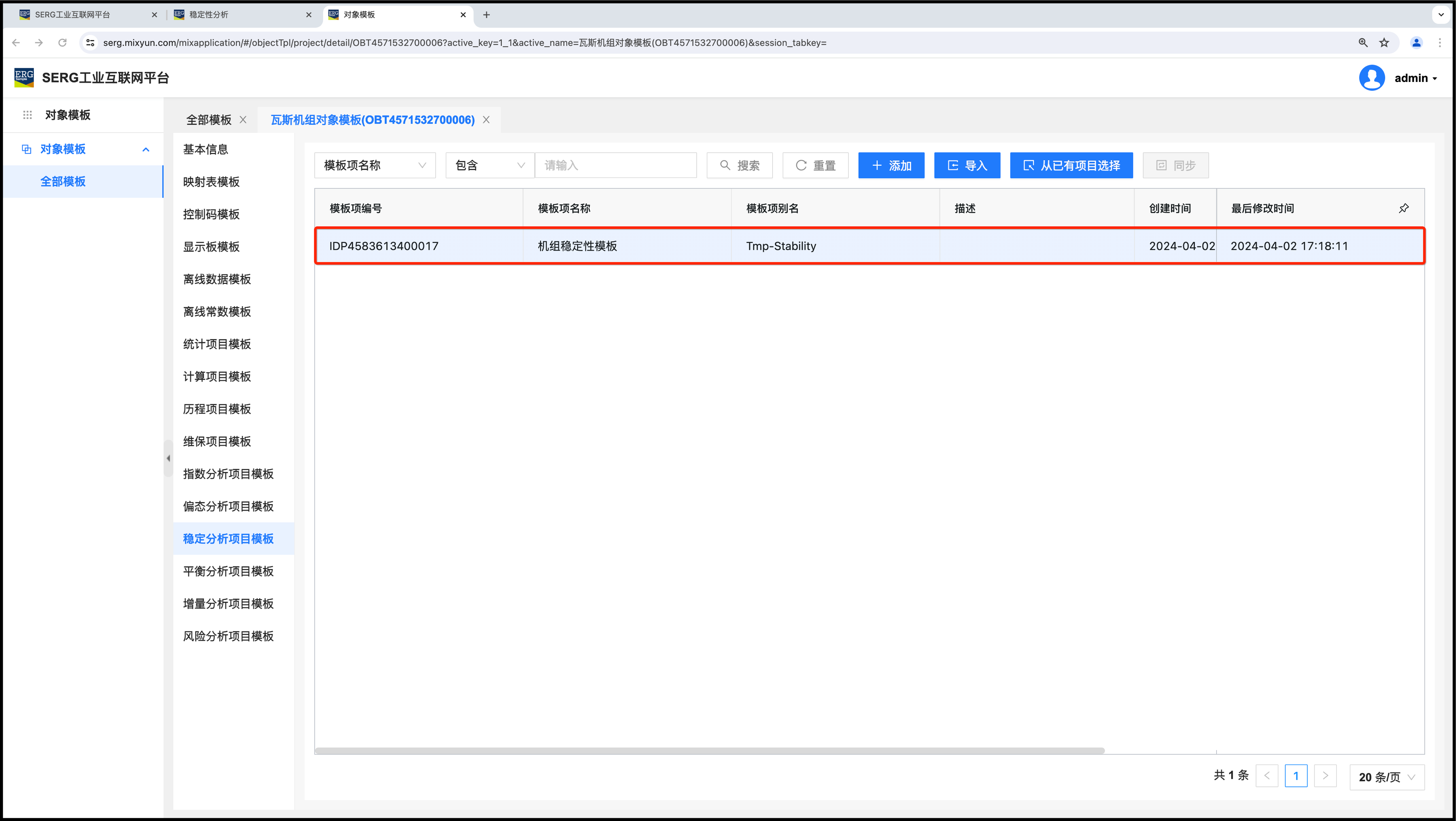 该稳定性分析项目实例的关联对象,也有用模板创建的对象: