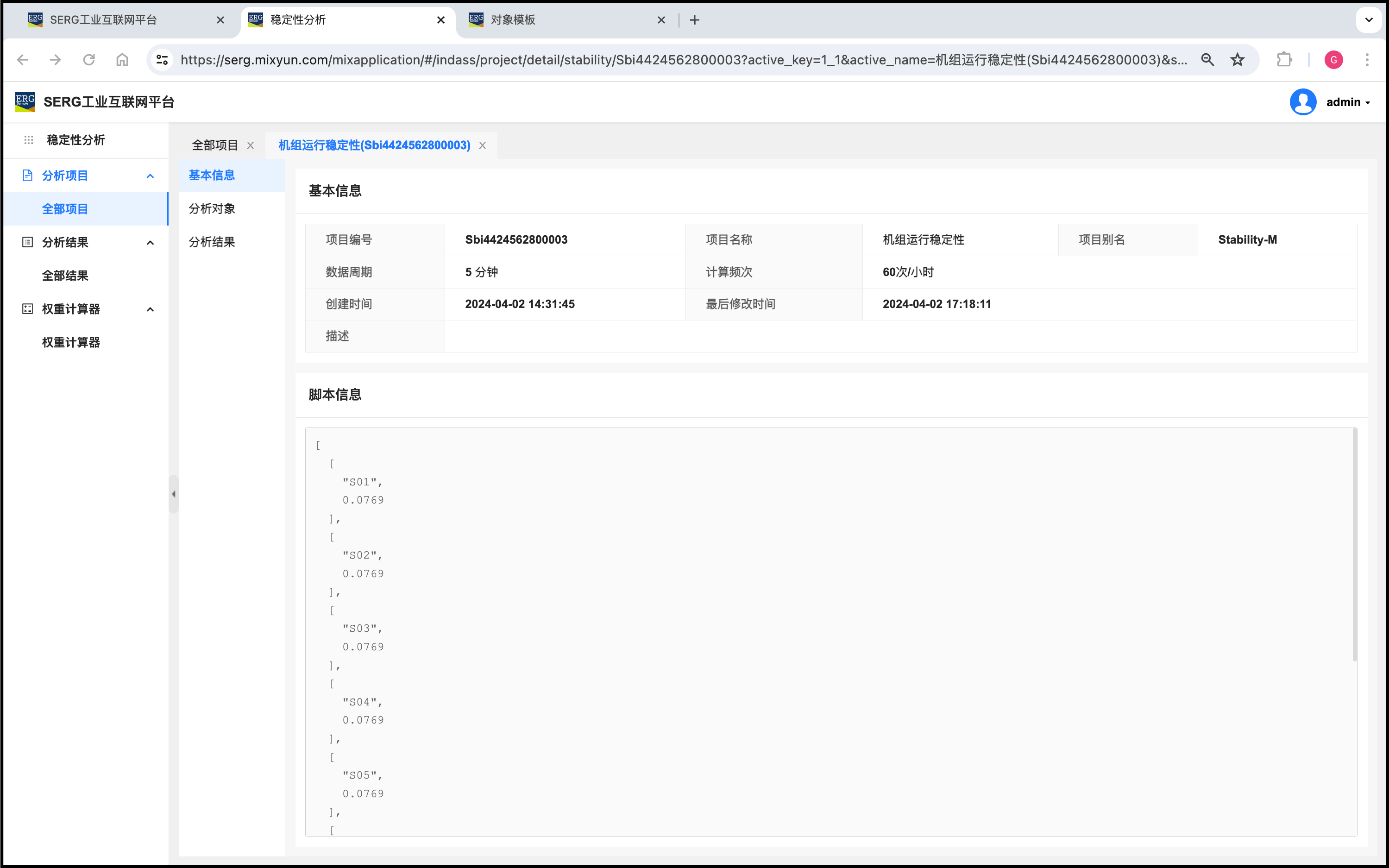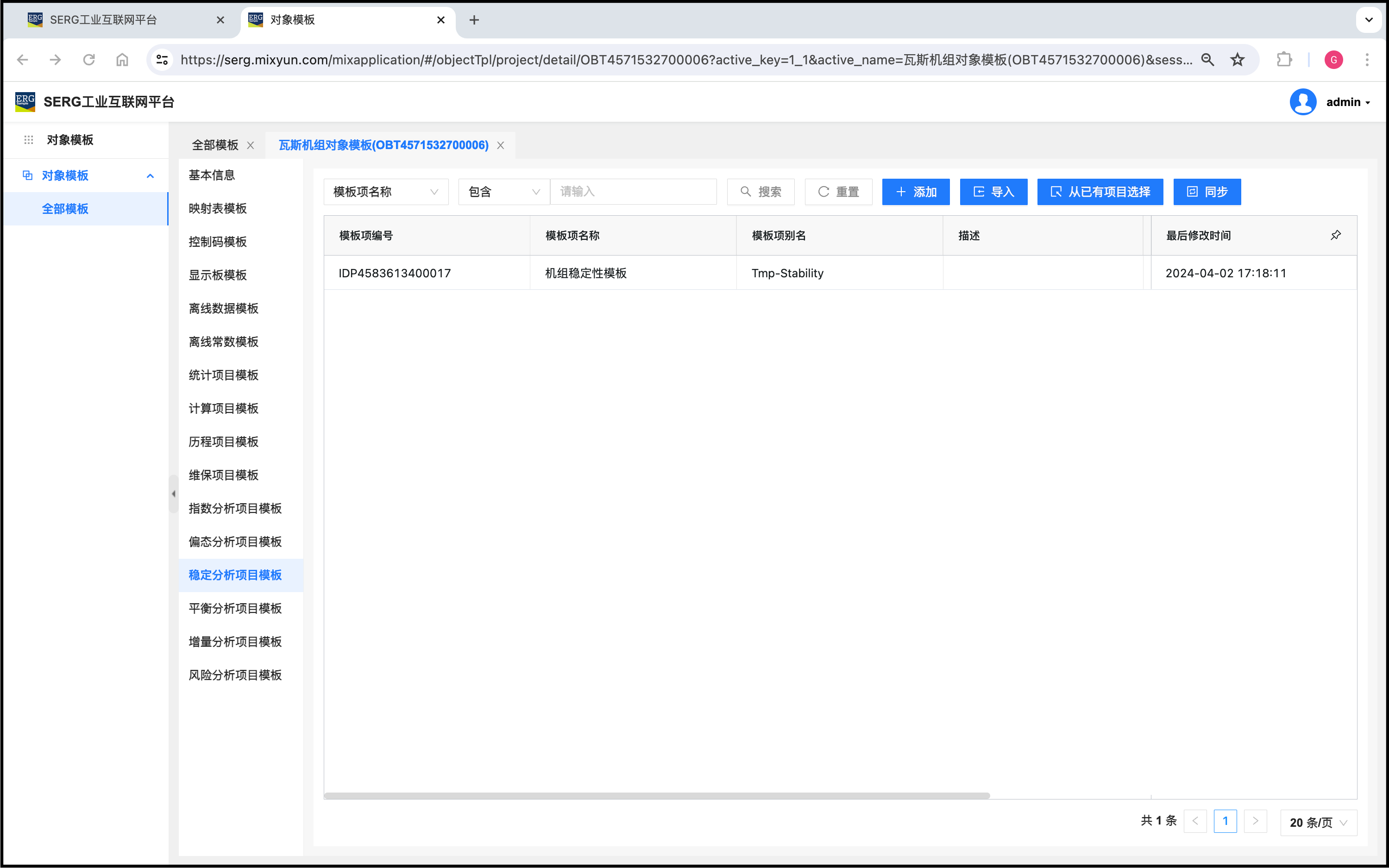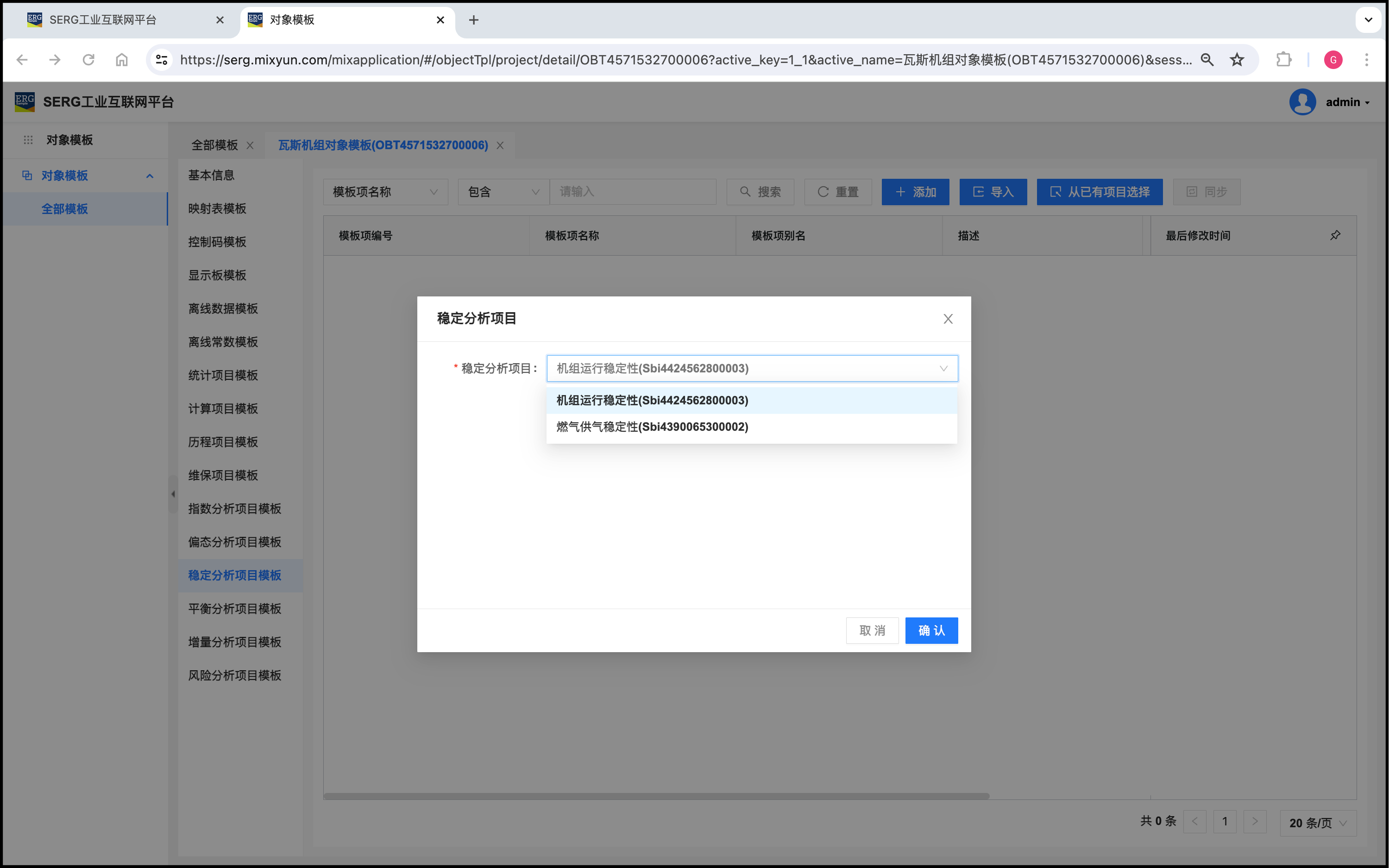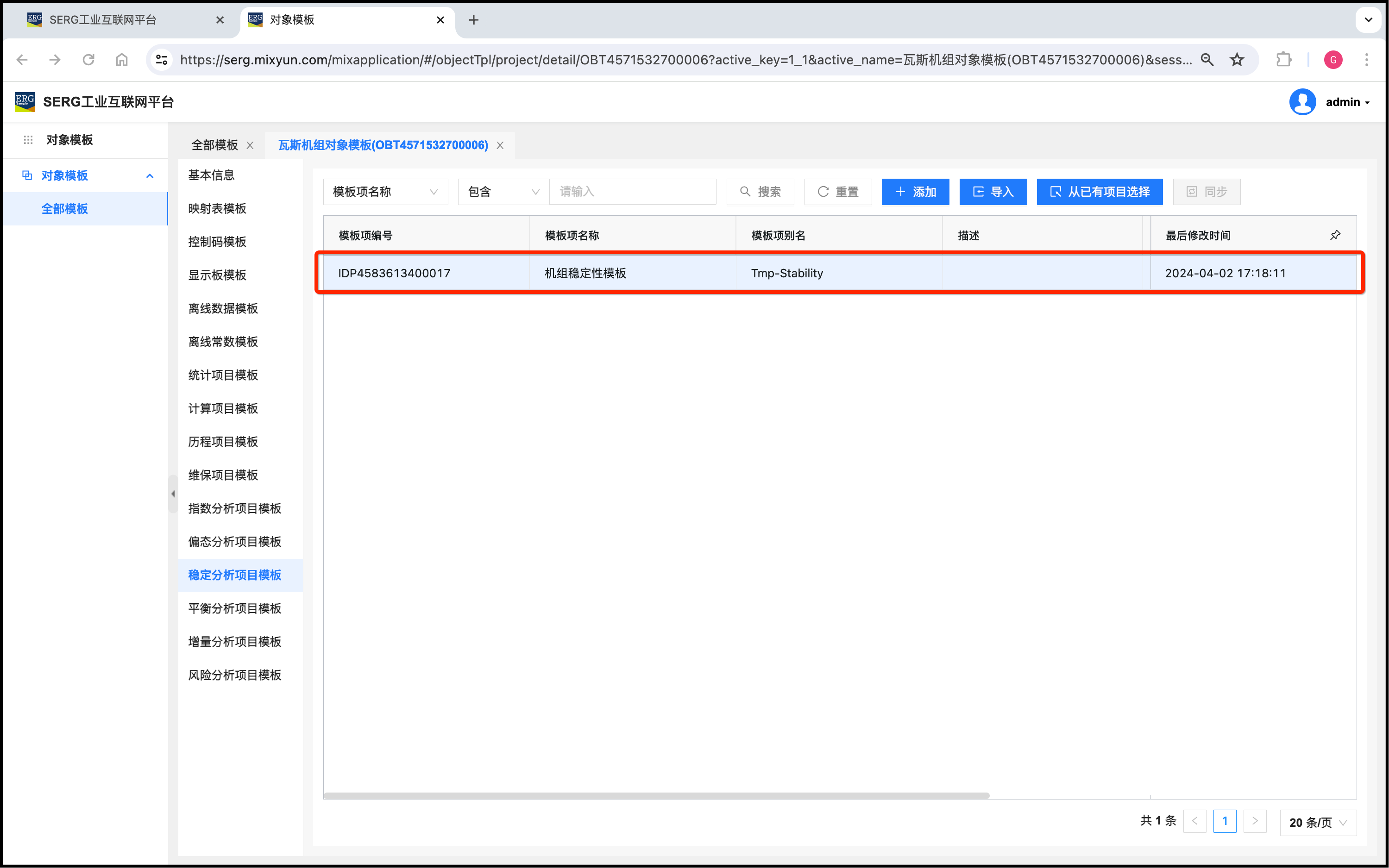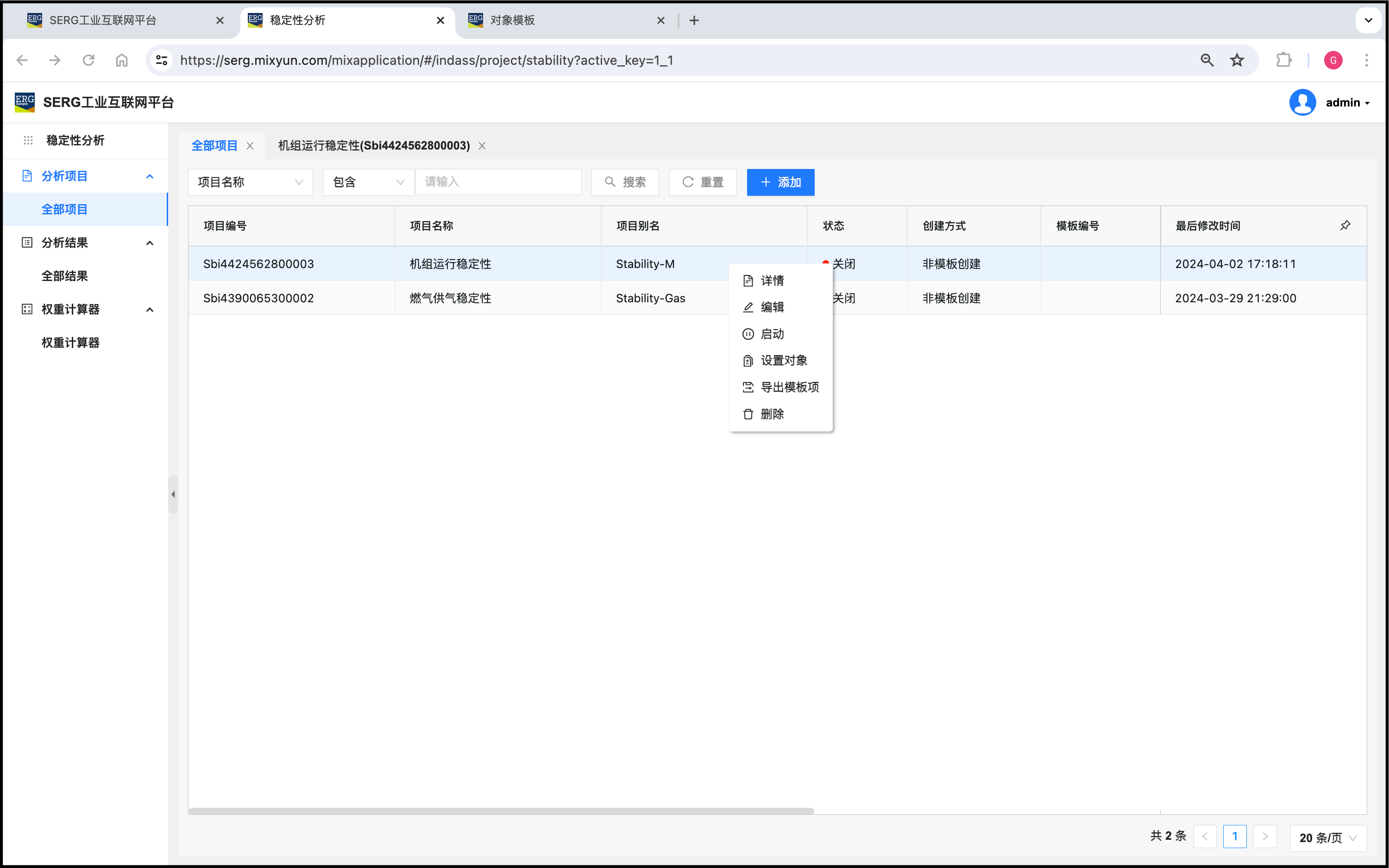 该稳定性分析项目实例的关联对象,也有用模板创建的对象: