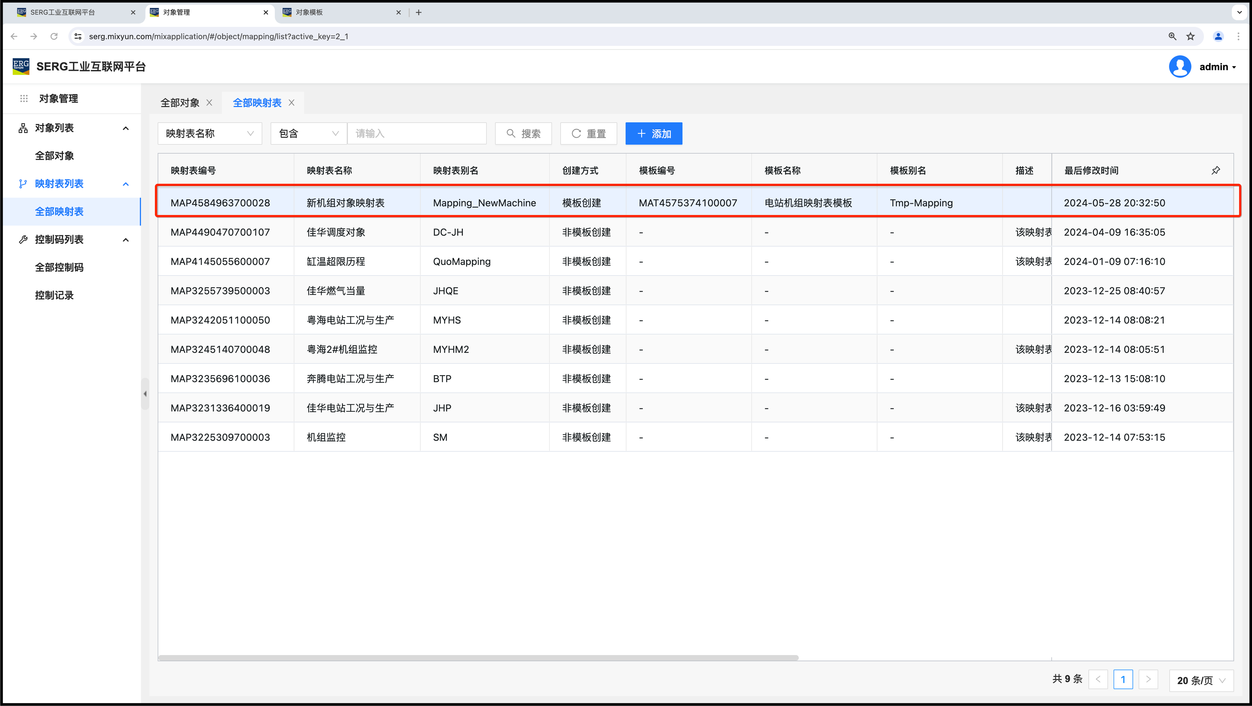 我们可以在 “对象管理”映 射表列表中看到,由对象模板创建的映射表实例: