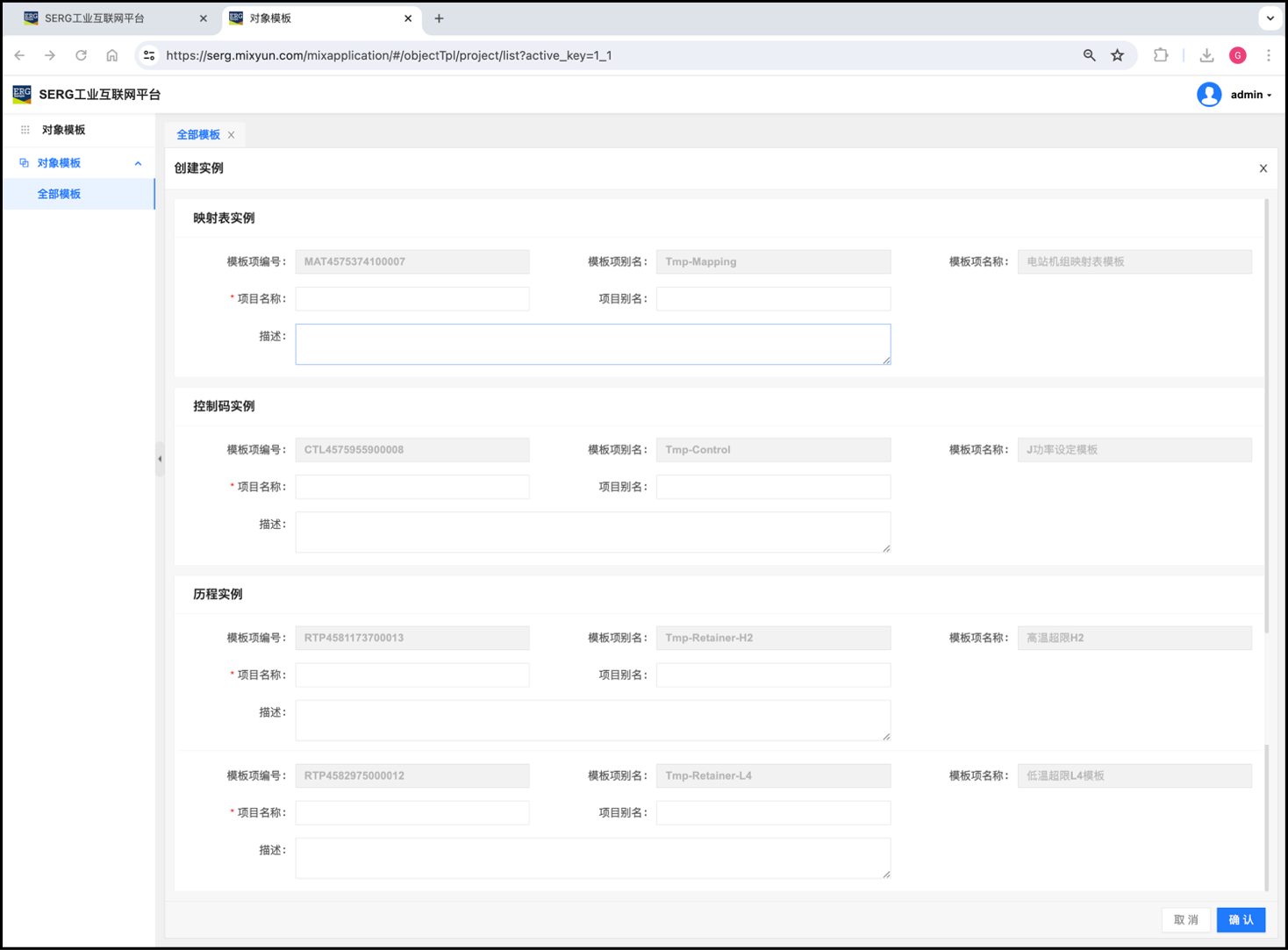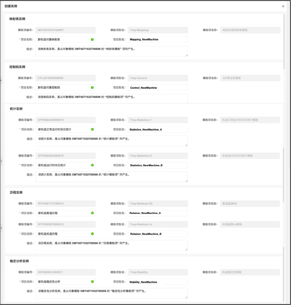 前面说了,创建模板实例的时候需要填写该对象模板实例的名称、别名和描述: