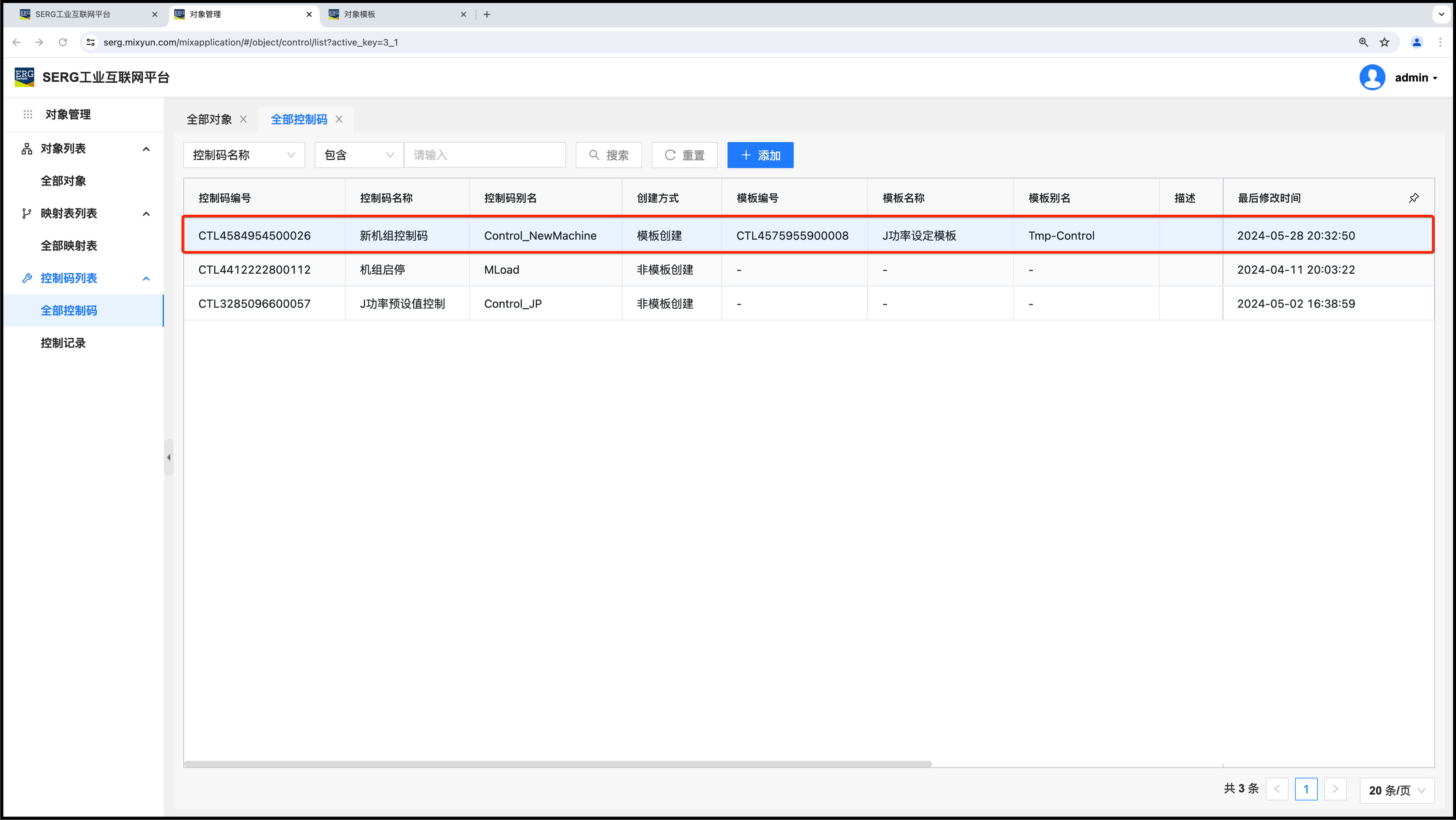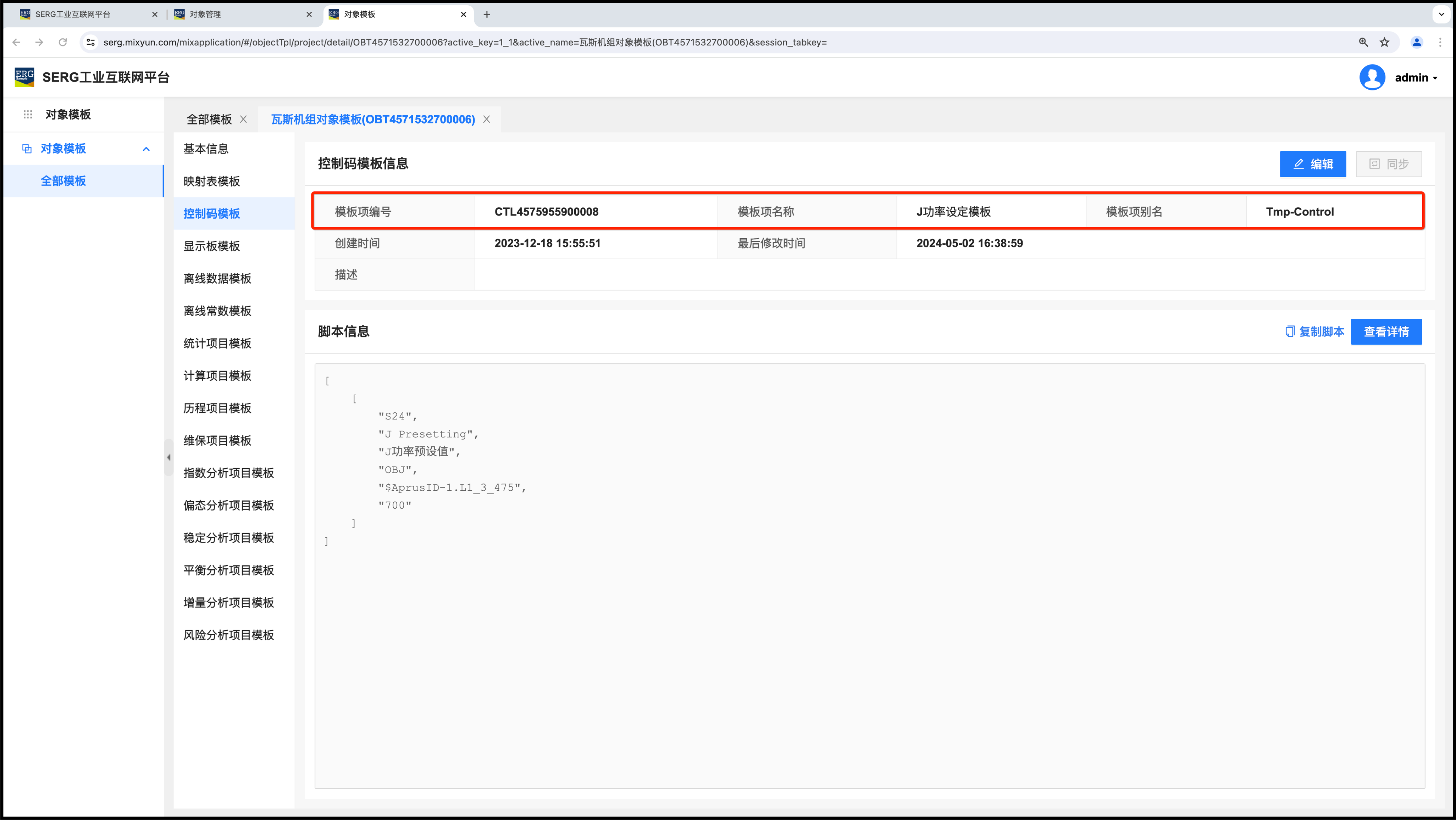 控制码模板项,对应的是 “对象管理” 应用中的 “控制码”。