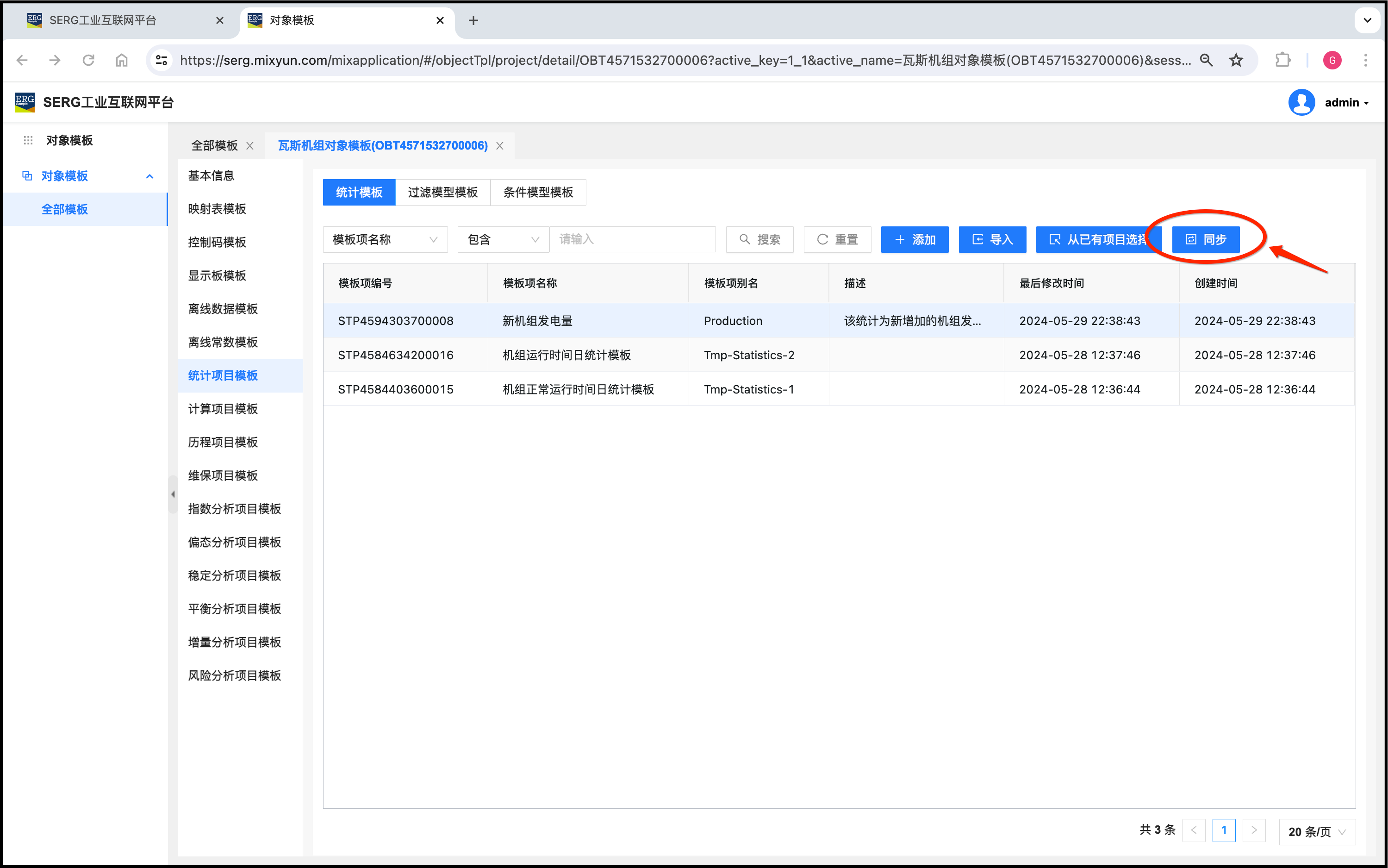 这个 “同步” 操作就变成了可用。如果这个时候进行同步操作,该操作就会去创建一个新的统计项目实例。