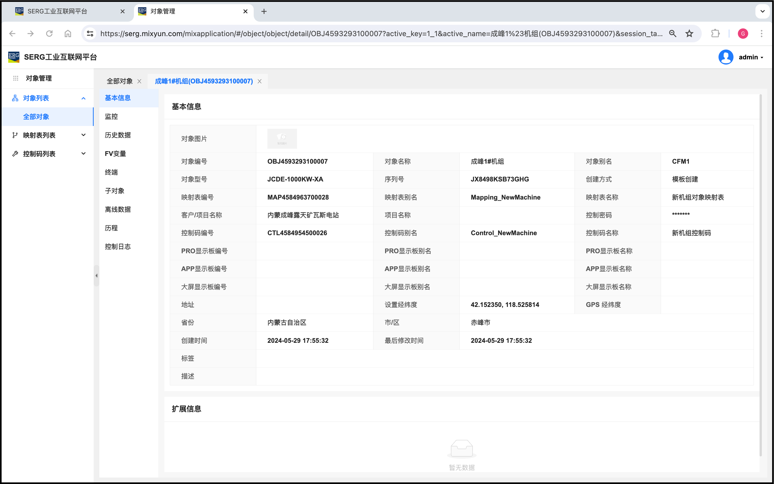 这是因为按 MixIOT 体系的规则,每个对象只能对应一个 “映射表” 和一个 “控制码”。
