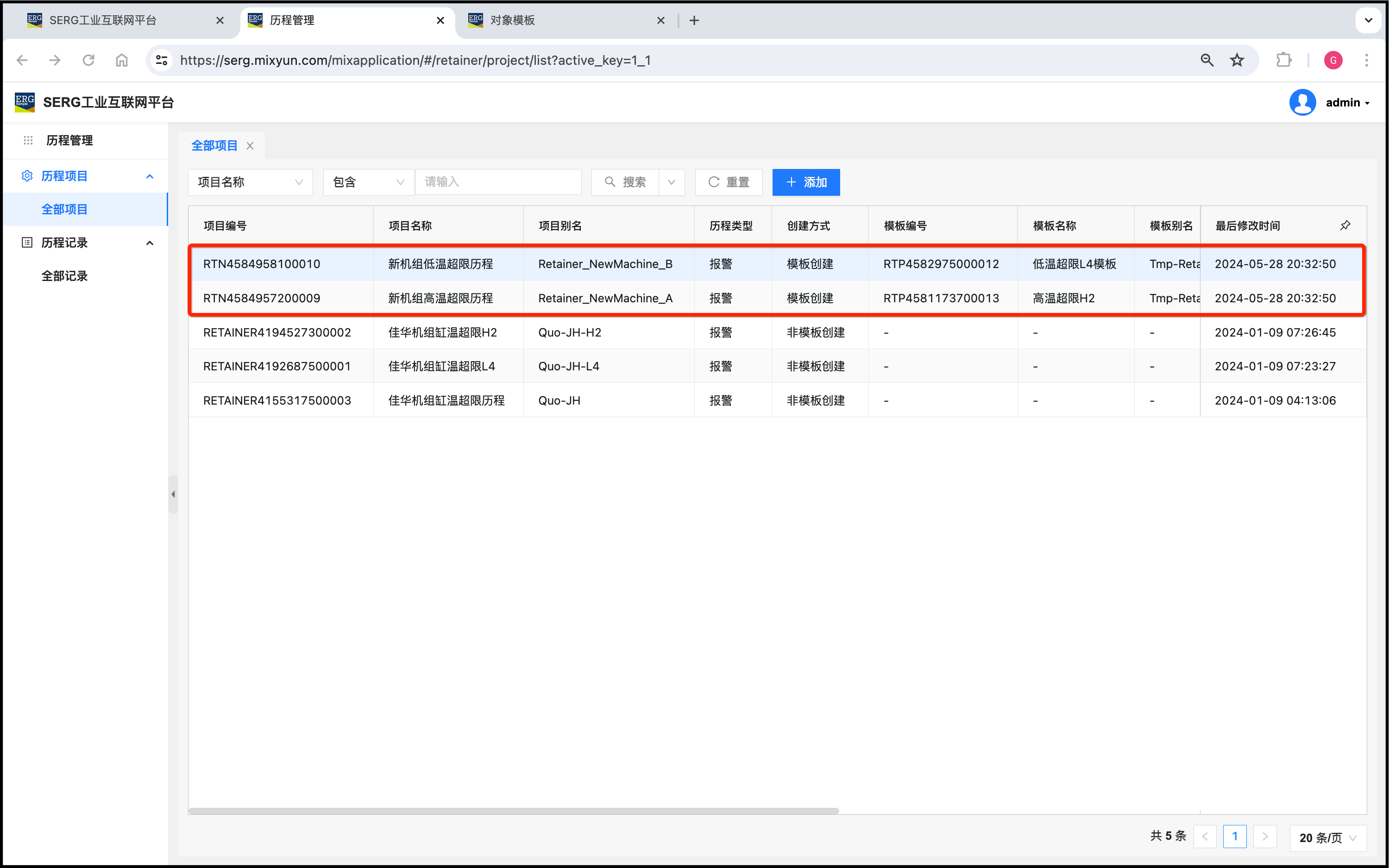 “历程模板项” 跟前面两个模板项(“映射表模板项”和“控制码模板项”)都是单模板项不一样,这个模板项是多模板项。