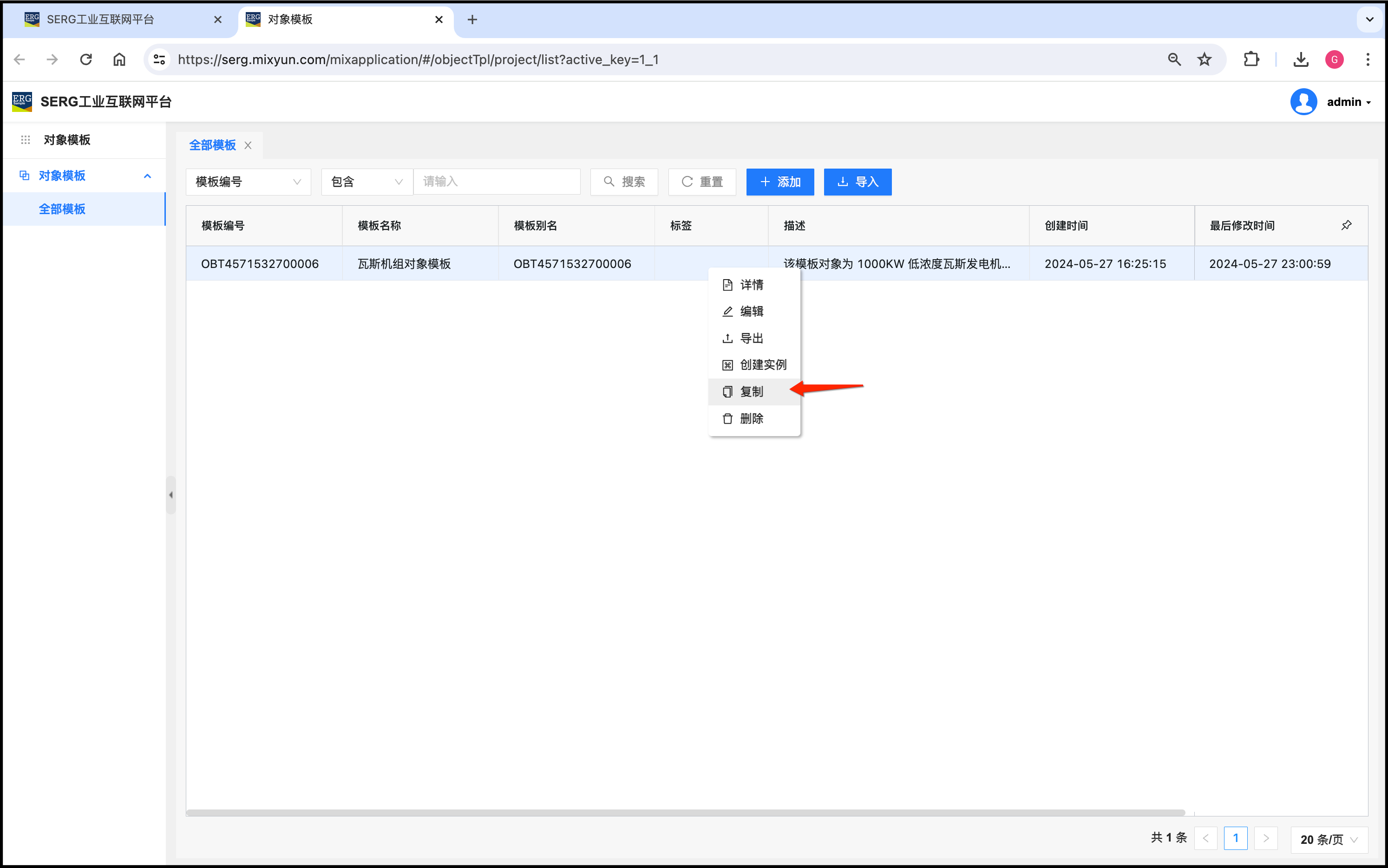 对象模板的操作,除了我们熟悉的“详情”、“编辑”和“删除”,还有其他的几个内容: