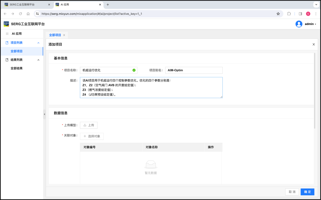 跟 MixIOT Indass 的其他应用一样,要创建 AI项目,首先当然要知道这个项目是做什么的。但跟 Indass 应用不一样的是,AI项目的创建,可能是一个非常复杂的过程,原因就是每个项目都需要有对应项目的AI模型(HDF5模型)。