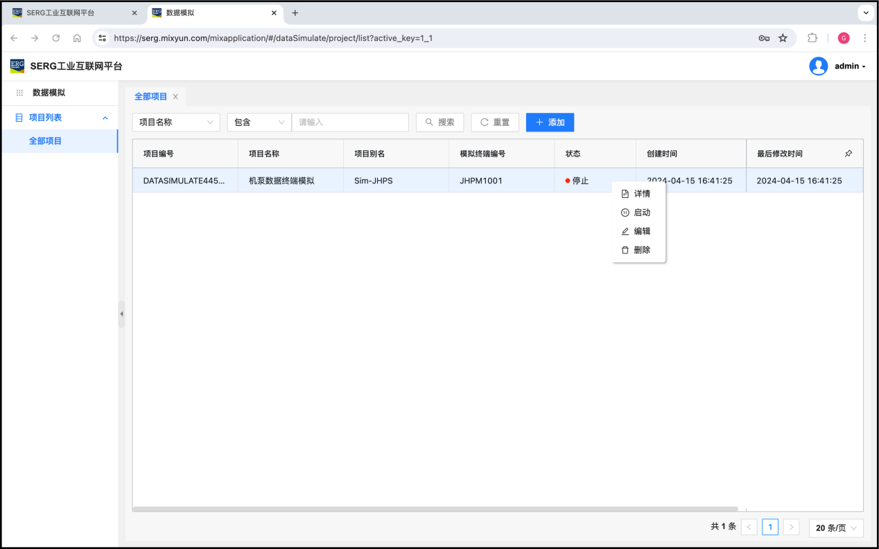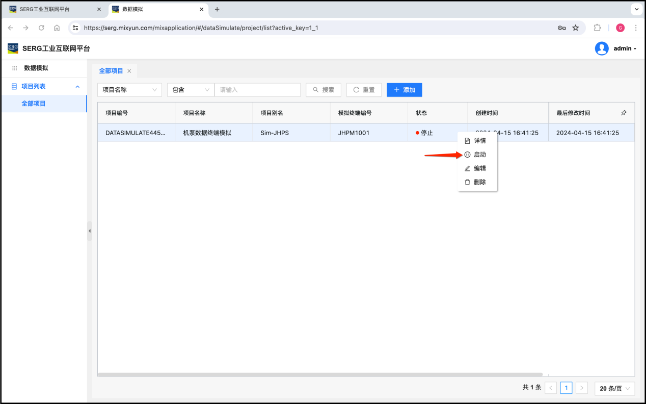 这个时候,可以在操作菜单上启动这个数据模拟项目。