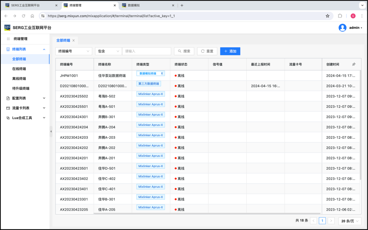 一旦完成了数据模拟终端所对应的 “真实数据终端” 在 “终端管理” 里面的注册,这个数据终端才能算真正地完成了各项准备,既对接到了设备,也做好了各项登记和配置。