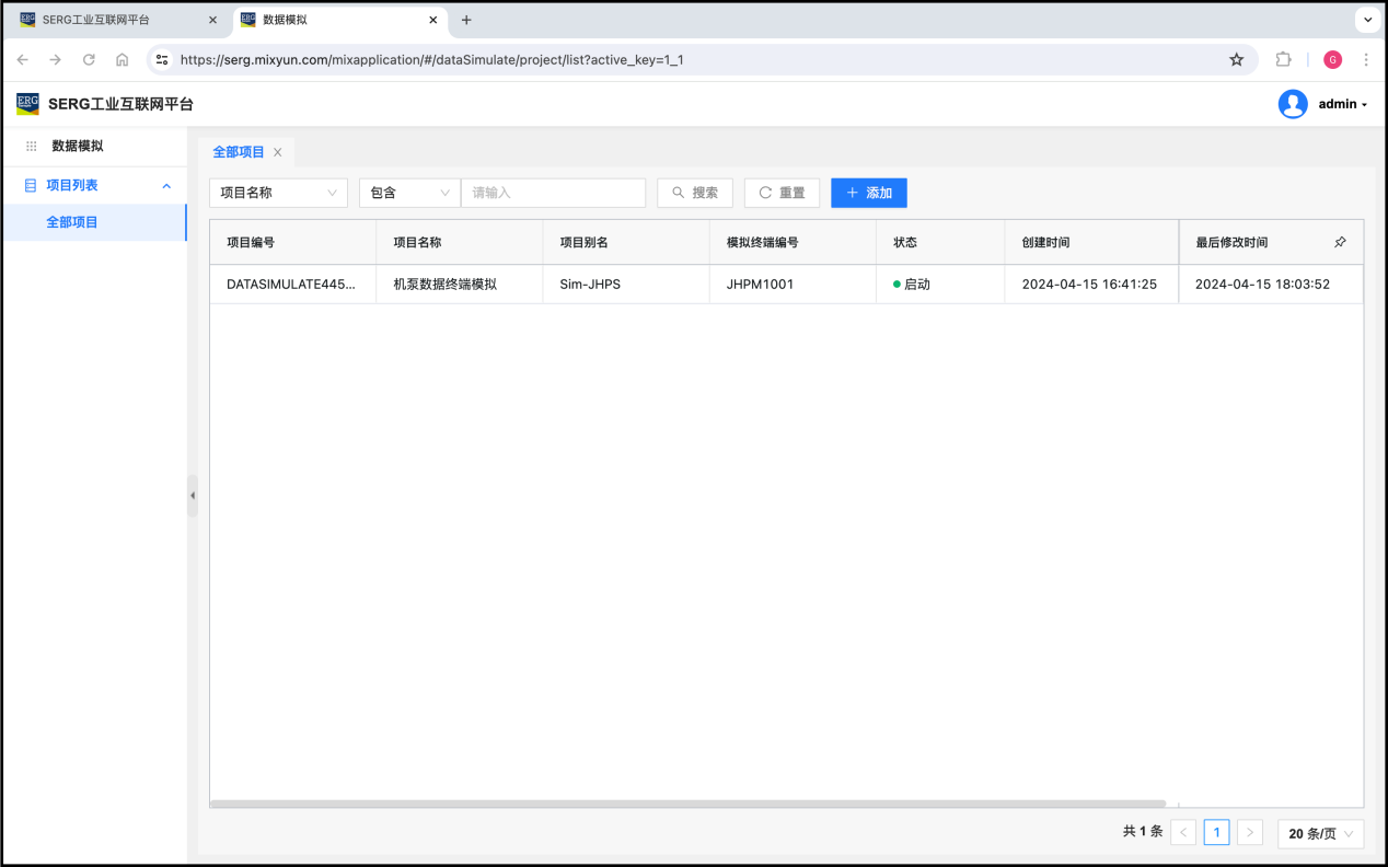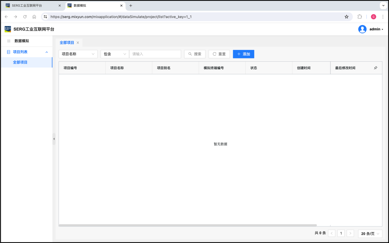 “数据模拟” 应用只有一个菜单板块,就是数据模型项目。