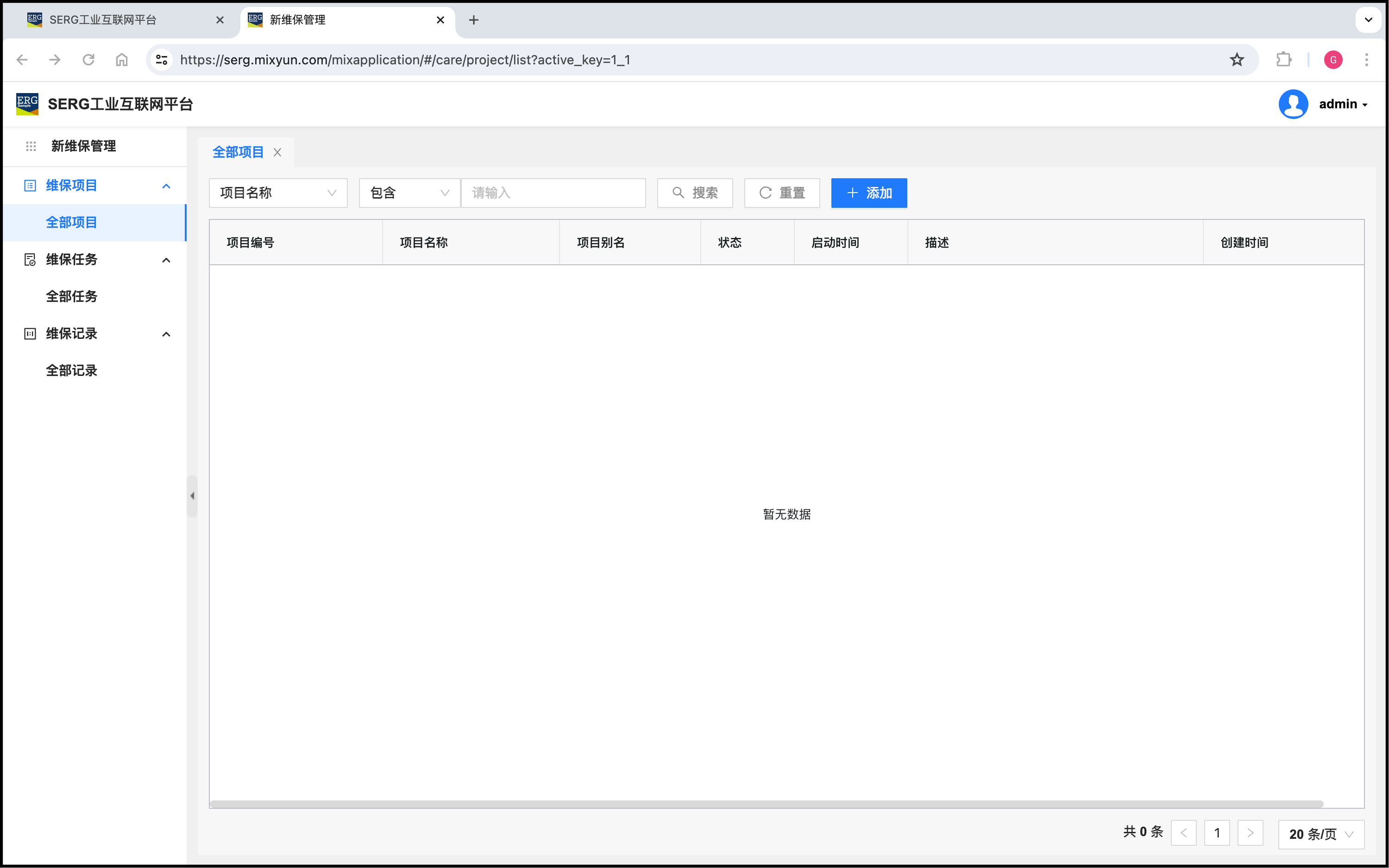 • 根据需要,创建“维保项目”;