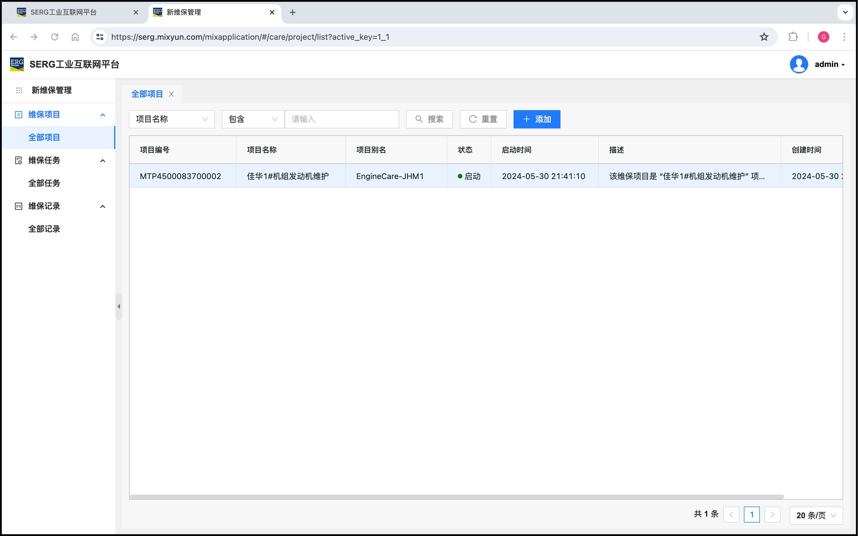 确定保存后,在“维保项目”列表中可以看到创建的这个维保项目: