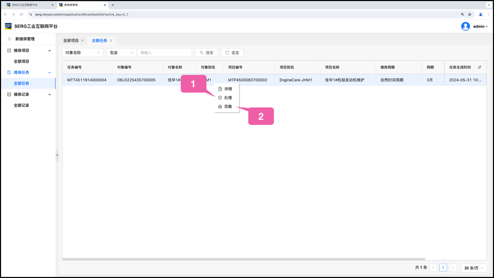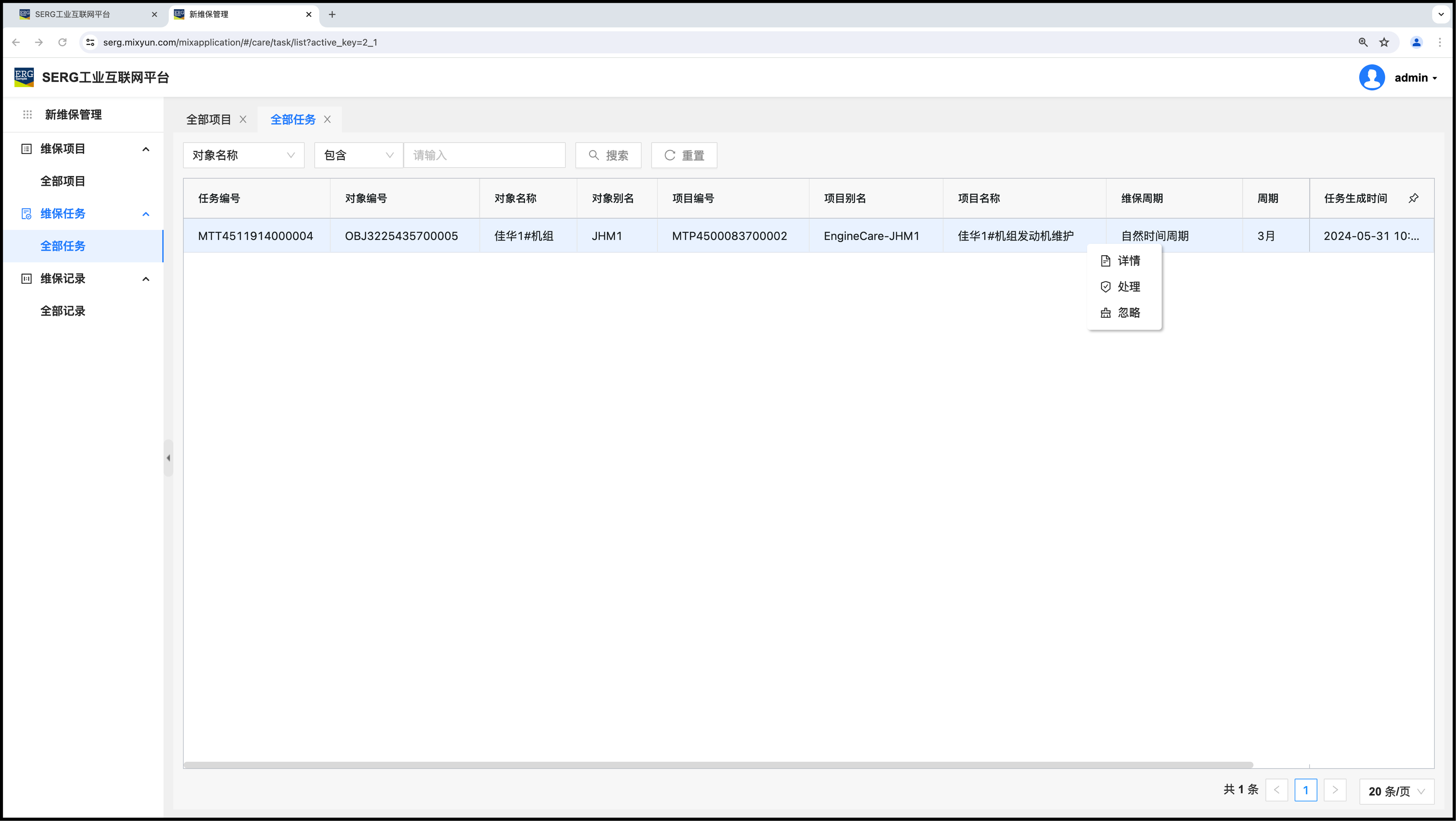 换言之,只要在 “维保任务–全部任务” 里面看到还有记录的存在,就说明这还有一件事有待落实或者有待了结。