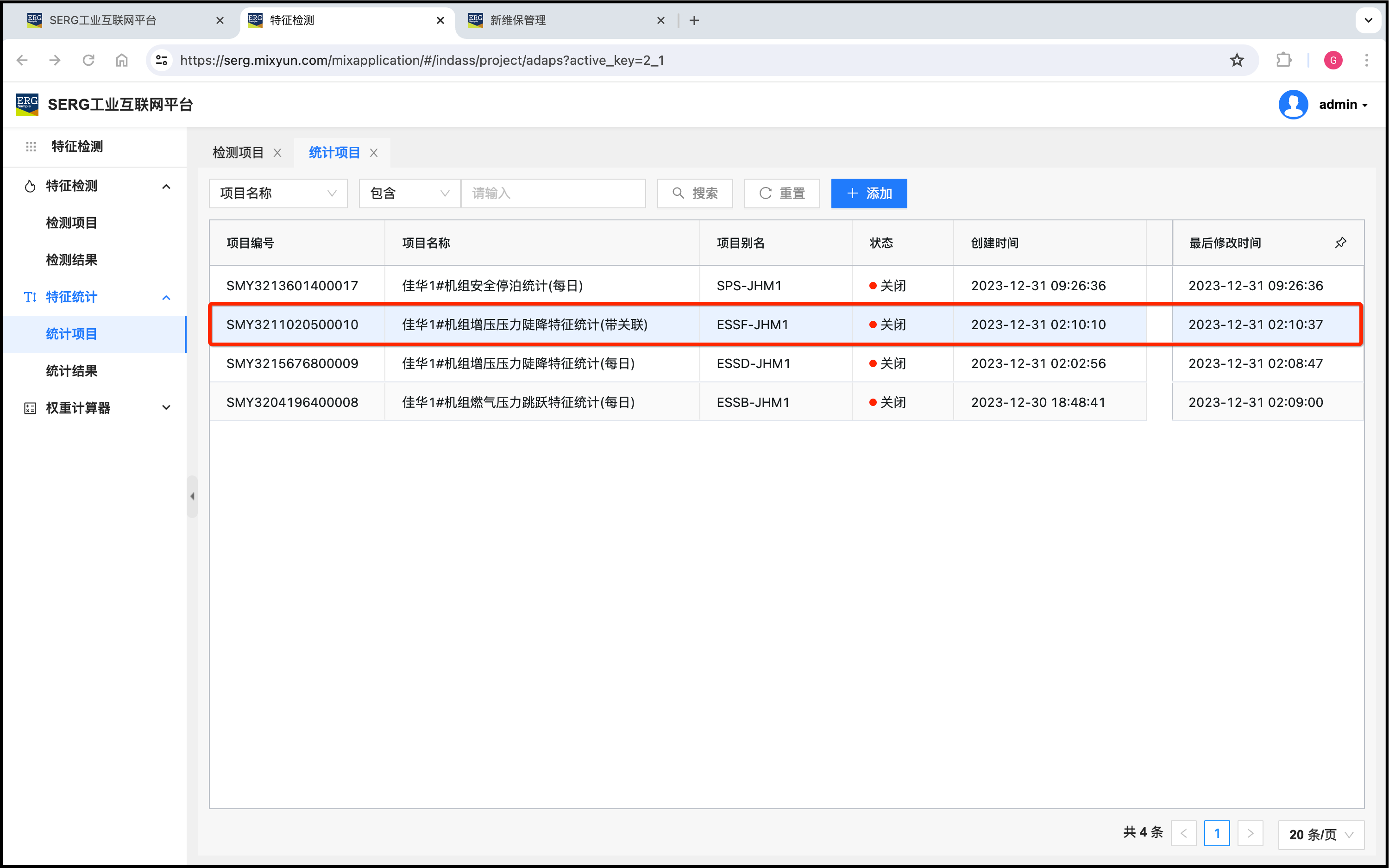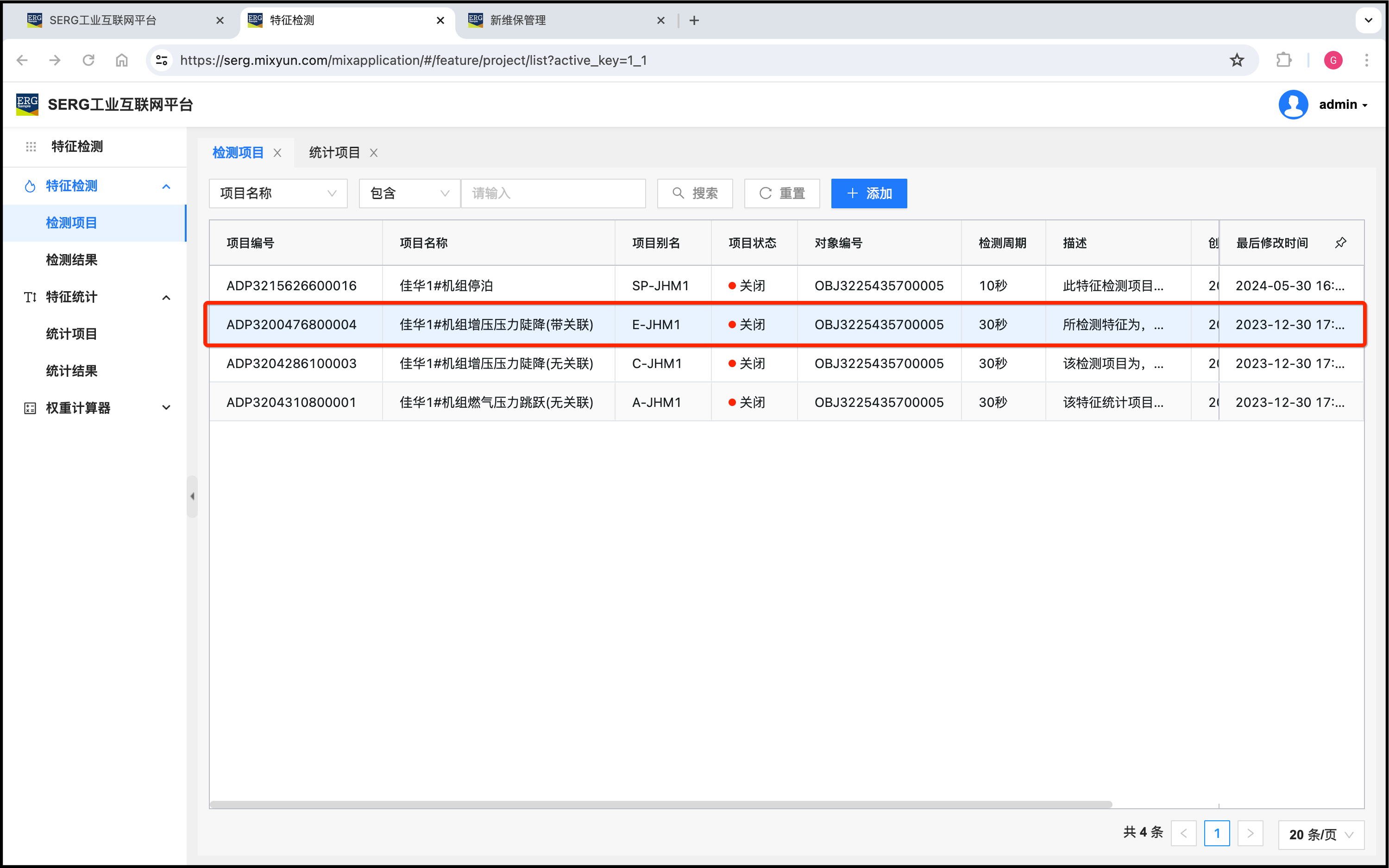 有了这些特征检查和特征统计,就可以为佳华1#机组创建维保项目: