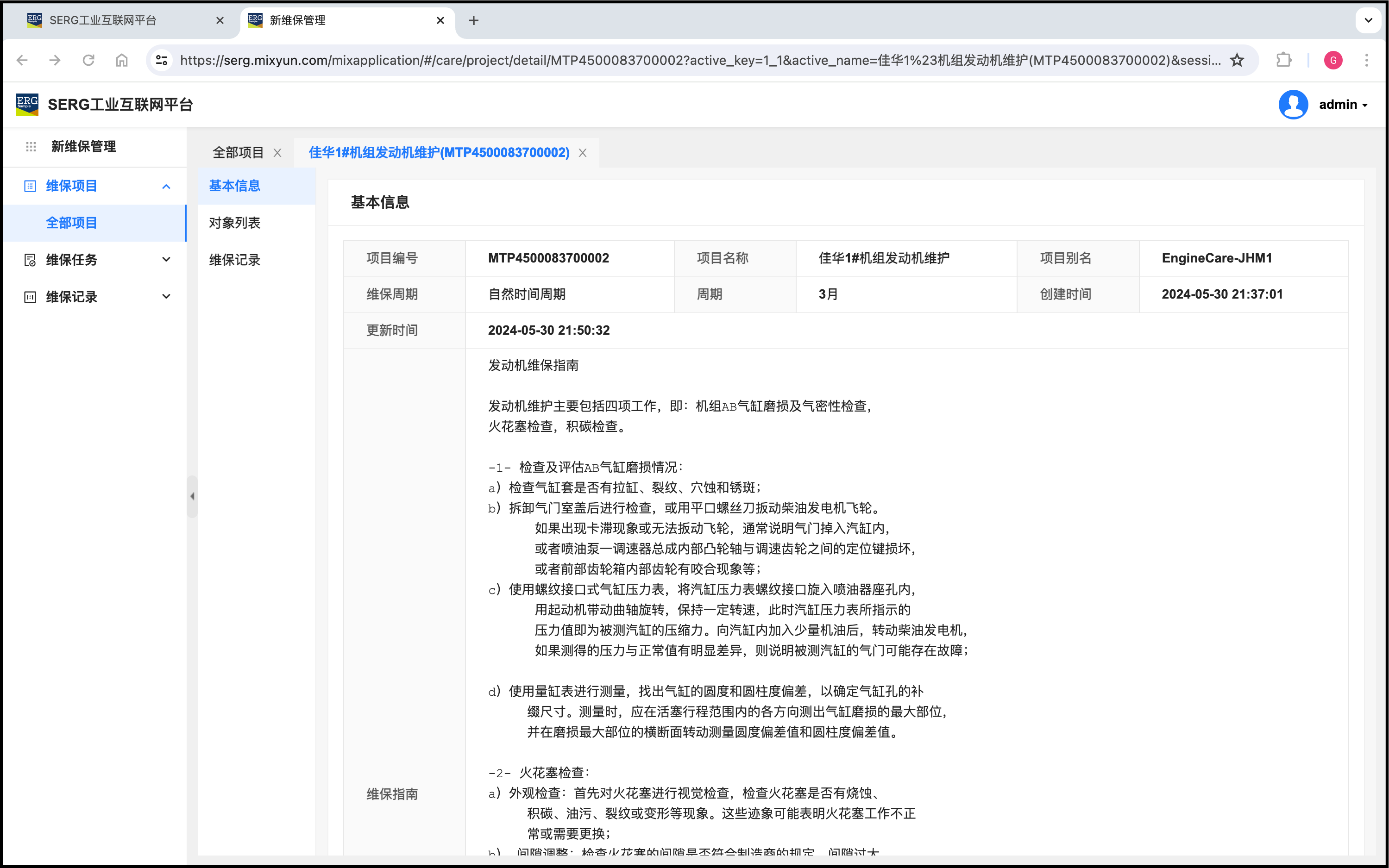 同样,可以为其他机组创建维保项目。