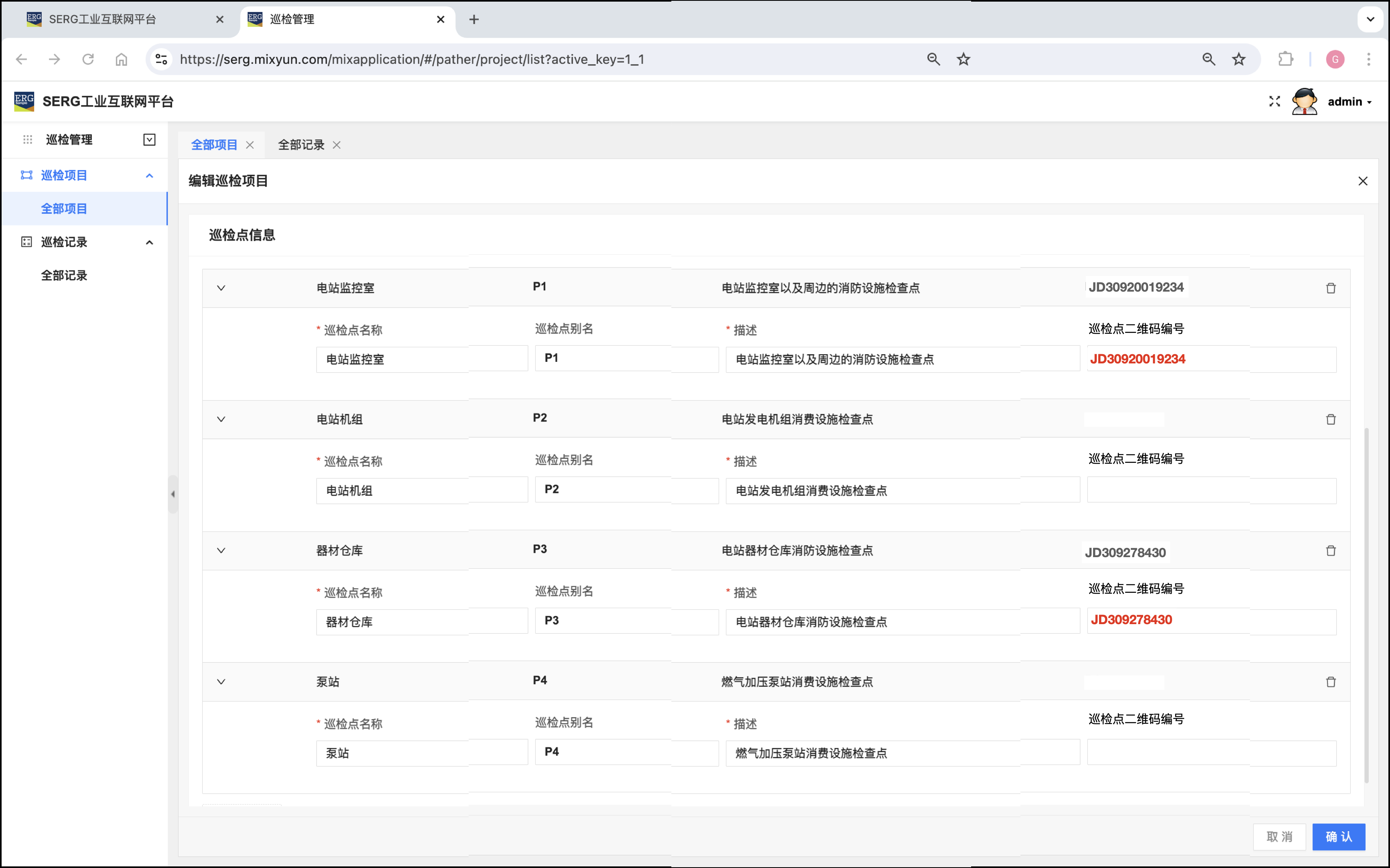 绑定的方法很简单,就是把巡检点二维码装置的编号输入就行: