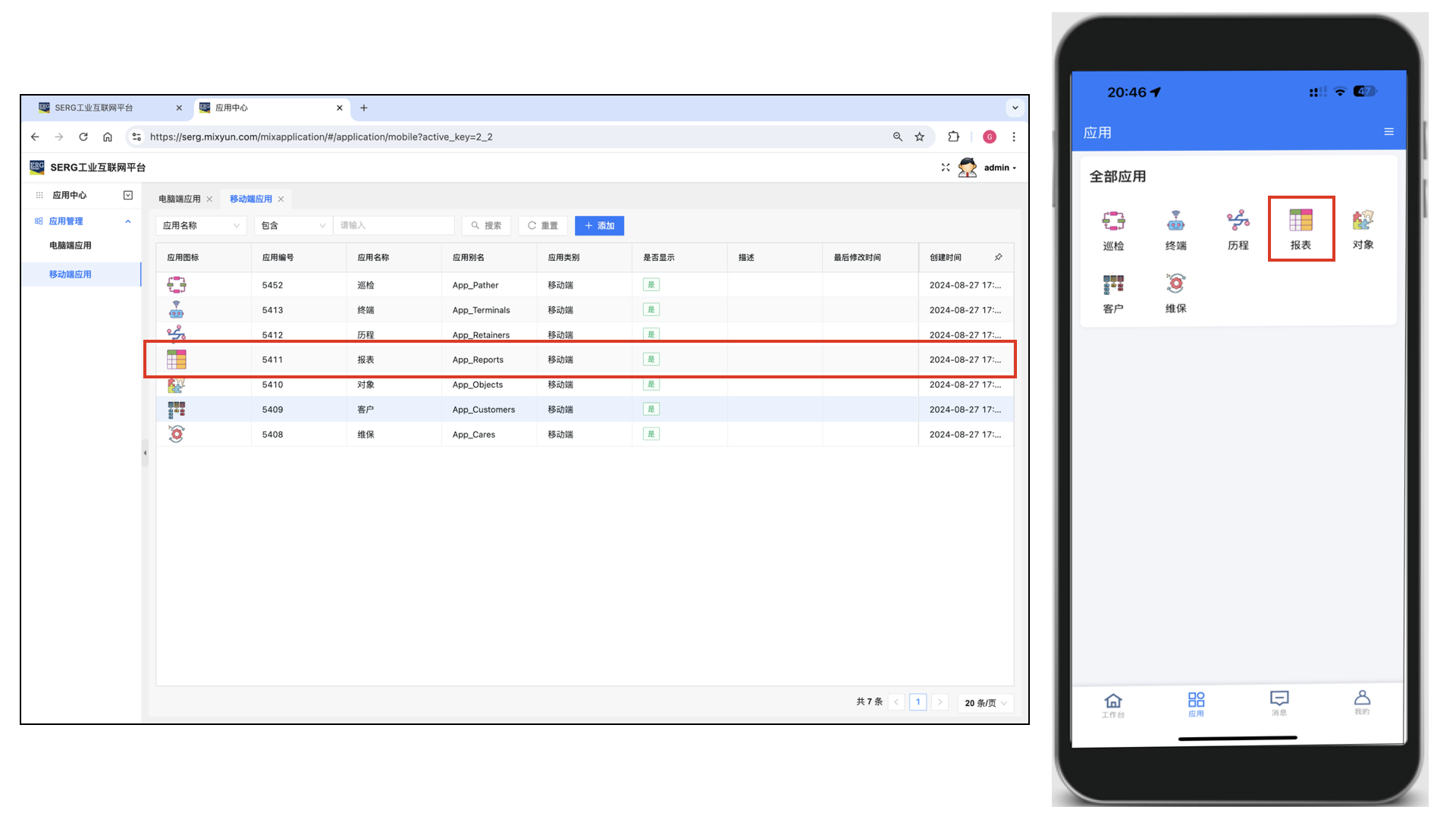 Mixiot App “报表” 应用,是对应 PC端 “自动报表” 的应用: