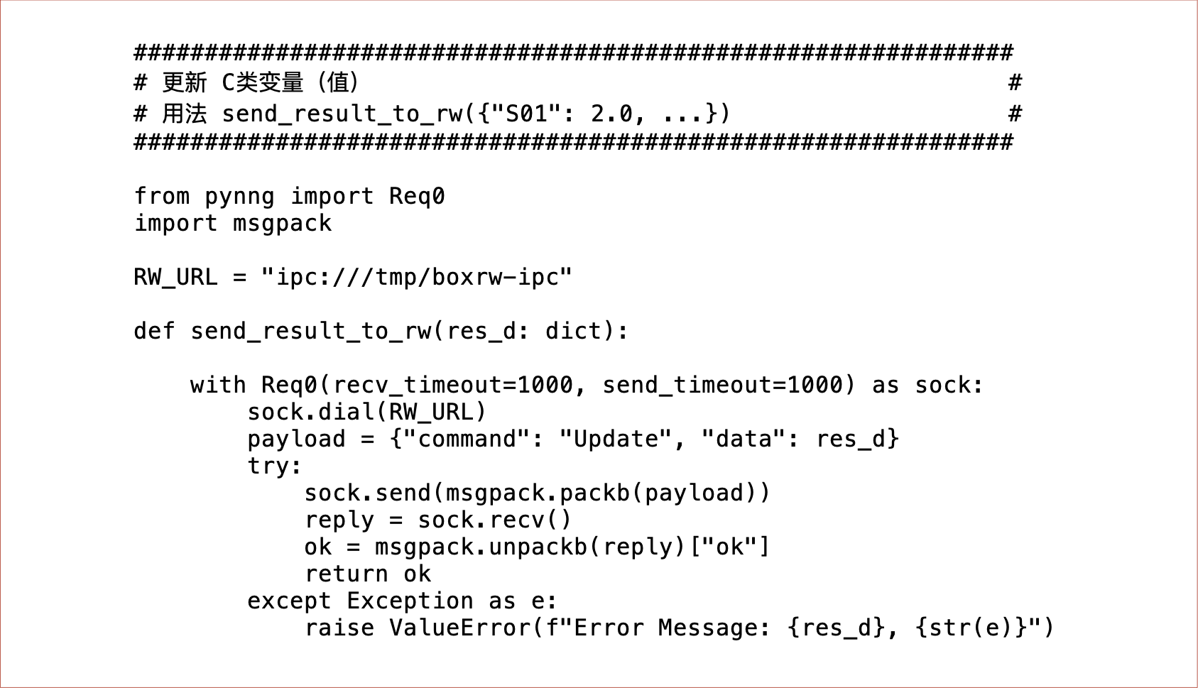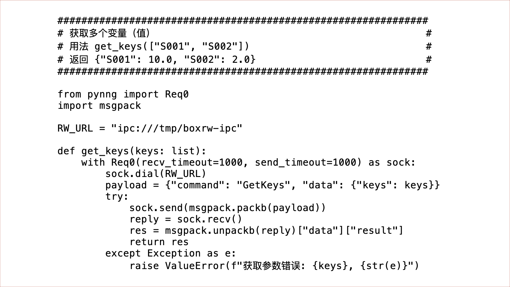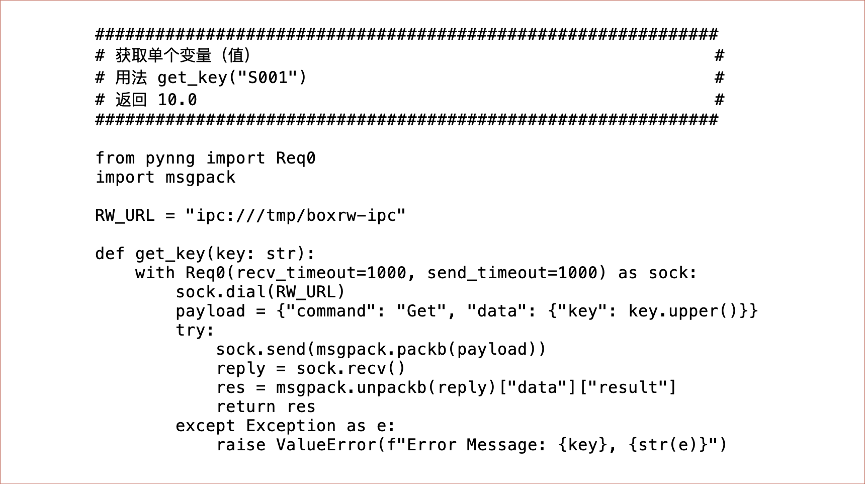 Complex 框架为算法程序提供了一个标准的 IPC 方法,可以对当前仿真模型变量(值)读写操作。下面以 Python 为例,我们逐个说明这些方法: