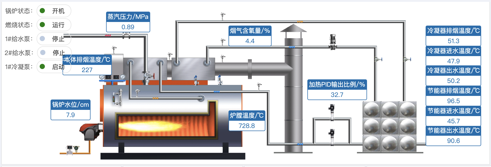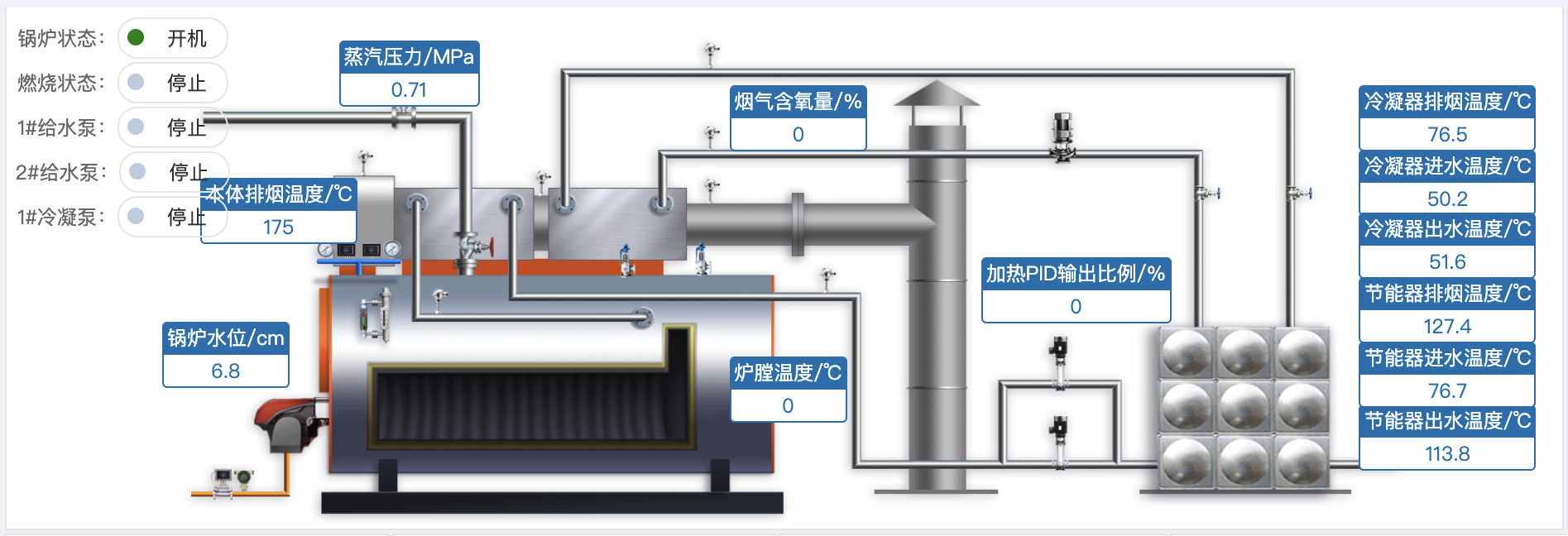 如果使用多组图片,可以在模拟过程中,根据不同条件进行图片替换。如,当我们模拟燃气锅炉的时候,锅炉燃烧状态为 “停止” 的时候,用这个图片: