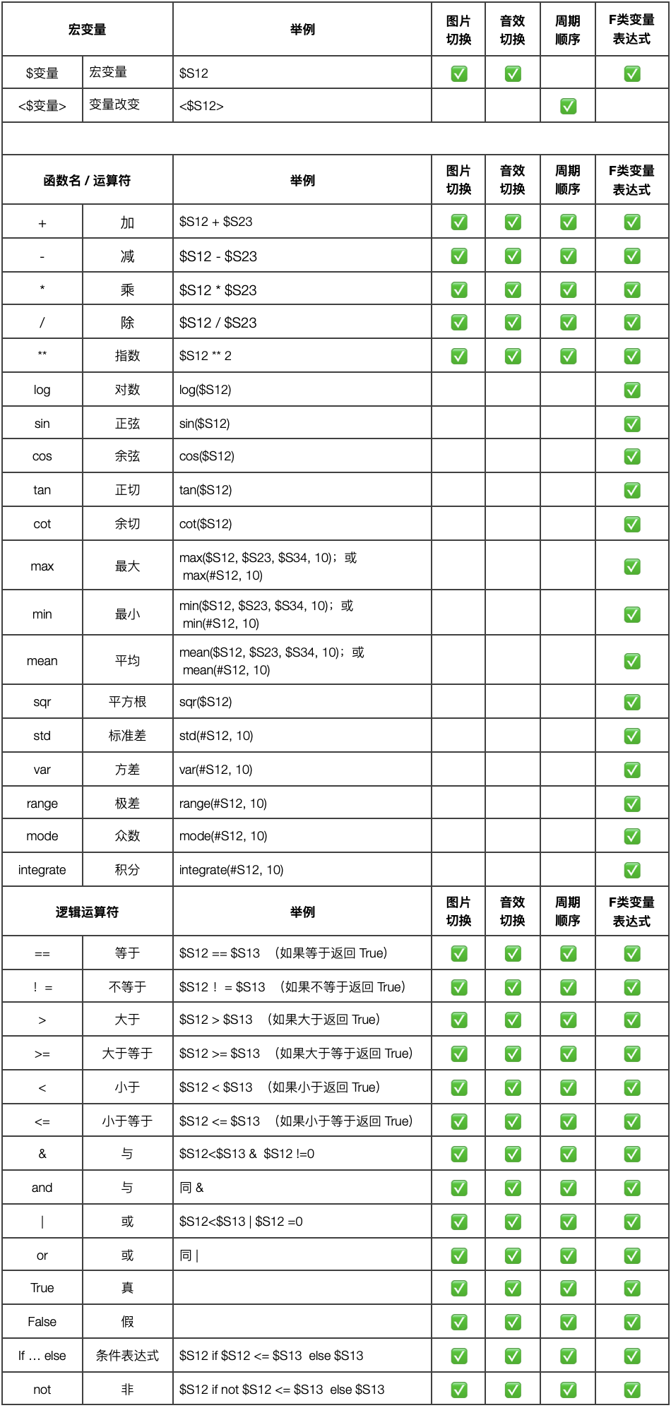 这类总结说一下有关 “逻辑条件表达式” 的问题。Simubox 涉及到 “逻辑条件表达式” 的地方有四处,分别是 “图片切换脚本”、“音效切换脚本”、以及 Simubox 仿真脚本中的 “模拟周期/顺序” 和 “F类模拟变量计算表达式”,但它们的逻辑条件表达式能支持的内容不尽相同。