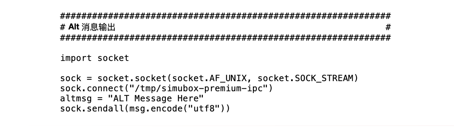 Simubox 提供的 ALT消息输出接口为 Socket,以 Python 程序为例,使用方法为: