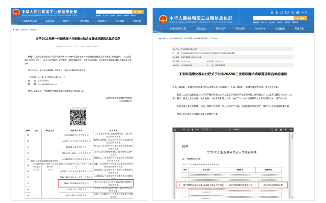 MixIOT是智物联完全自主知识产权的工业互联网核心引擎和体系,从 MixIOT V2 开始,就广泛应用于各种工业领域。基于MixIOT的解决方案产品与解决方案入选了工信部2021年新一代信息技术与制造业融合发展试点示范项目和2022年工业互联网试点示范项目,并且多次获得工信部、工业互联网产业联盟等单位颁发的工业互联网优秀解决方案和应用案例等荣誉,还助力各行业客户获得了国家及各地相关荣誉。