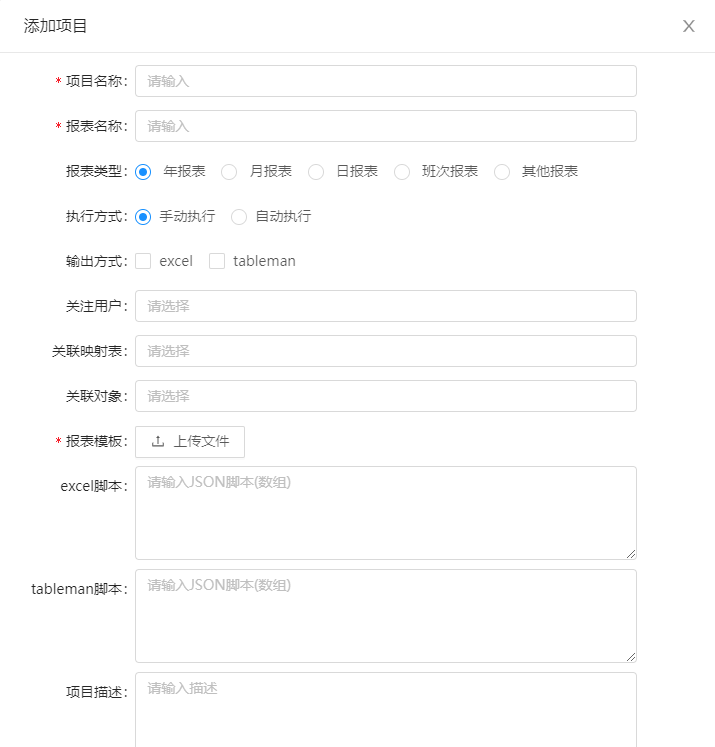 报表项目执行的实质是,根据配置的类型和脚本script,从对应接口获取数据,填充到excel或者录入到tableman系统中。
