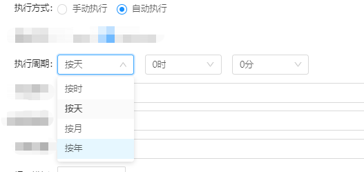 自动执行:选择自动执行会出现执行周期选项。
